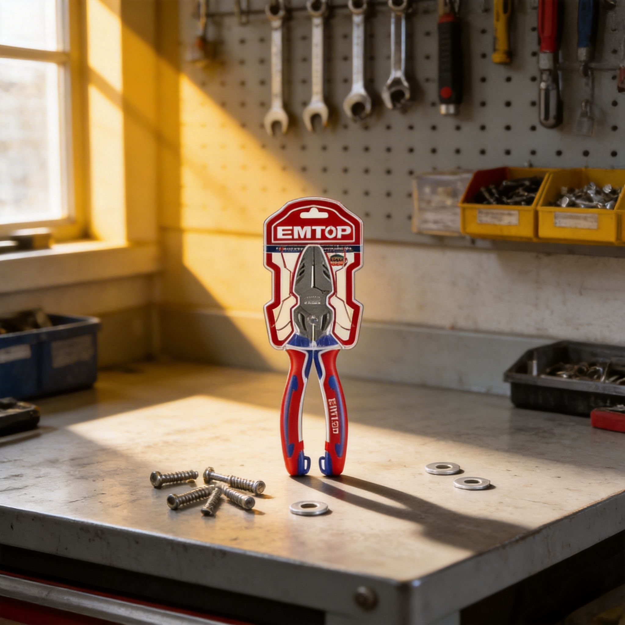 Línea de alicates EMTOP diseñada para trabajos de sujeción, corte, ajuste y manipulación en tareas eléctricas, mecánicas, de instalación y mantenimiento general. Este grupo incluye modelos de corte de extremo, corte diagonal, alicates combinados, alicates universales de alta palanca, alicates universales estándar y alicates para electricista, ofreciendo una gama amplia de opciones para distintos niveles de fuerza, precisión y tipo de trabajo.