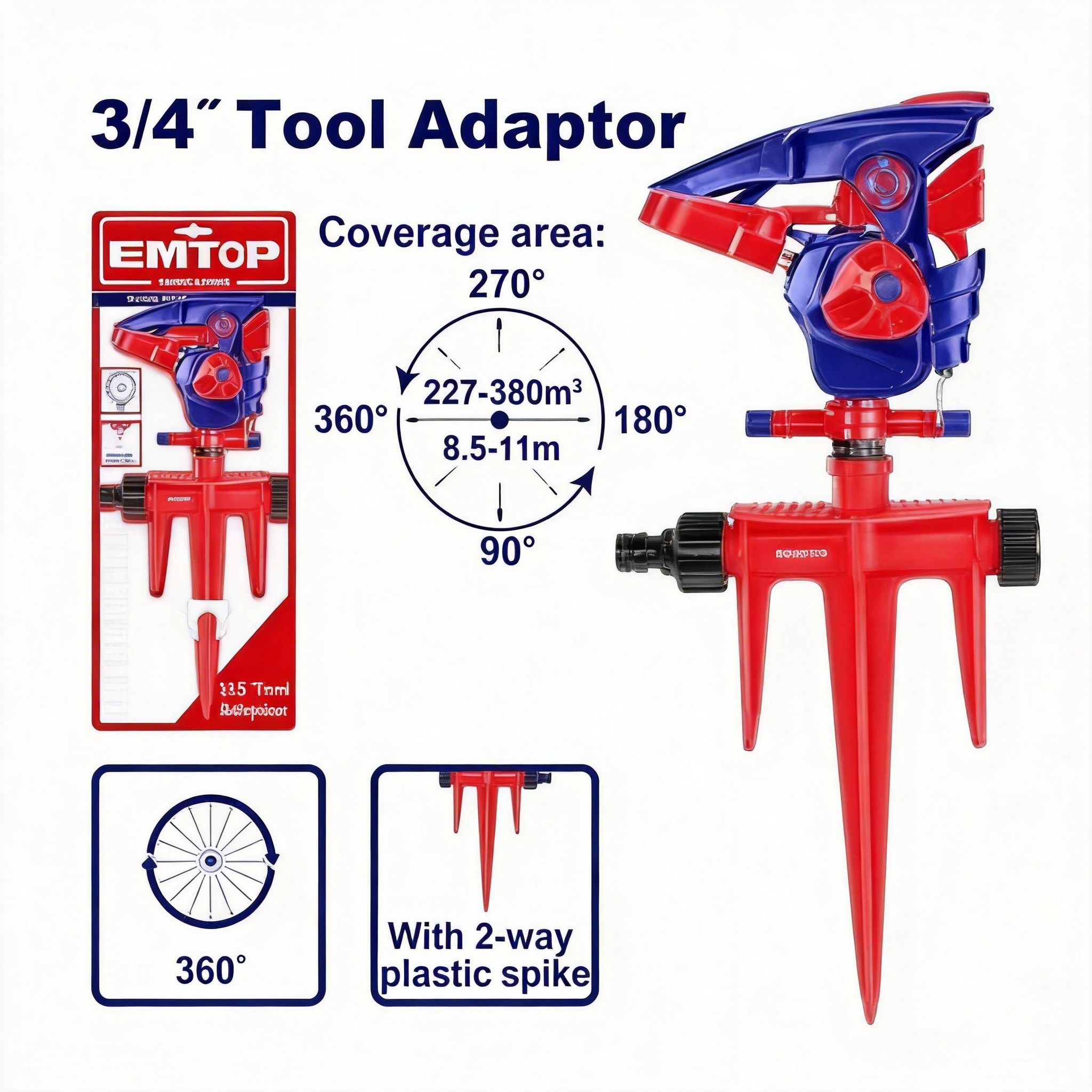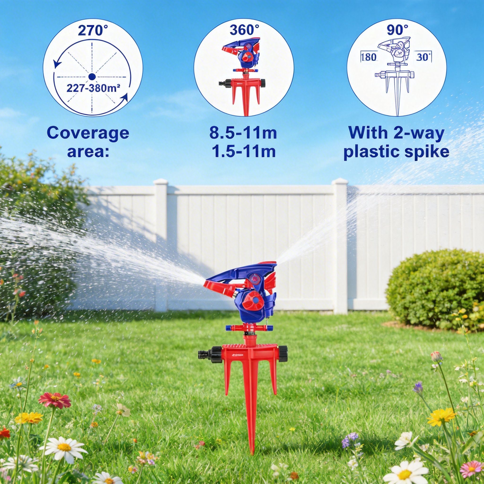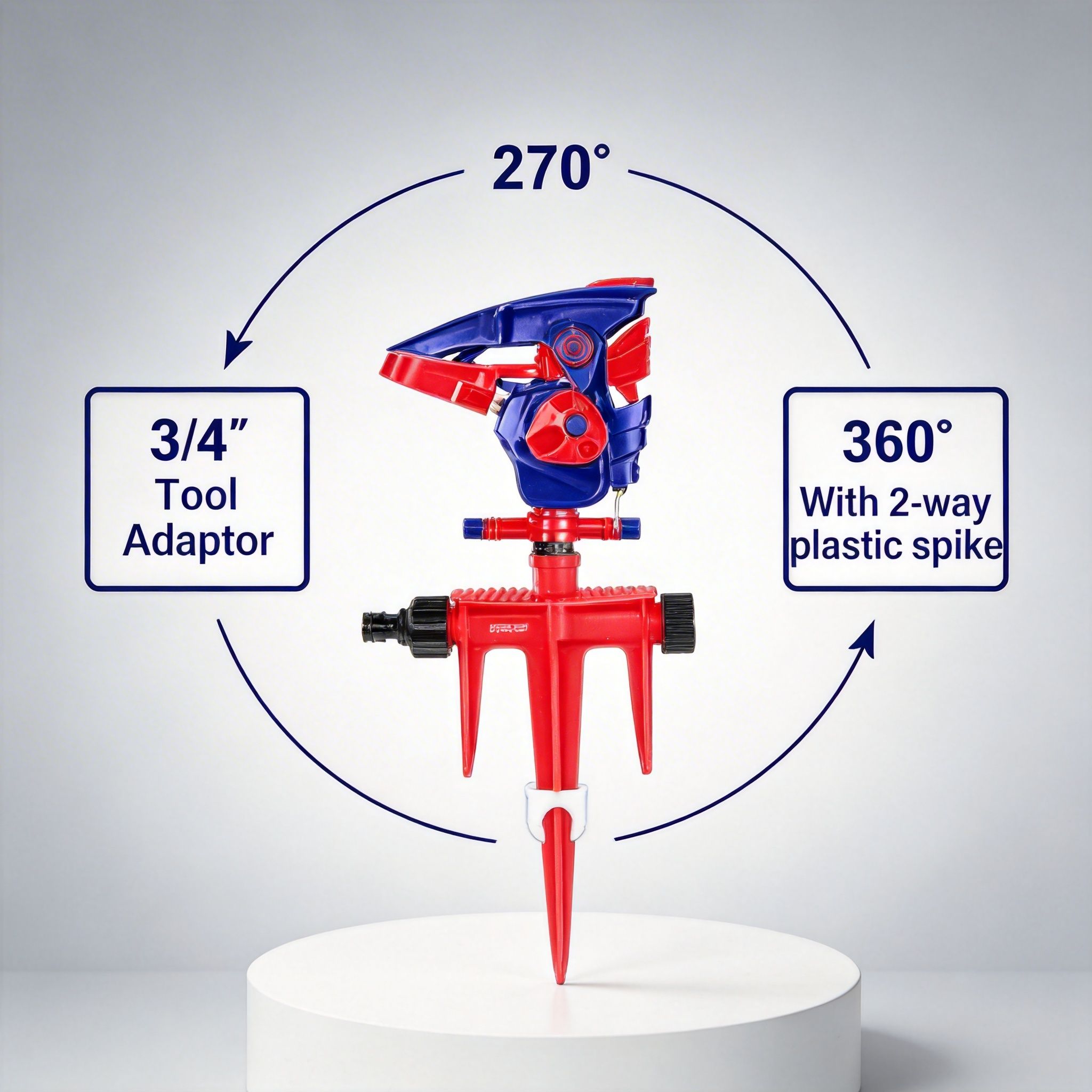 Su fabricación en plástico lo convierte en una alternativa ligera y práctica para instalaciones de riego, mientras que su diseño con engranajes automáticos permite un funcionamiento orientado a una mejor distribución del agua durante el uso. Es ideal para proyectos residenciales, agrícolas o de jardinería donde se busca un sistema de riego más cómodo y funcional.