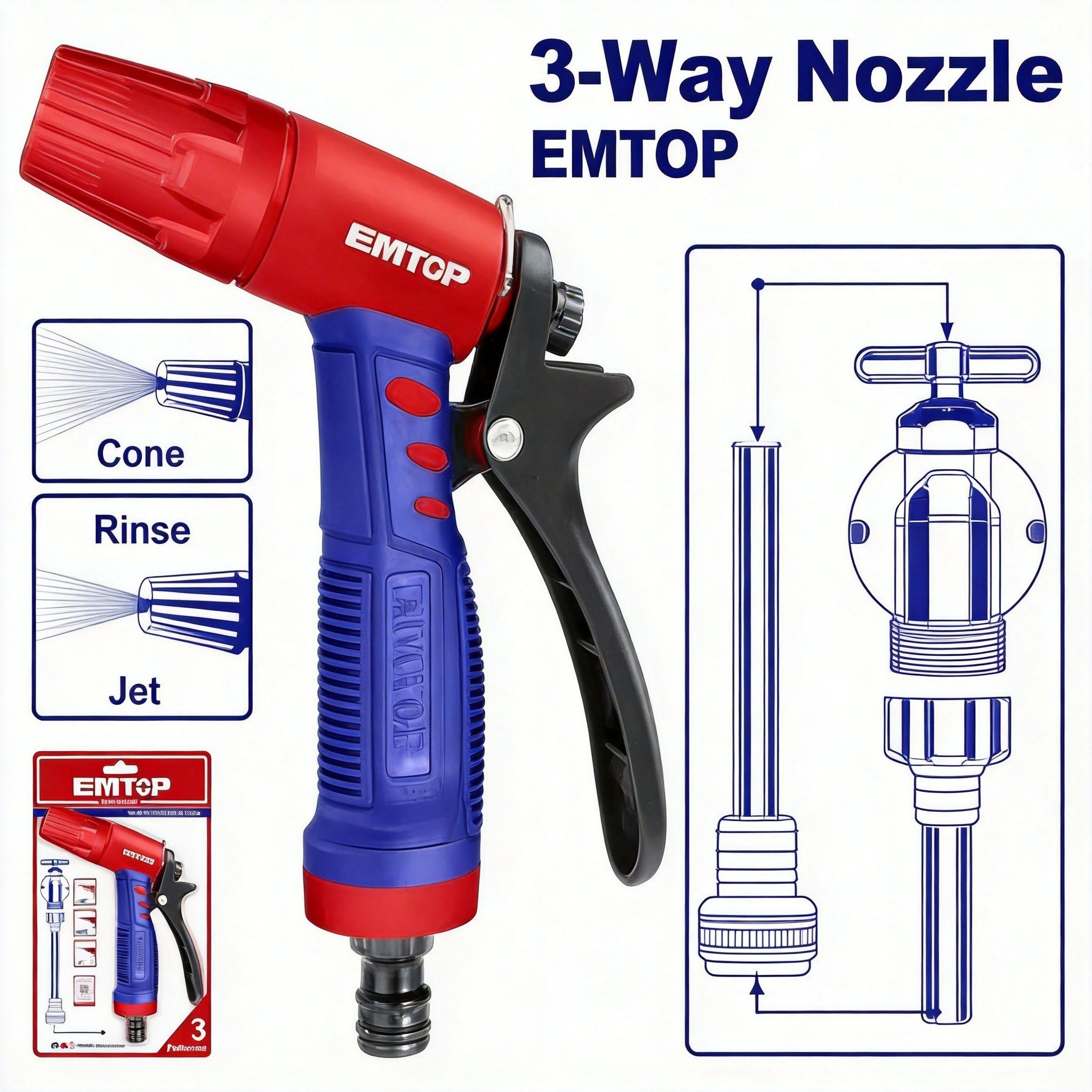 La boquilla de gatillo de plástico con 3 funciones es un accesorio práctico y funcional para tareas de riego, limpieza y mantenimiento en el hogar, jardín o áreas de trabajo. Está diseñada para ofrecer diferentes tipos de salida de agua, permitiendo adaptar el flujo según la necesidad de cada tarea, ya sea para regar plantas, lavar superficies, limpiar patios, enjuagar herramientas o realizar trabajos de uso general.