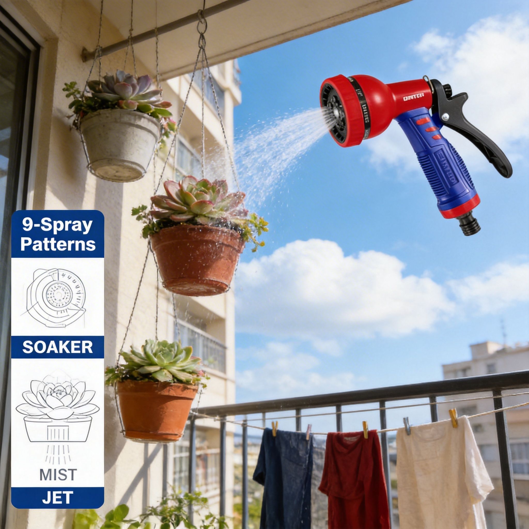 Sus 9 funciones brindan mayor versatilidad y comodidad, ya que permiten seleccionar distintos patrones de rociado para una aplicación más adecuada en cada situación. Su diseño con gatillo facilita el control del agua durante el uso, ayudando a trabajar con mayor practicidad y mejor manejo en tareas cotidianas de jardinería o limpieza.