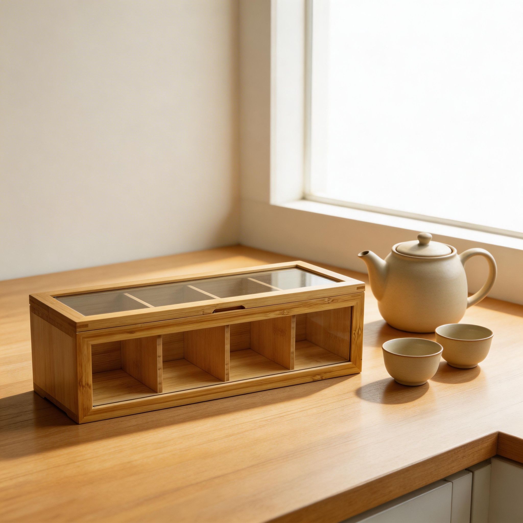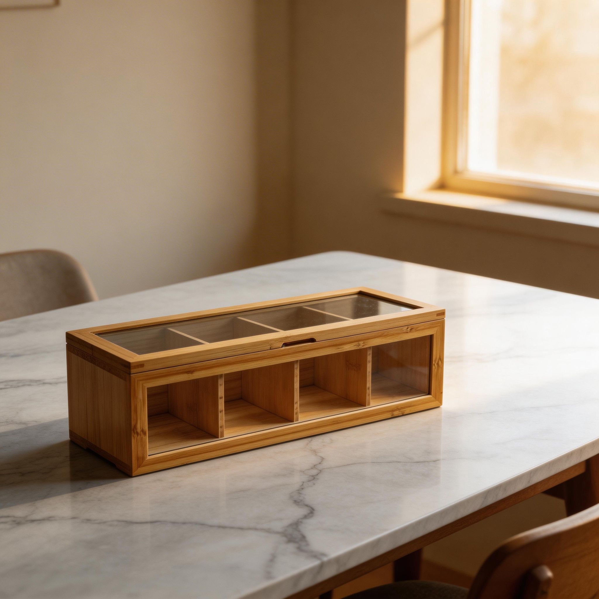 Mantén tus sobres de té organizados y al alcance con esta práctica caja organizadora, ideal para cocina, oficina o espacios de café. Su diseño permite almacenar diferentes tipos de té de forma ordenada y accesible.