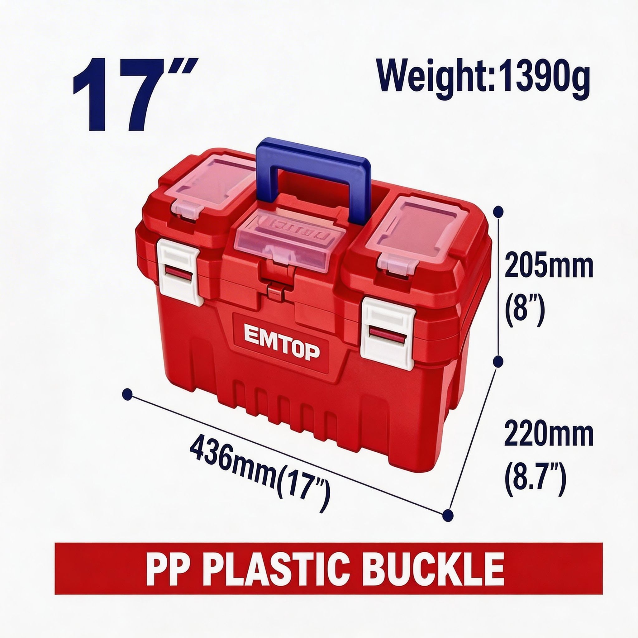 La caja plástica para herramientas EMTOP de 17″ con cierre plástico es una opción práctica para guardar, organizar y transportar herramientas de uso diario de forma más cómoda y segura. Su diseño compacto permite mantener en un solo lugar piezas esenciales como destornilladores, llaves, cintas de medir, accesorios y otros implementos de trabajo, ayudando a tener todo mejor ordenado y siempre al alcance.
