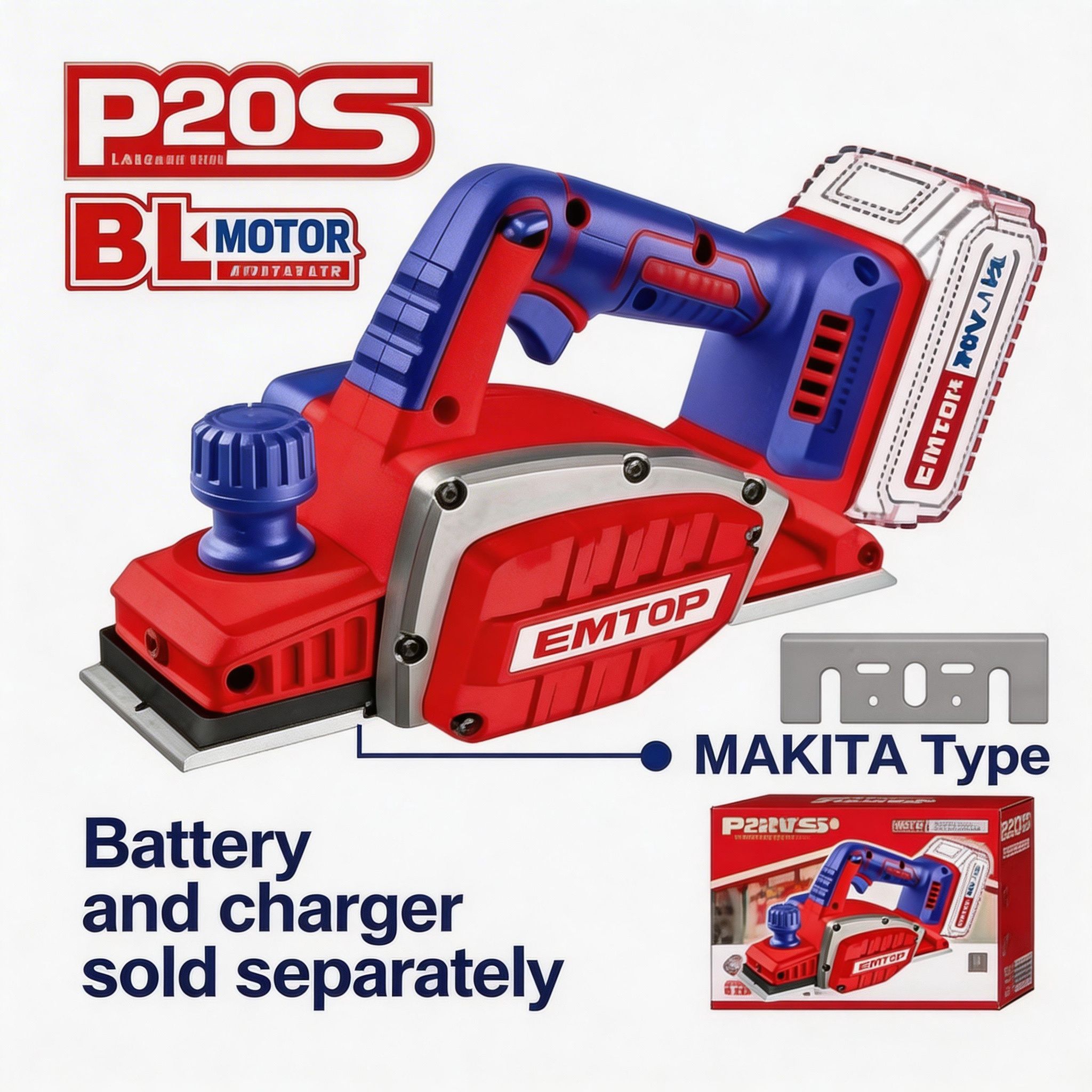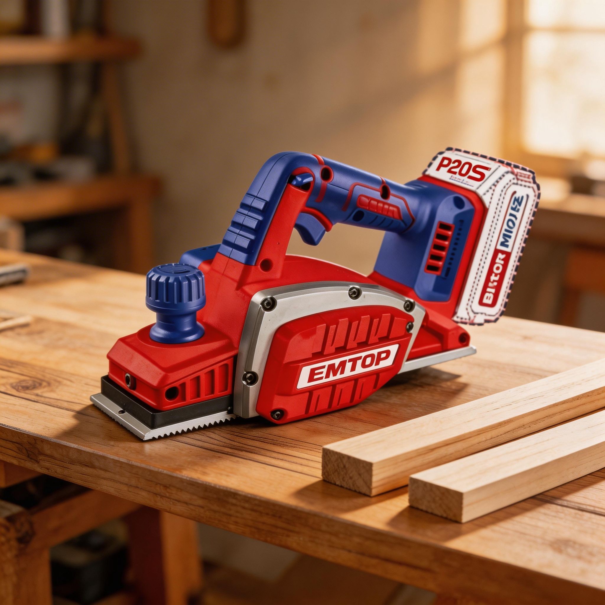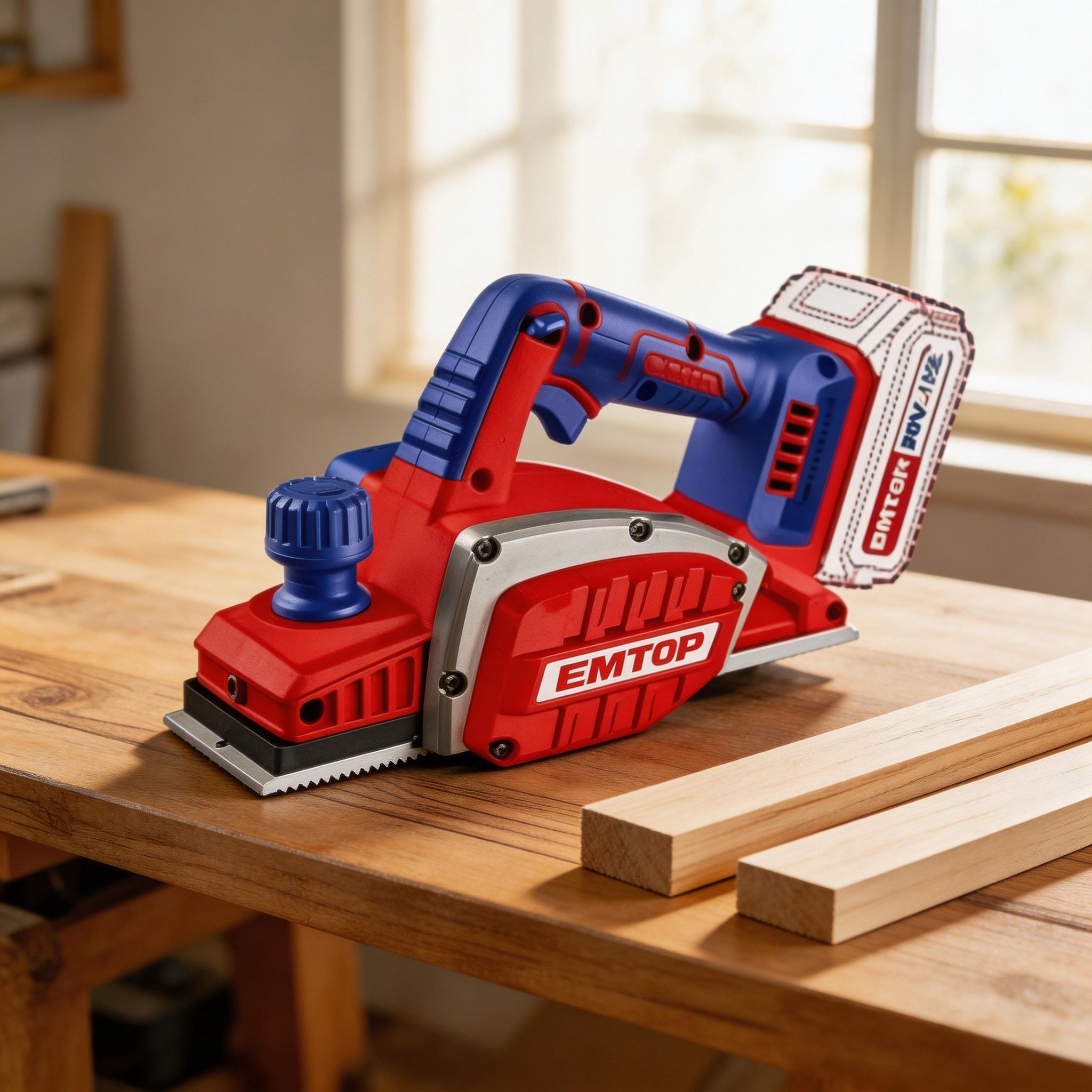 Este cepillo eléctrico inalámbrico EMTOP está diseñado para trabajos de nivelado, desbaste y acabado en madera, siendo ideal para carpintería, construcción y proyectos de bricolaje. Permite alisar superficies, ajustar piezas y mejorar el acabado de materiales de forma rápida y uniforme.