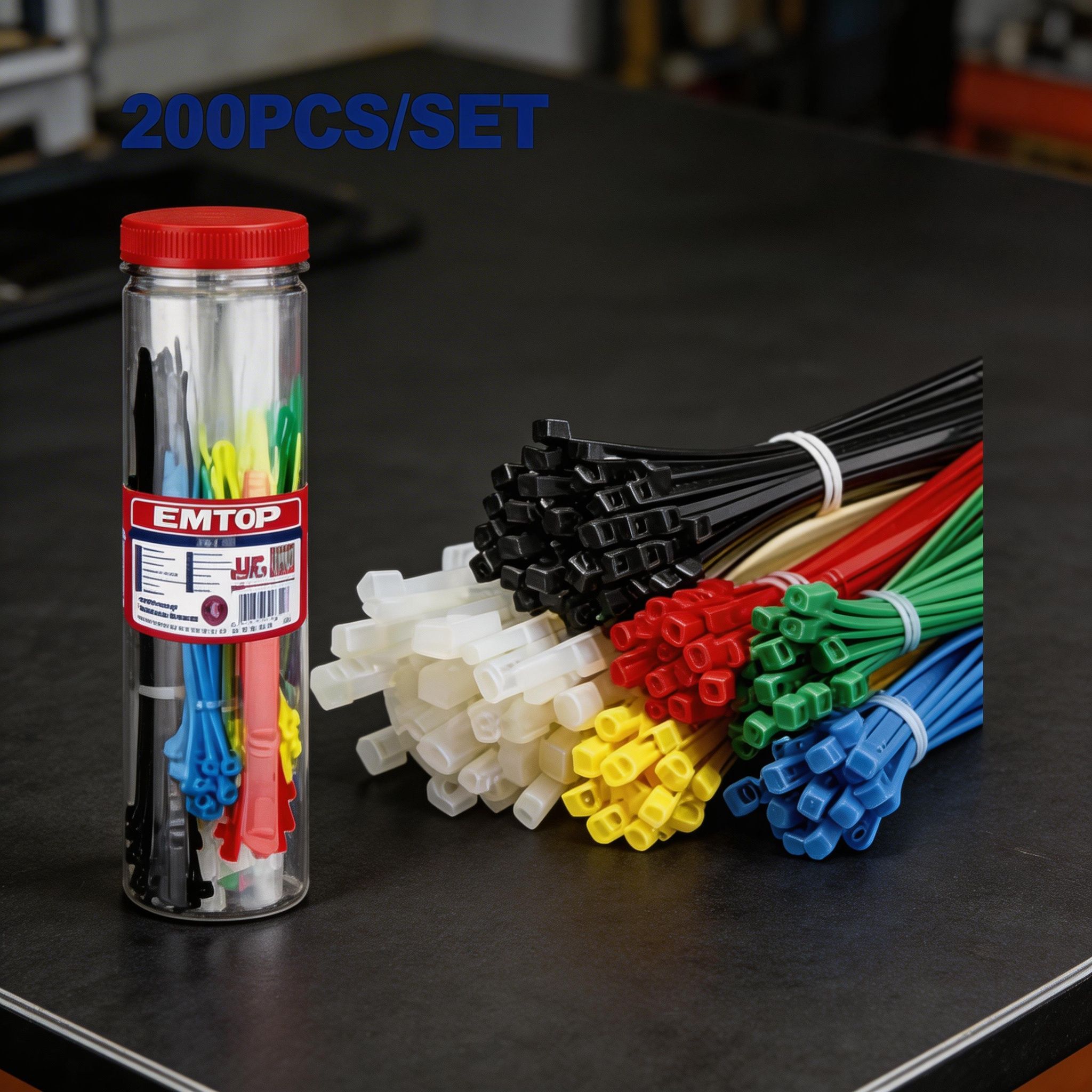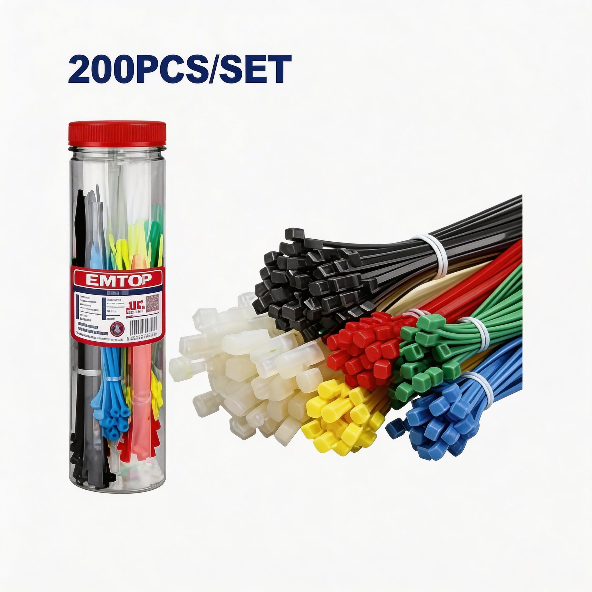 Los cinchos plásticos surtidos para amarre EMTOP de 200 piezas son una solución práctica para organizar, sujetar y asegurar cables, accesorios, mangueras y distintos objetos de forma rápida y ordenada. Su presentación surtida los hace muy útiles para tener varias opciones disponibles al momento de trabajar, facilitando tareas de instalación, acomodo y fijación en diferentes espacios.