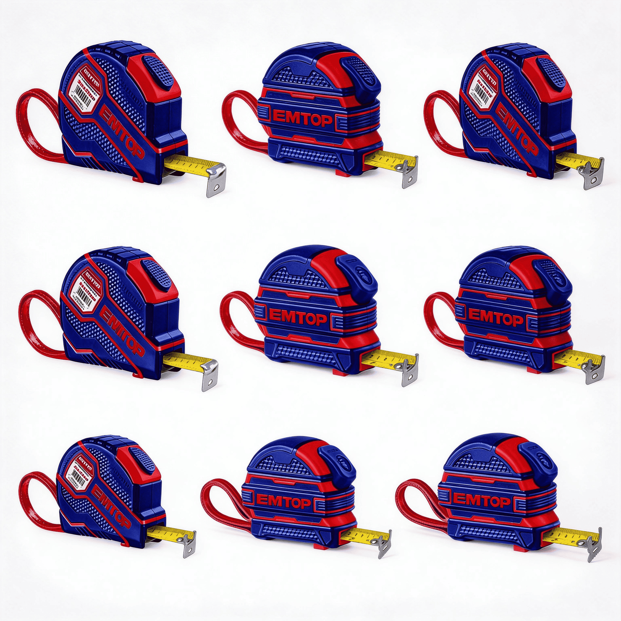 Línea de cintas métricas EMTOP compactas ideal para trabajos de medición en construcción, instalación, carpintería, mantenimiento, remodelación y uso general. Este grupo incluye distintas presentaciones en medidas de 3 m, 5 m, 8 m y 10 m, con diferentes anchos de cinta, ofreciendo opciones prácticas para tareas cotidianas y trabajos más exigentes. Su diseño compacto facilita llevarlas en caja de herramientas, cinturón o bolso de trabajo, convirtiéndolas en una herramienta básica y muy útil para profesionales y usuarios domésticos.