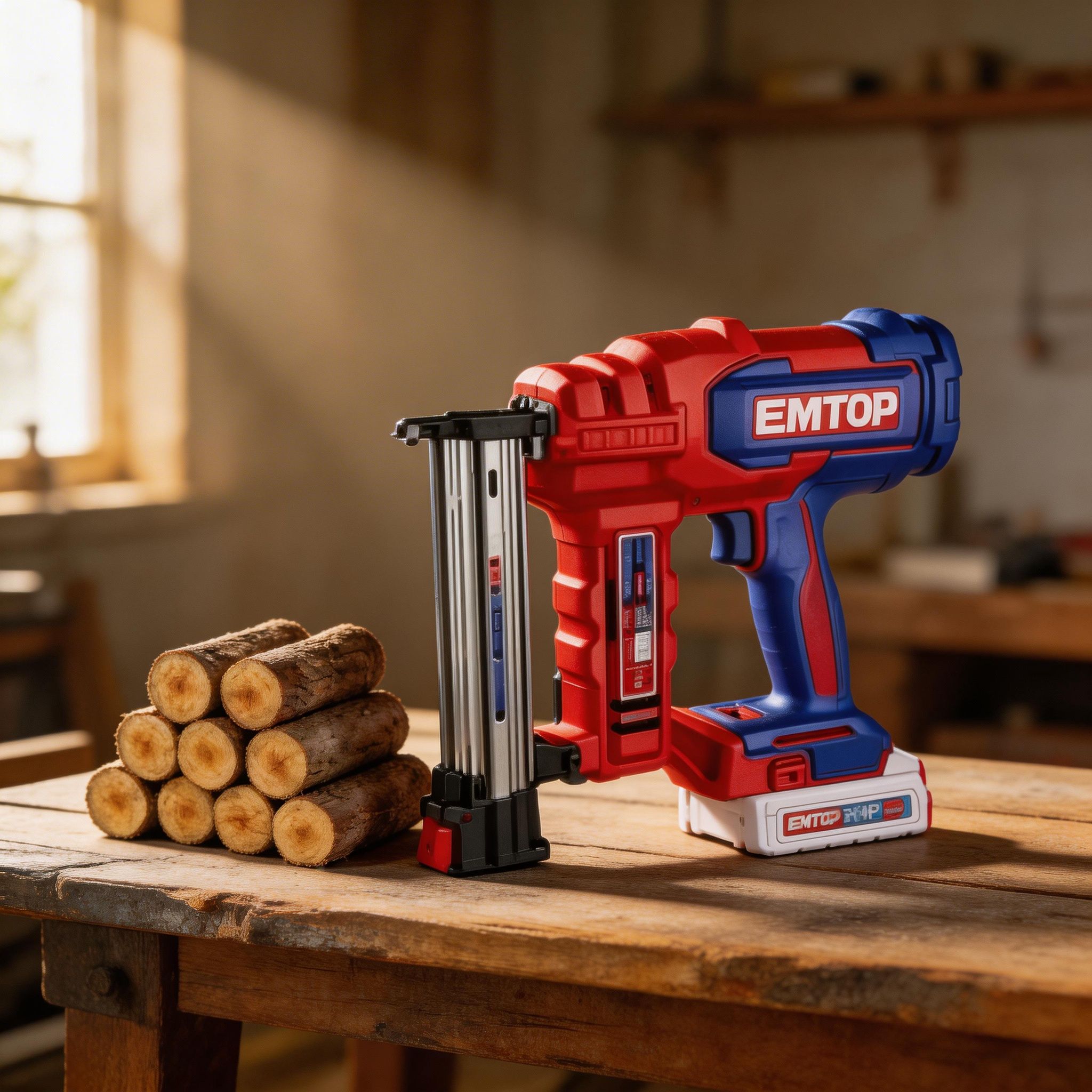 Esta clavadora inalámbrica EMTOP está diseñada para trabajos de fijación en madera, siendo ideal para carpintería, instalación de muebles, molduras y acabados. Su funcionamiento sin cables permite mayor libertad de movimiento, facilitando el trabajo en distintos espacios sin necesidad de compresores o conexiones eléctricas.