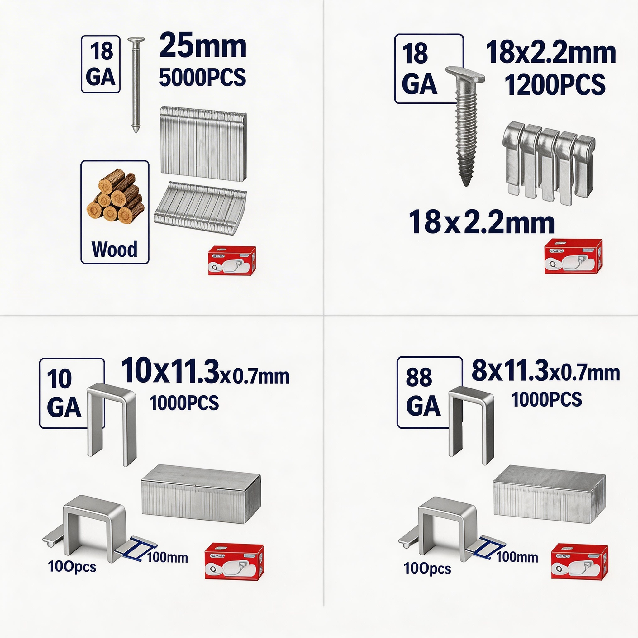 Son ideales para talleres, carpinteros, instaladores, personal de mantenimiento y usuarios que trabajan con clavadoras o grapadoras compatibles en tareas frecuentes. Al incluir diferentes medidas y formatos, este grupo de productos permite resolver trabajos más finos, fijaciones de uso general o aplicaciones más específicas según el tipo de material, mejorando la versatilidad del equipo y facilitando la continuidad del trabajo.