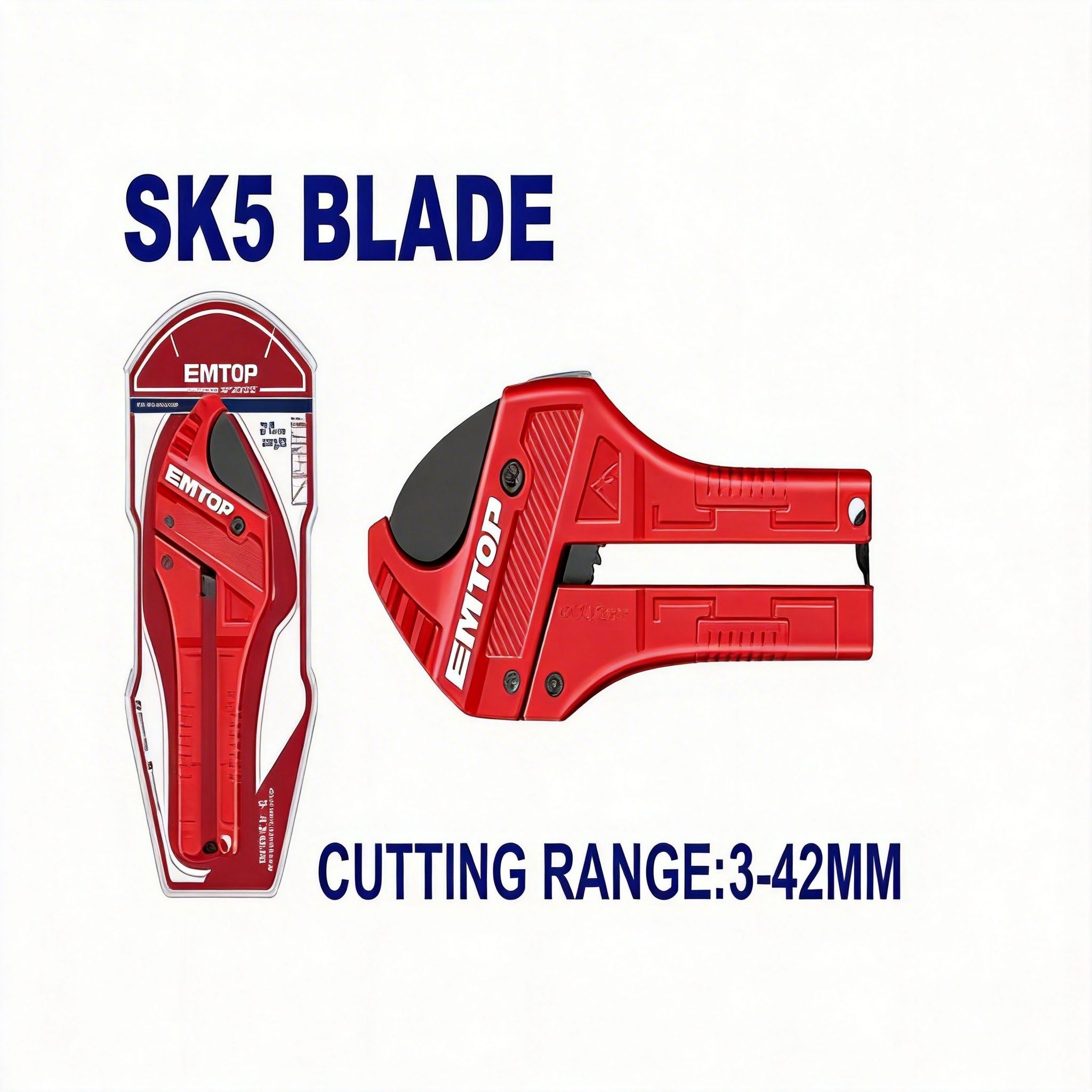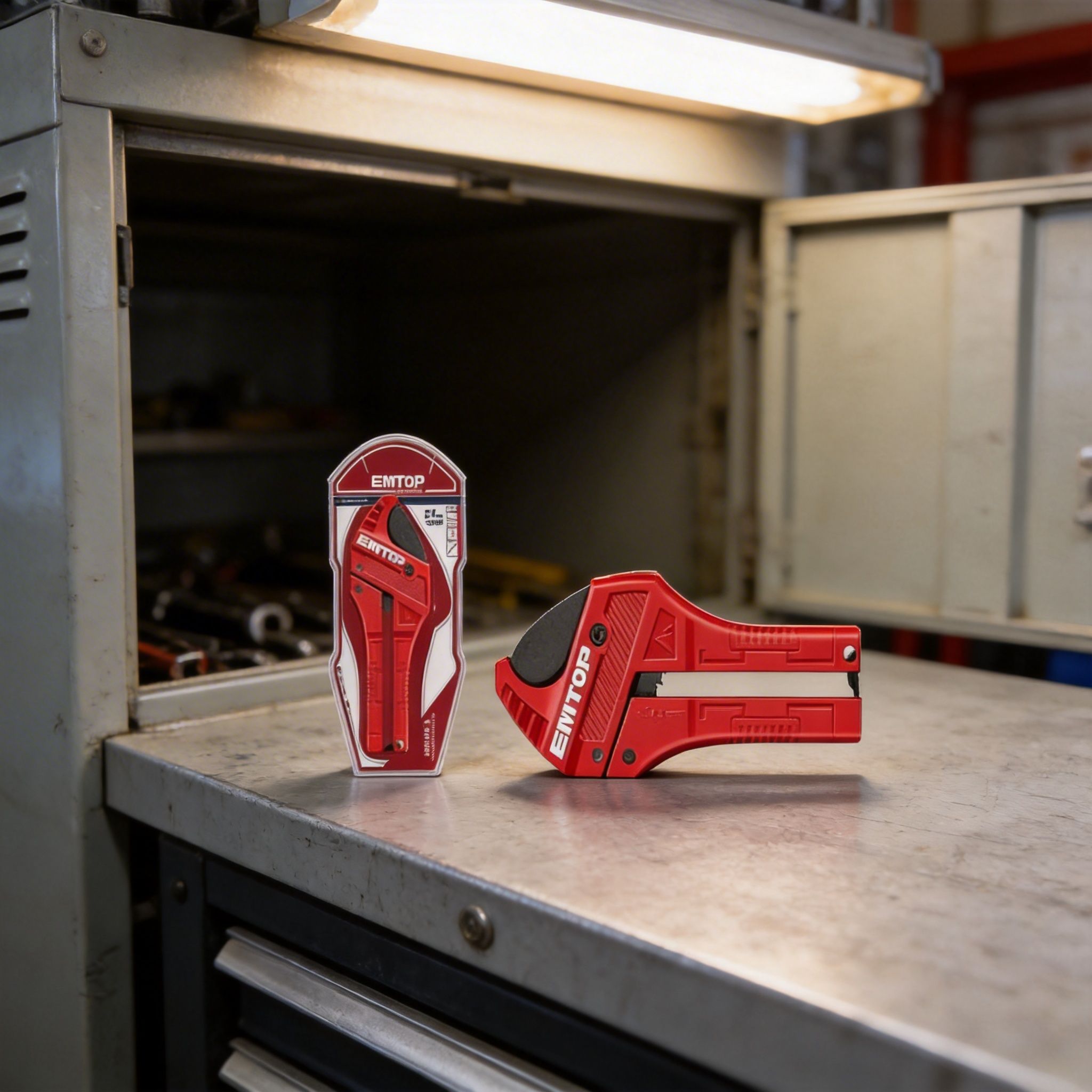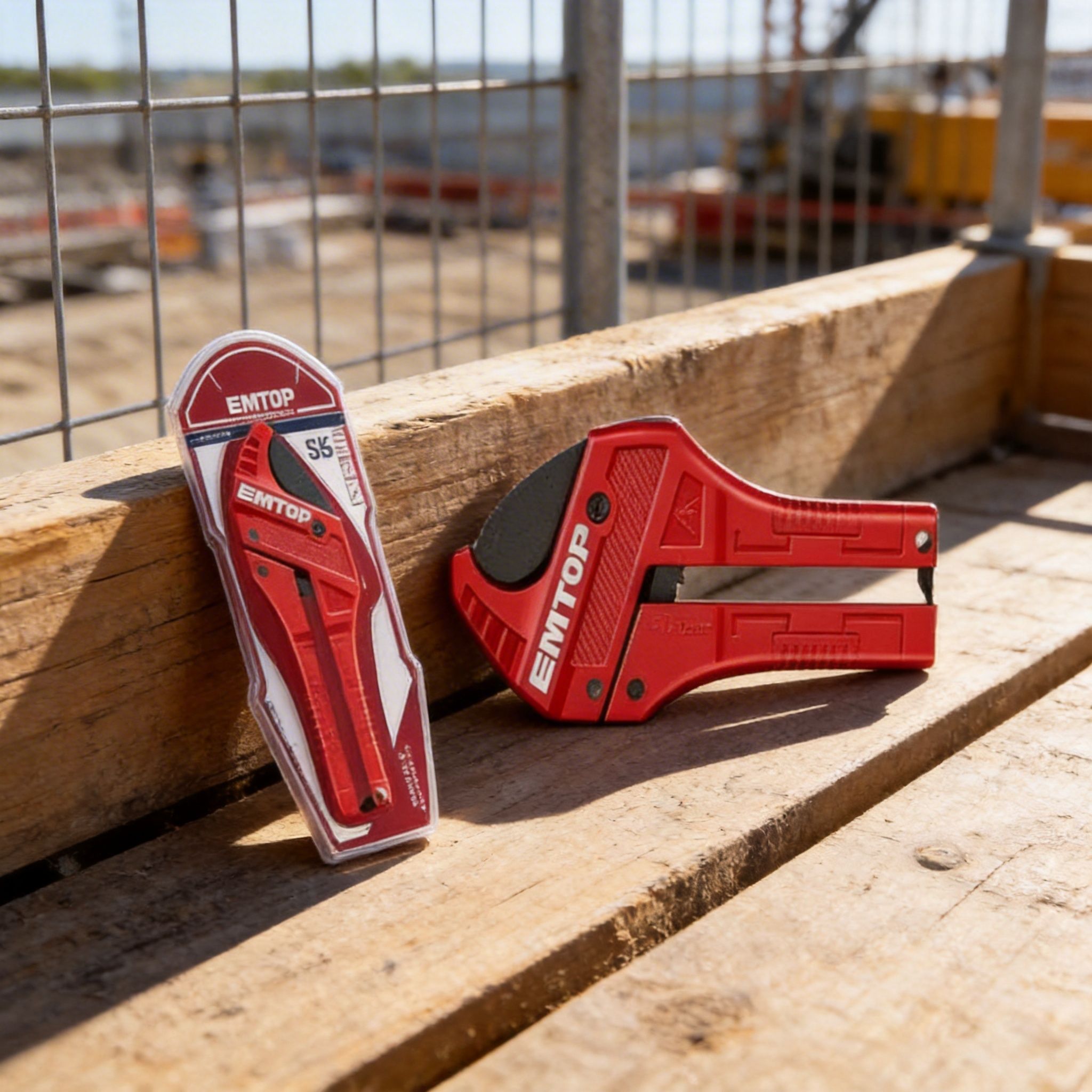 Cortador de tubos de PVC EMTOP de 42 mm, ideal para realizar cortes limpios y prácticos en tuberías plásticas utilizadas en trabajos de instalación, plomería, mantenimiento y remodelación. Es una herramienta muy útil para cortar tubos de PVC de forma más rápida, cómoda y controlada, ayudando a mejorar la precisión del trabajo y facilitando el ajuste correcto de las piezas durante la instalación.