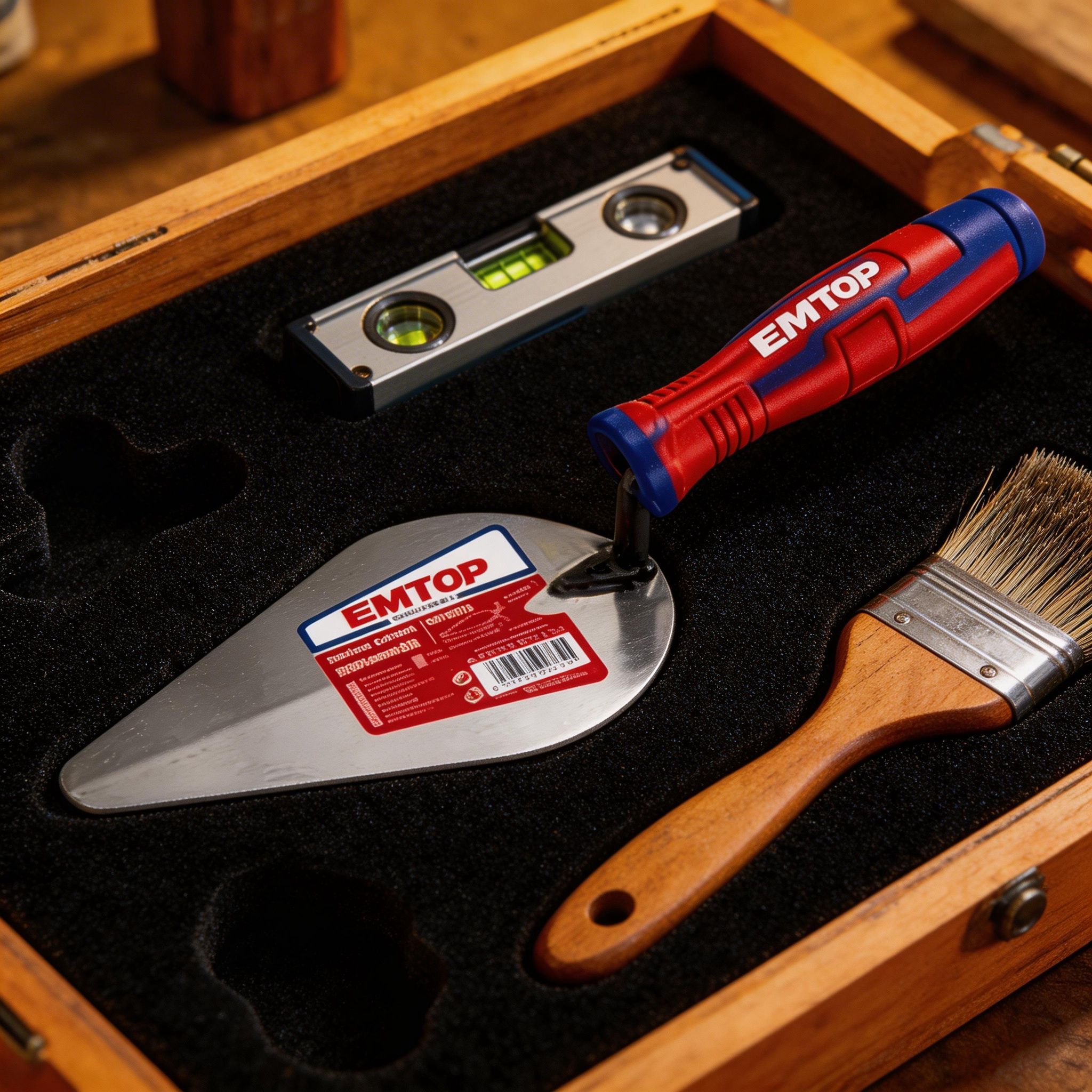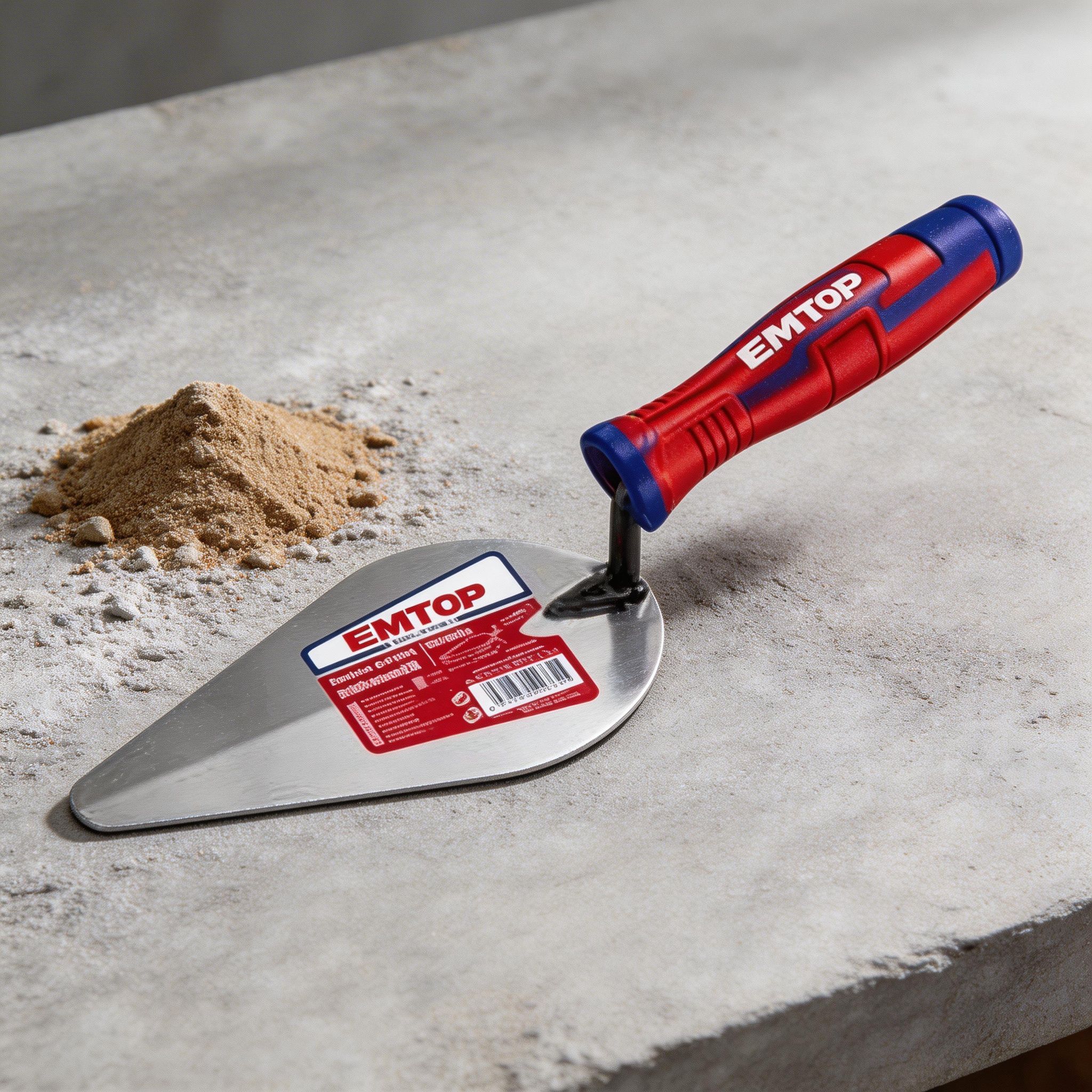 La cuchara para albañilería EMTOP es una herramienta práctica y funcional para trabajos de construcción, repello, mezcla y aplicación de mortero o cemento. Su diseño permite manipular el material con mayor control, facilitando tareas comunes en obra como extender, cargar y distribuir mezcla de manera más cómoda y eficiente.
