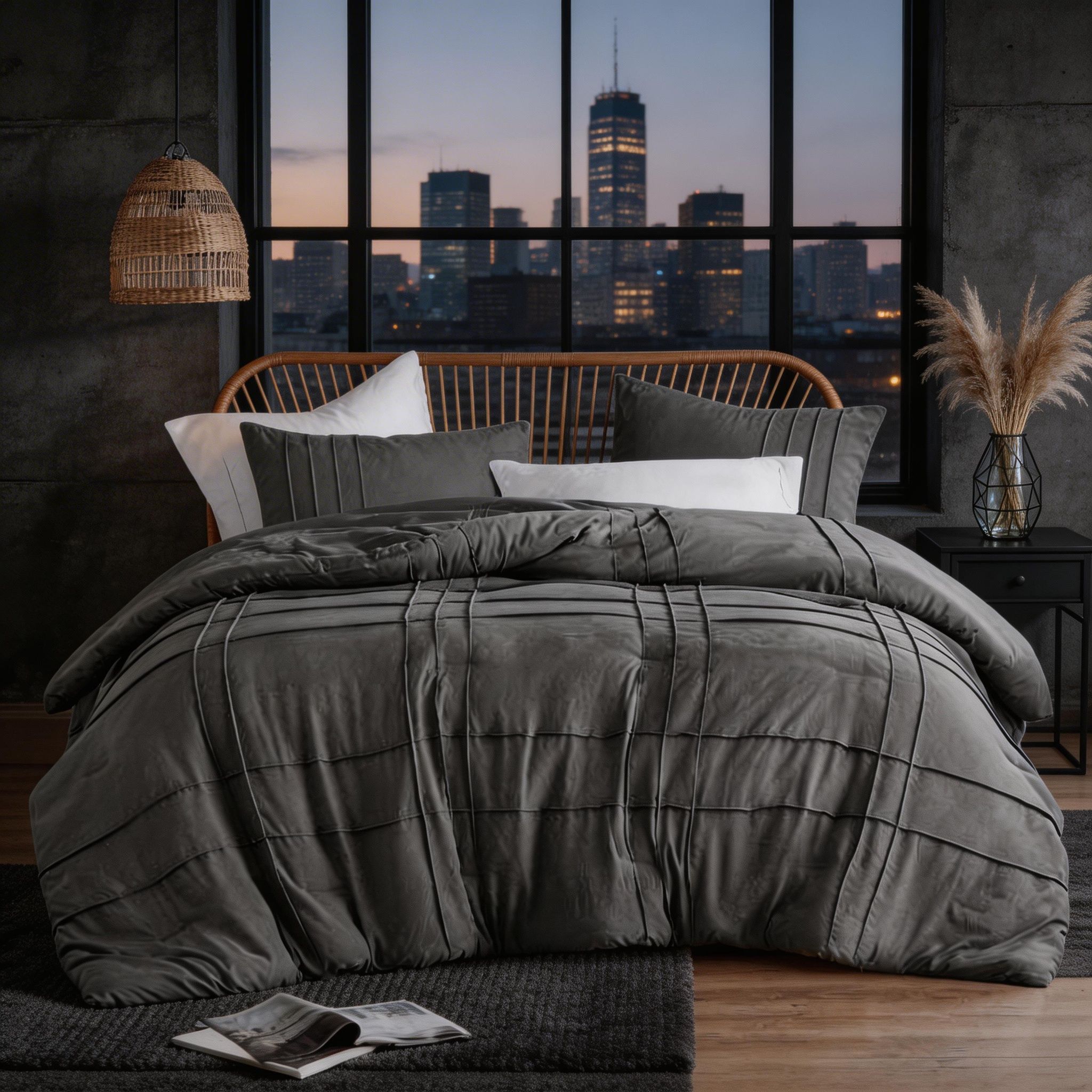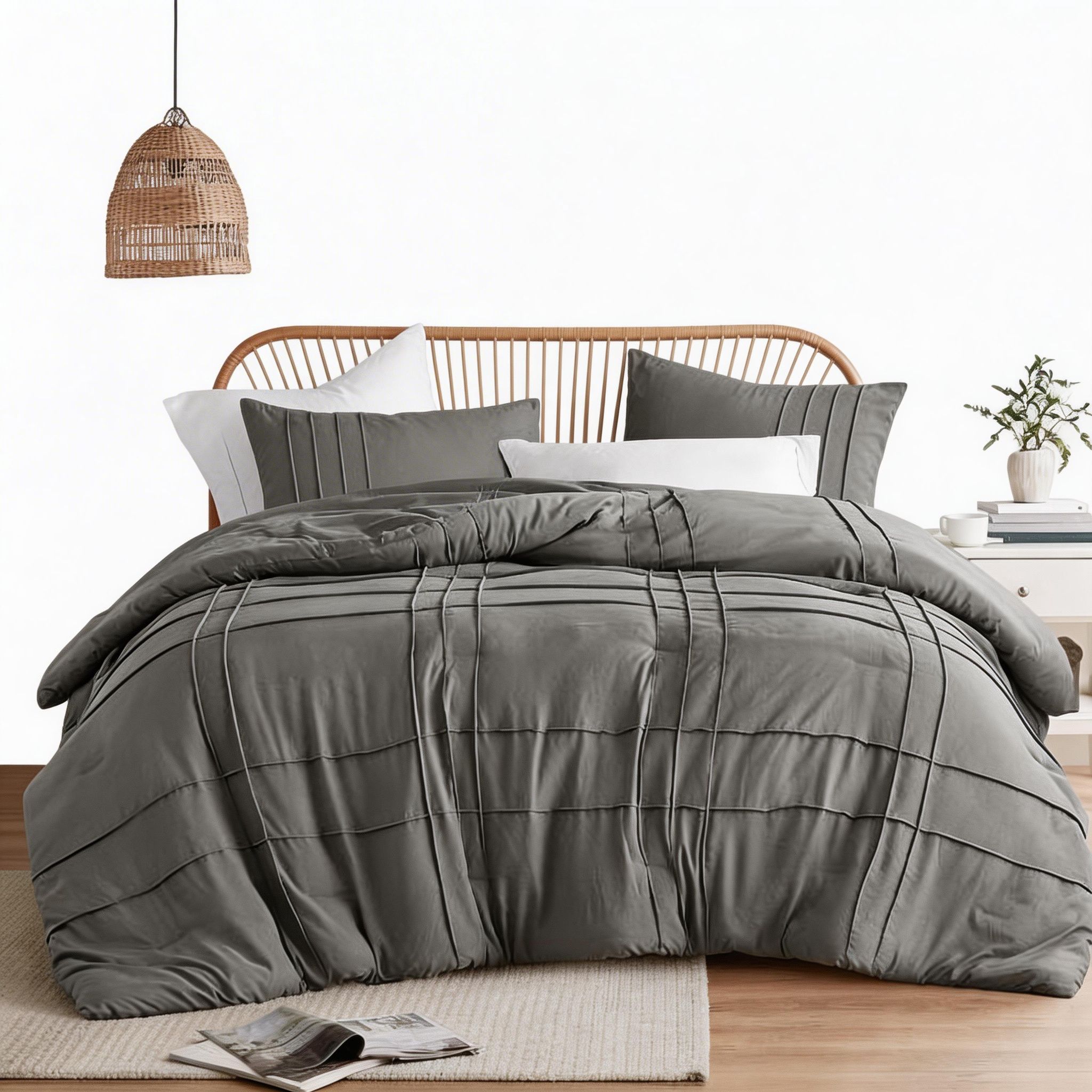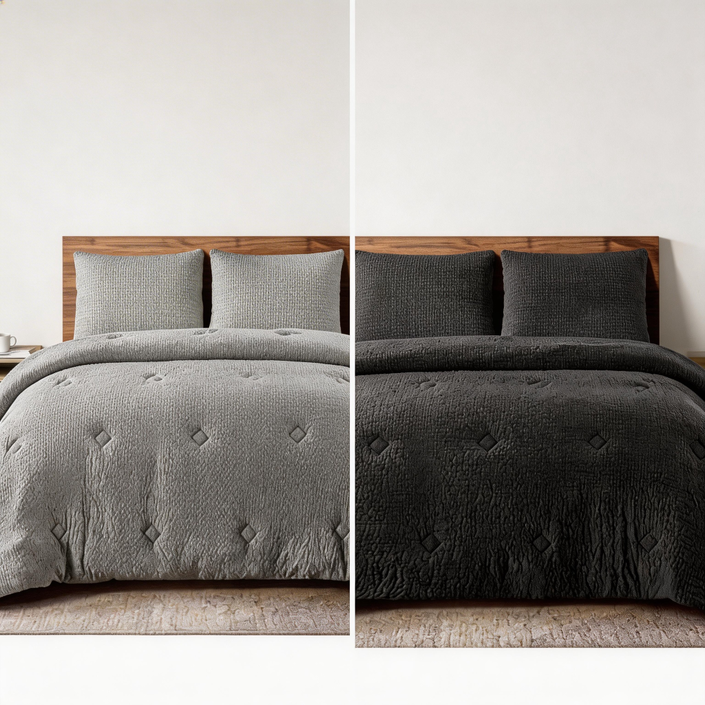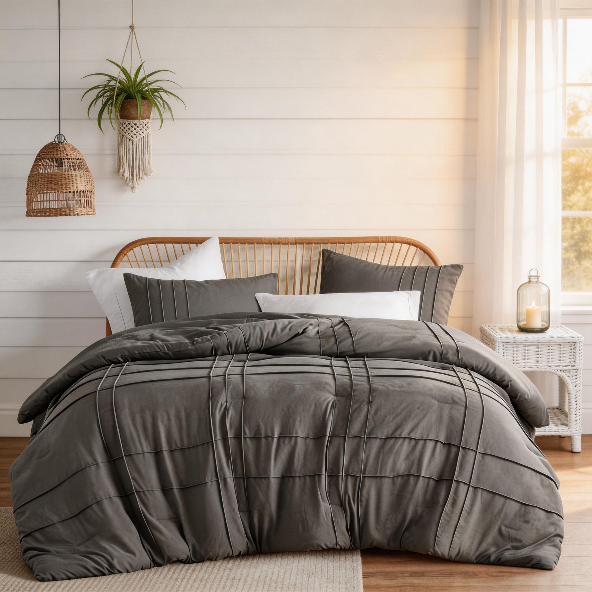 Dale un toque de elegancia y confort a tu dormitorio con estos edredones de 2 y 3 piezas en colores neutros, diseñados para adaptarse a distintos tamaños de cama, desde individuales hasta King o Queen. Su estilo sobrio y moderno se integra fácilmente a cualquier decoración.