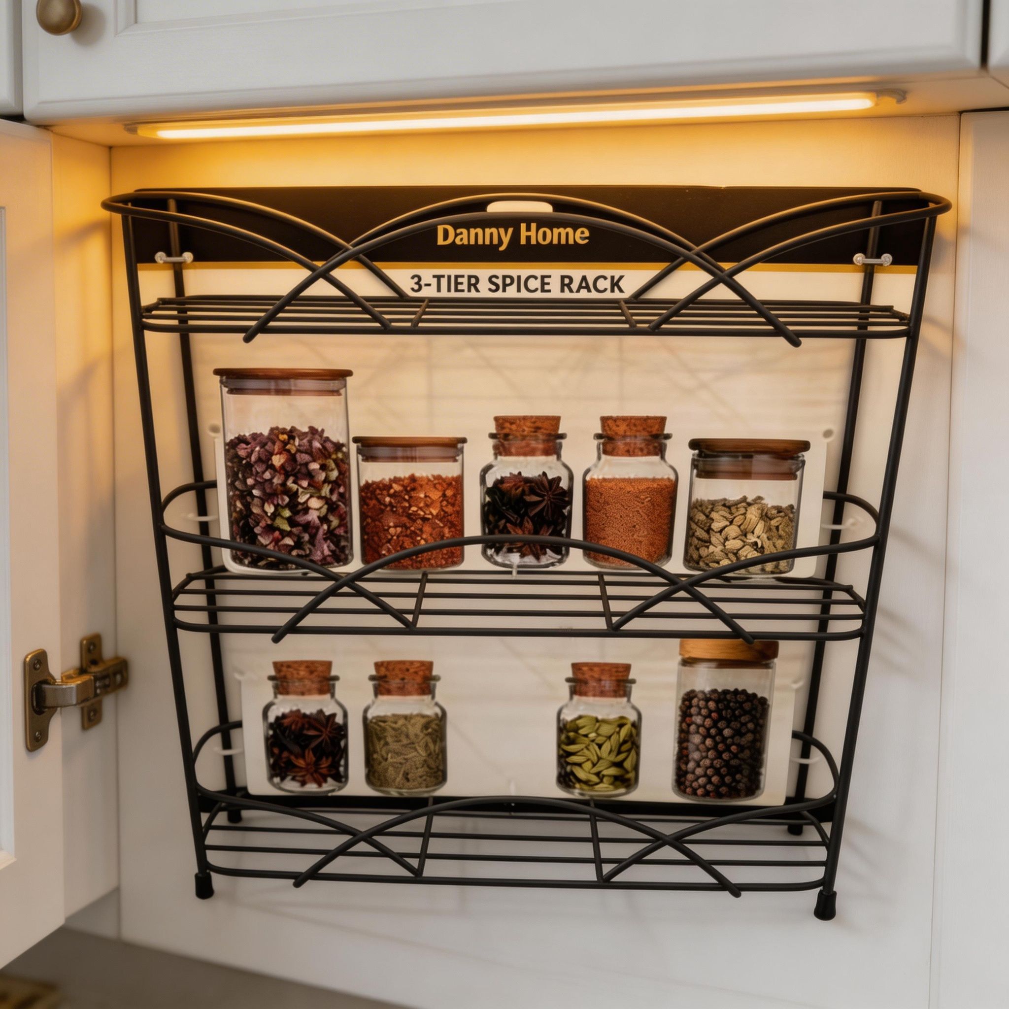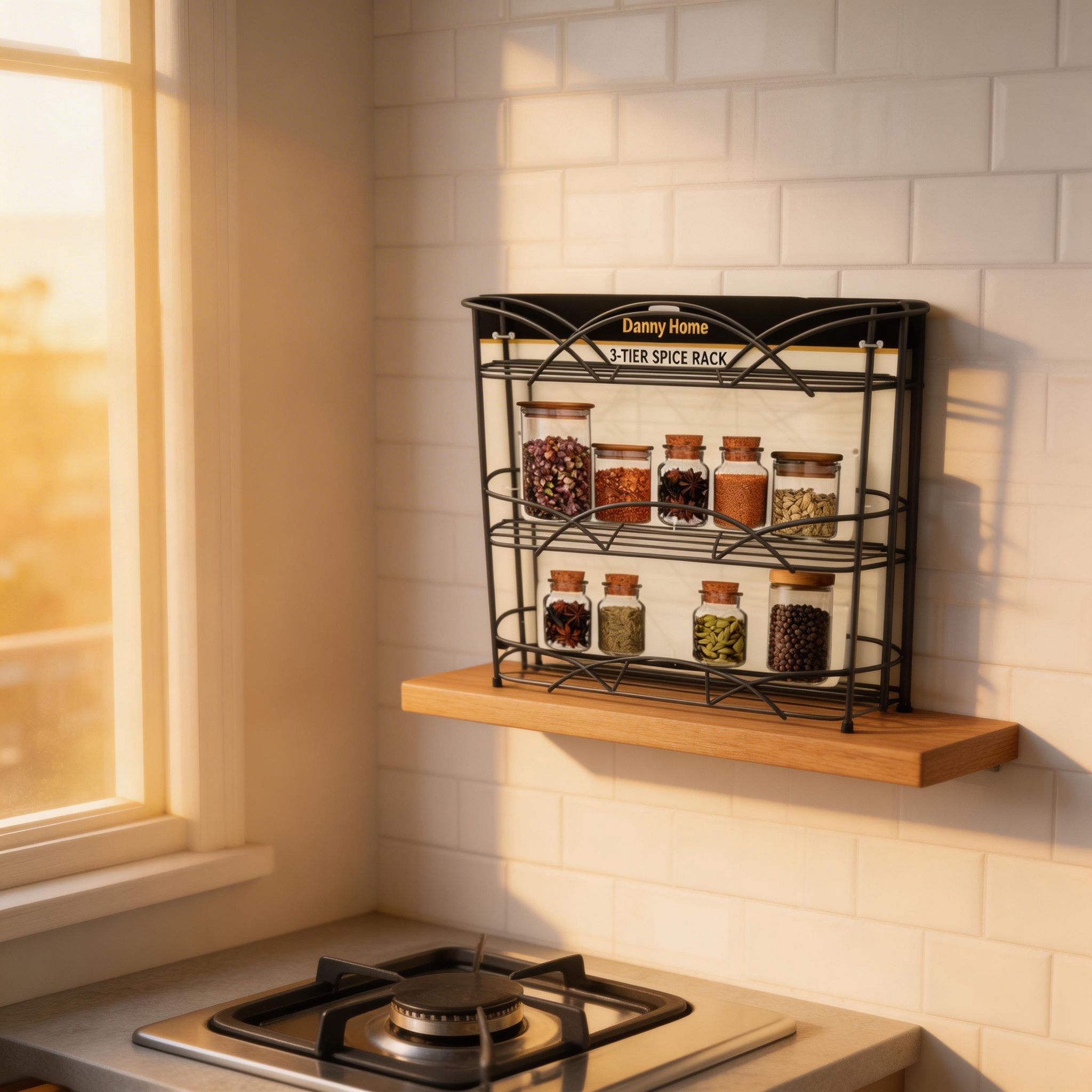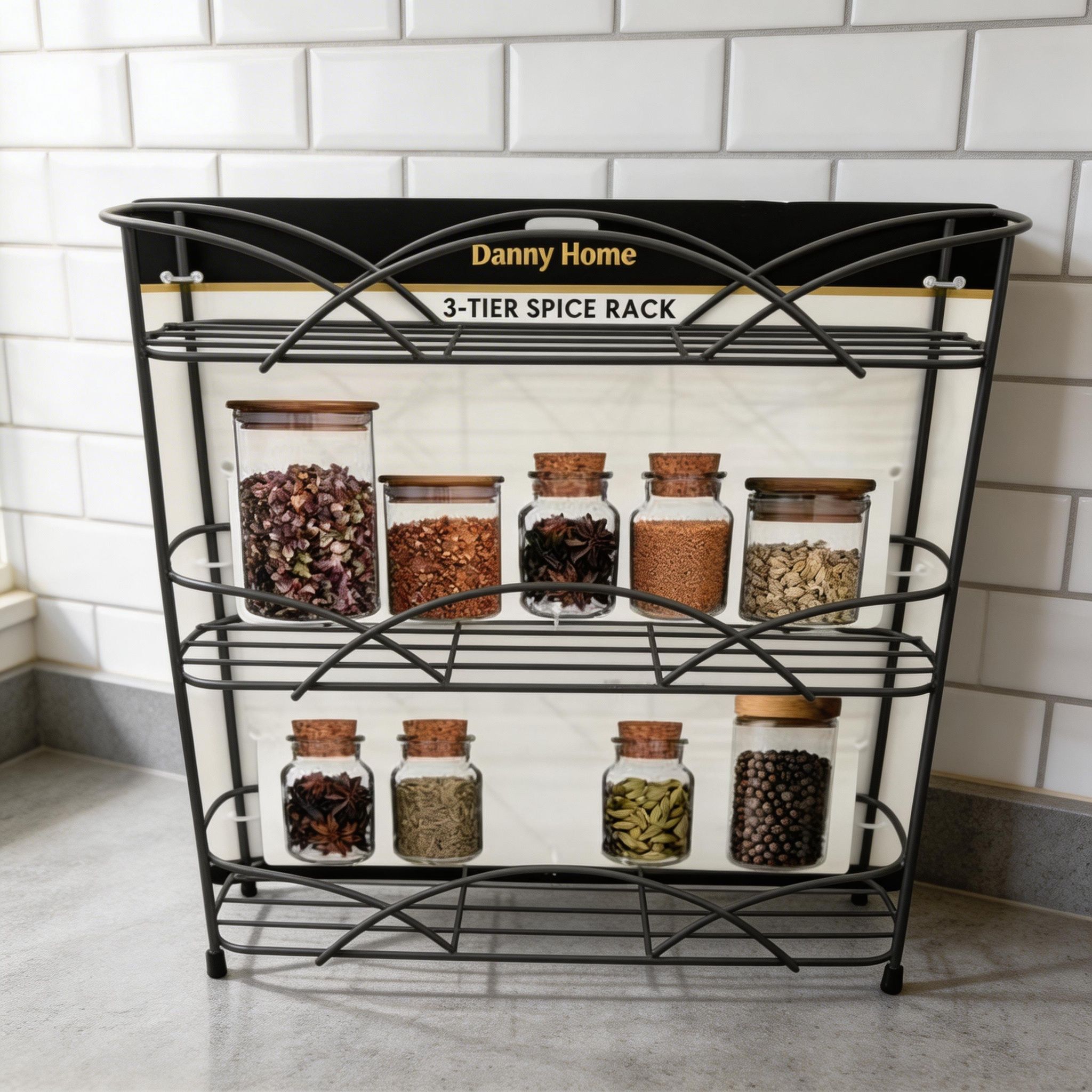 Fabricado en metal resistente, este especiero garantiza durabilidad y estabilidad para el uso diario. Su diseño de varios niveles permite almacenar una mayor cantidad de especias sin ocupar mucho espacio, manteniendo el orden y la limpieza de tus superficies.