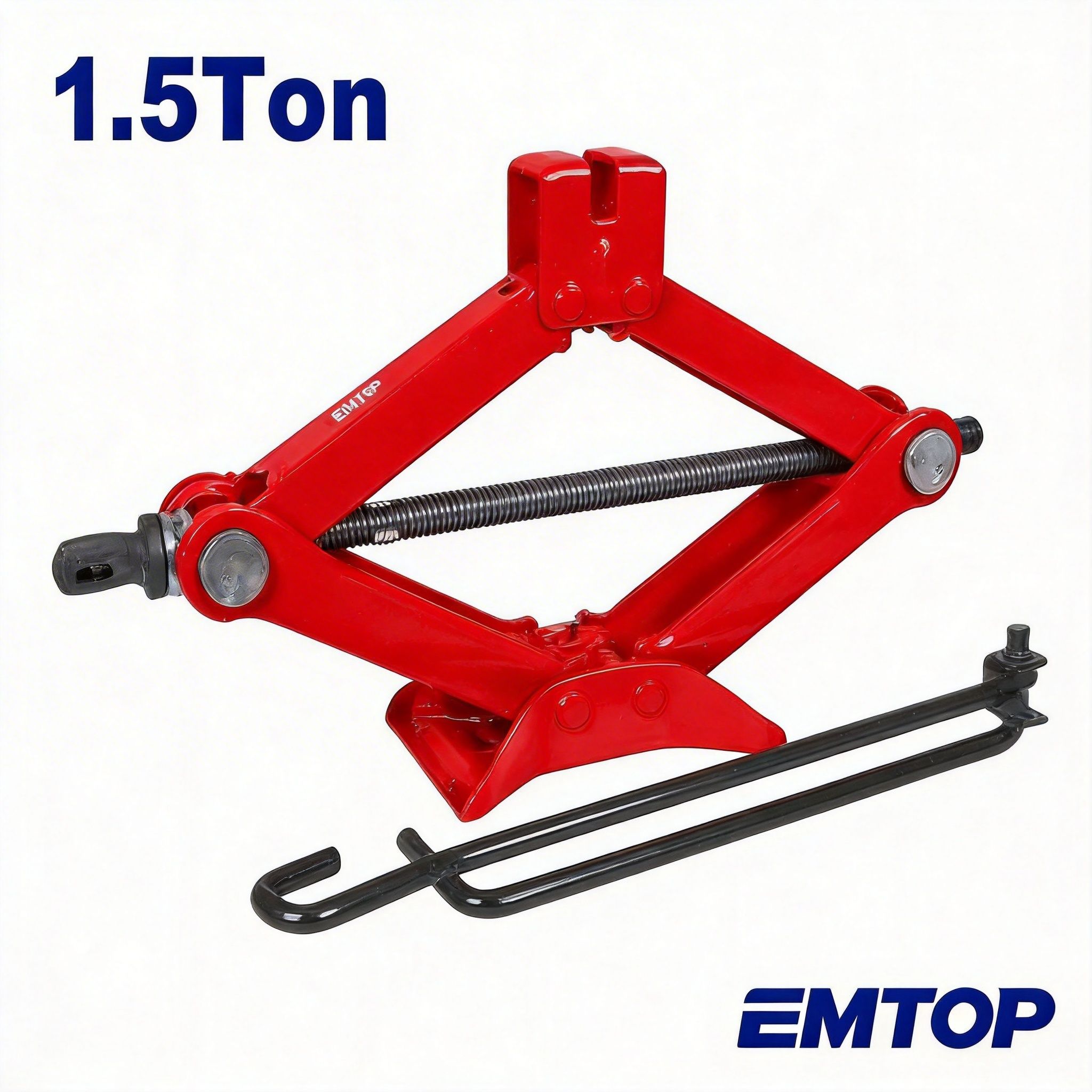 Gato de tijera EMTOP de 1.5 toneladas, ideal para levantar vehículos de forma práctica y segura en trabajos de cambio de llanta, revisiones básicas y mantenimiento automotriz. Es una herramienta útil para tener en el vehículo, taller o garaje, ya que permite contar con una solución manual confiable para emergencias o tareas de servicio liviano.