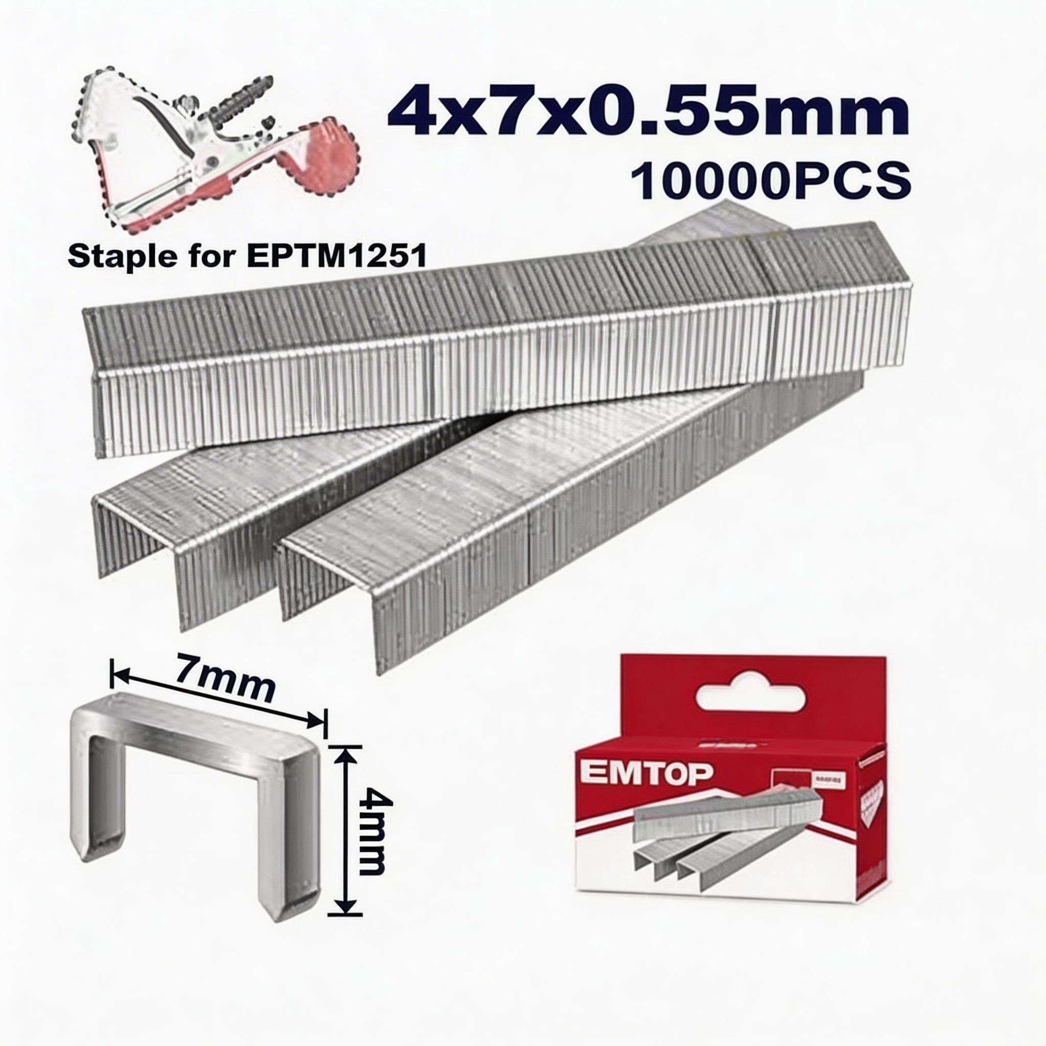 Las grapas en forma de U EMTOP de 4 x 7 x 0.55 mm son un accesorio práctico para trabajos de fijación ligera donde se necesita sujetar materiales de forma rápida, ordenada y segura. Su diseño en forma de U permite una aplicación funcional en distintas tareas de instalación, reparación o ajuste, siendo una opción útil para complementar herramientas de grapado compatibles.