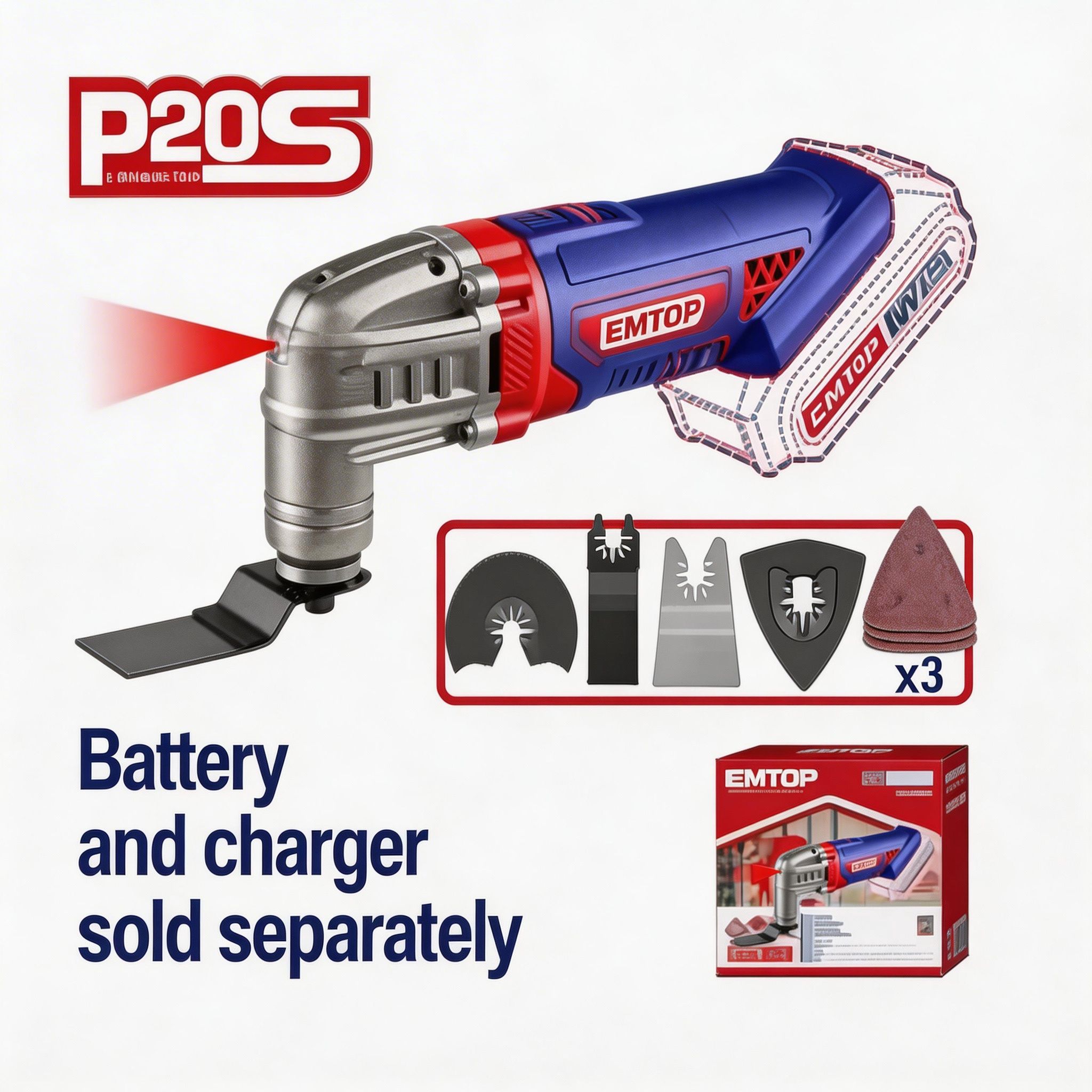 Esta herramienta multifunción inalámbrica EMTOP está diseñada para ofrecer versatilidad en una amplia variedad de trabajos como corte, lijado, raspado y ajustes en diferentes materiales. Es ideal para proyectos de bricolaje, mantenimiento, instalación y acabados donde se requiere precisión y adaptabilidad en una sola herramienta.
