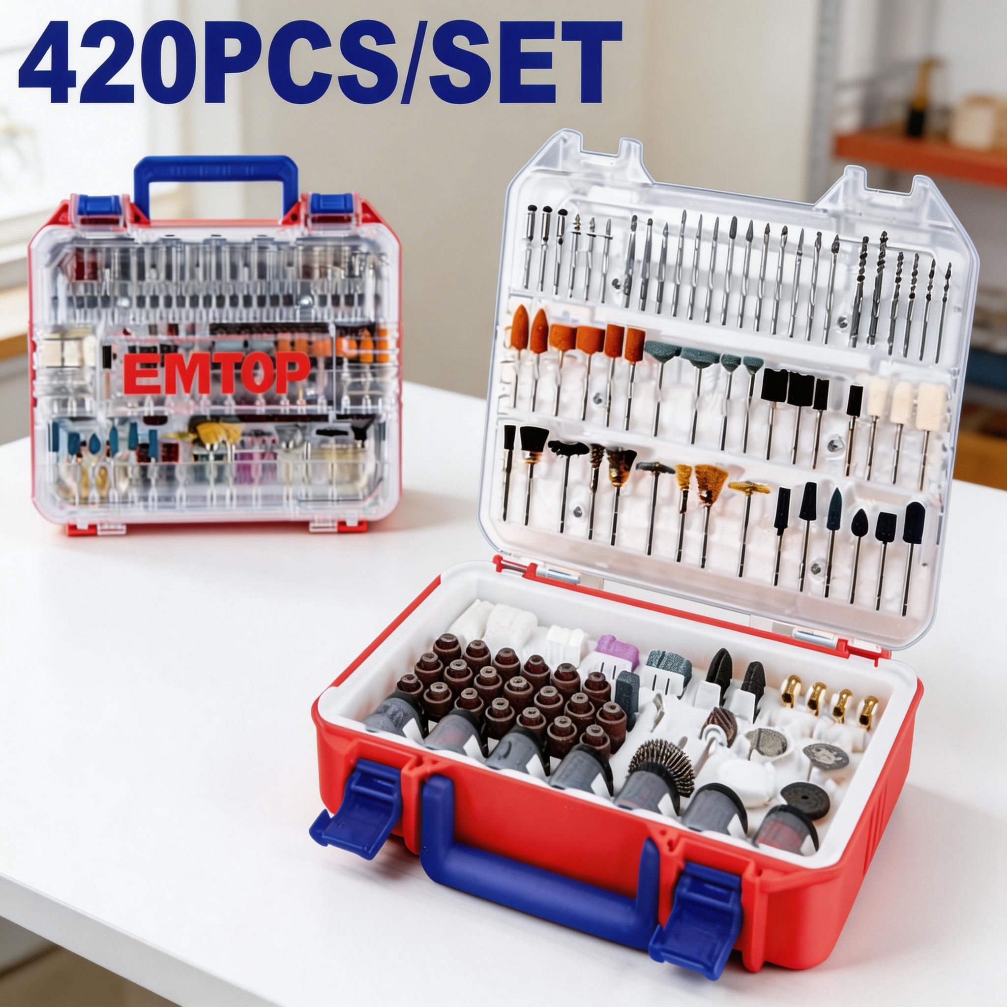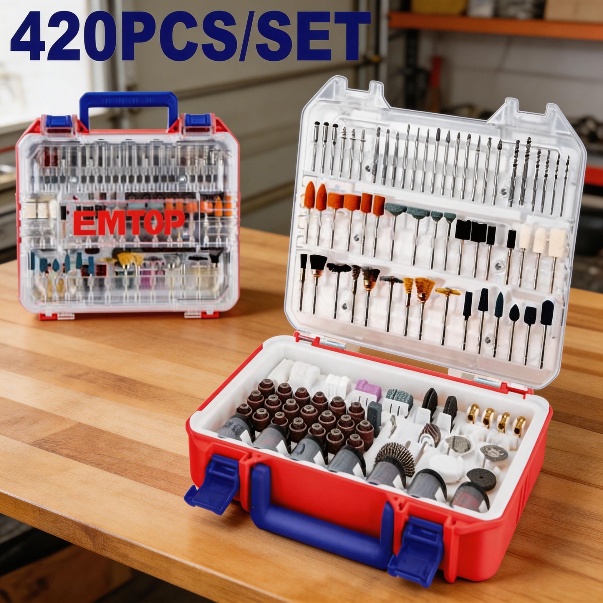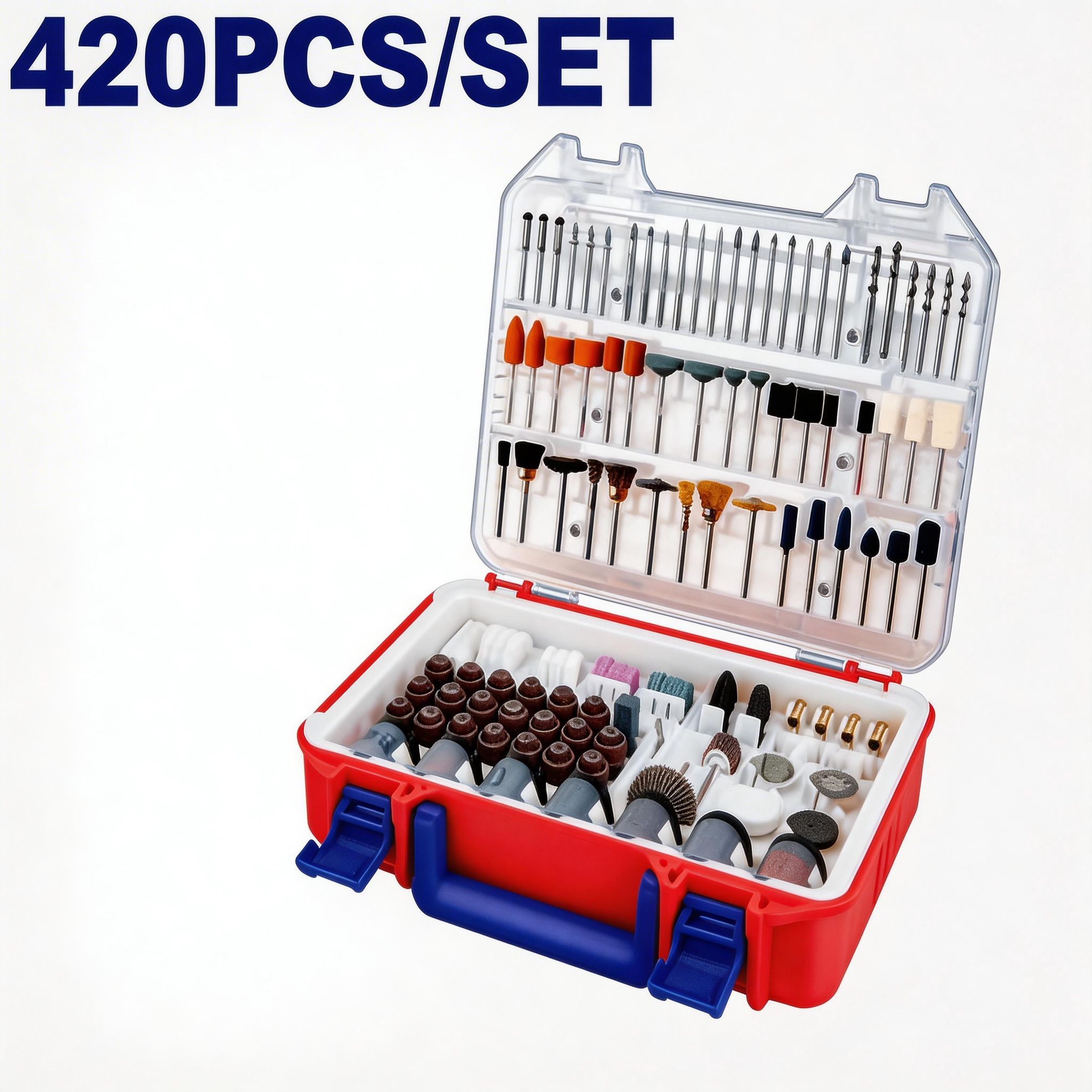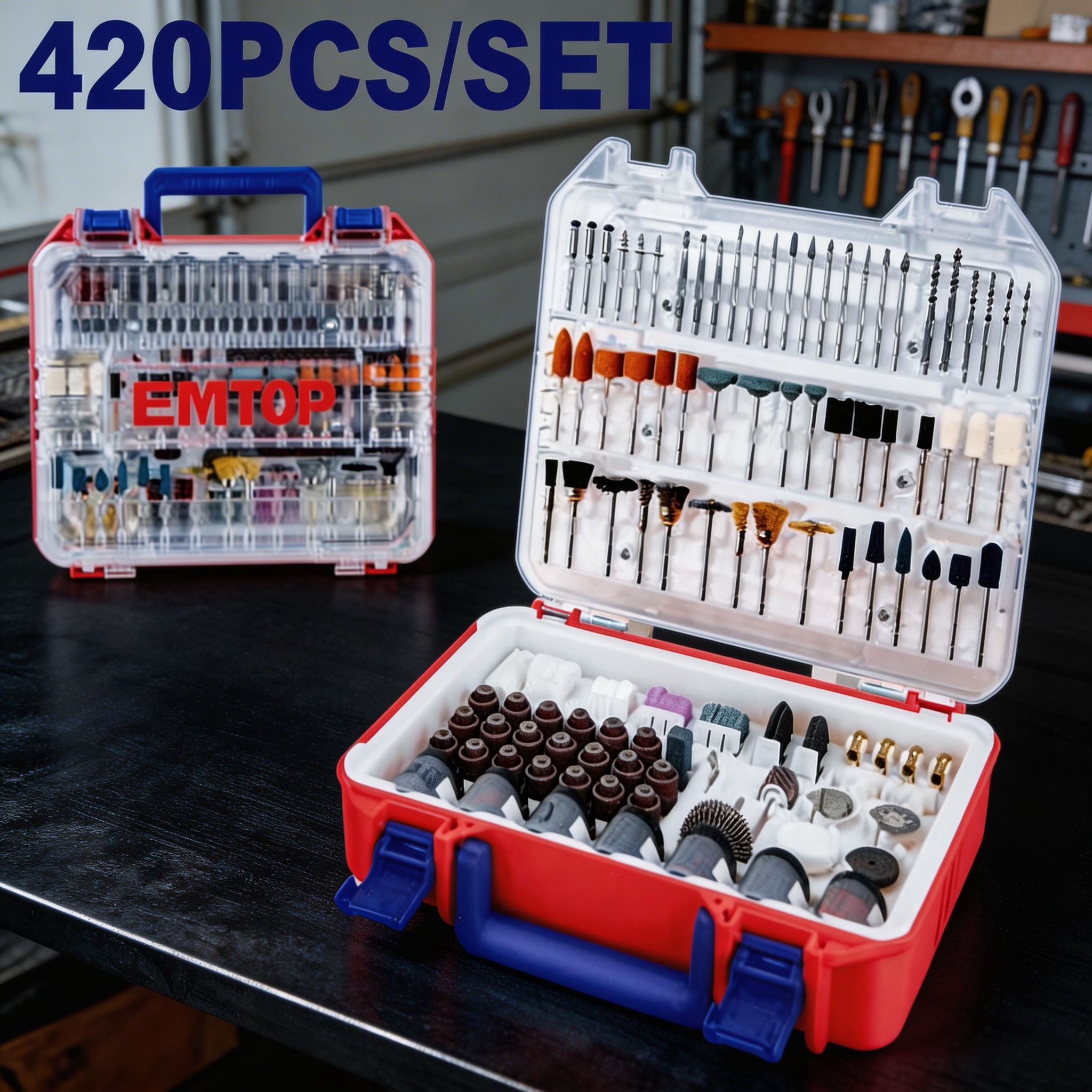 El juego de accesorios para mini taladro de 420 piezas es una opción completa y práctica para trabajos de corte, desbaste, pulido, lijado, grabado, limpieza y acabado en diferentes materiales. Está pensado para brindar mayor versatilidad al usuario, ya que reúne una amplia variedad de accesorios en un solo estuche, facilitando distintas tareas de bricolaje, reparación, manualidades, mantenimiento y trabajo detallado.