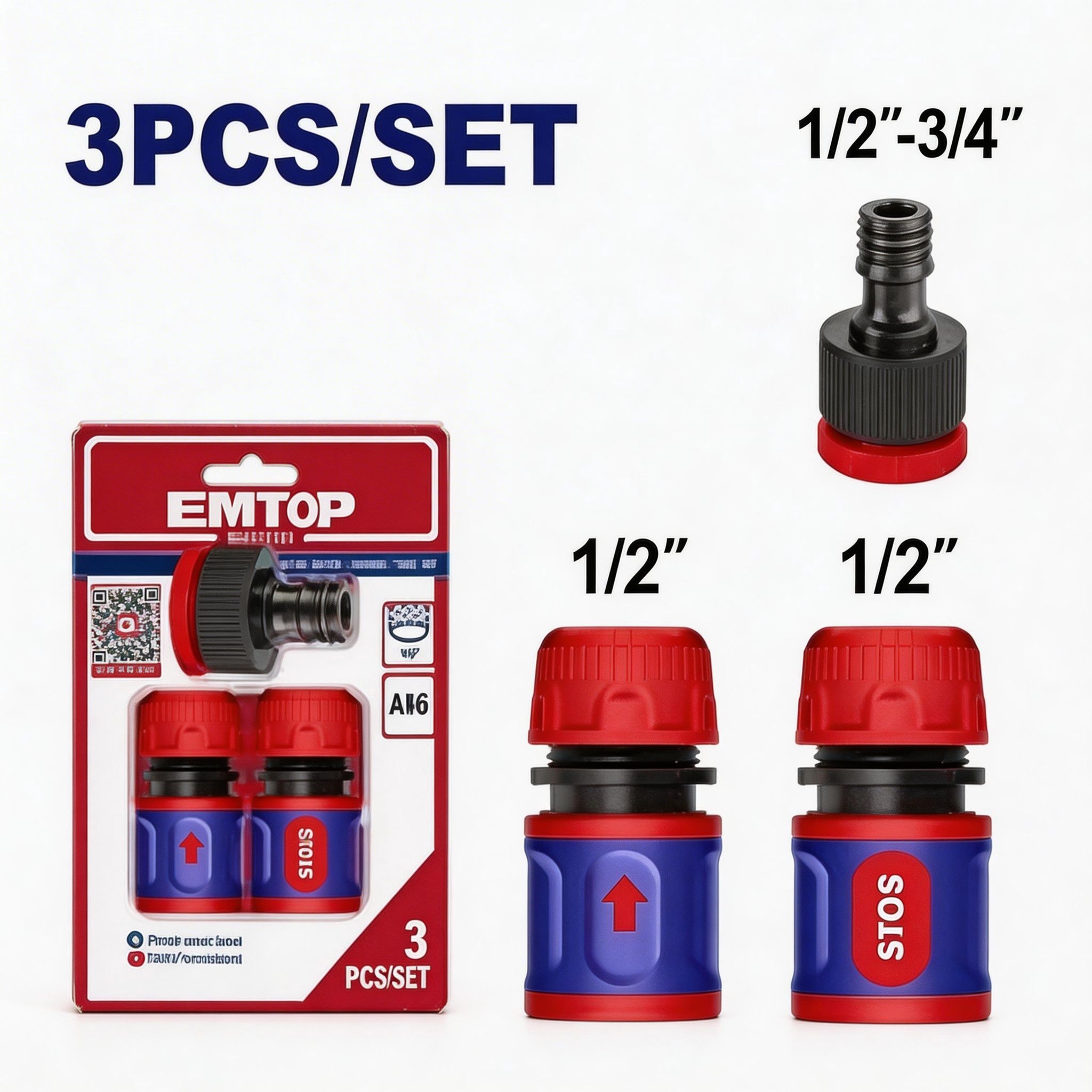 El juego de conectores para manguera EMTOP de 3 piezas es una solución práctica para facilitar la conexión y el uso de mangueras en tareas de riego, limpieza y mantenimiento general. Está diseñado para brindar una unión más cómoda y funcional entre la manguera y sus accesorios, ayudando a mejorar el flujo de trabajo en actividades domésticas o de uso frecuente.