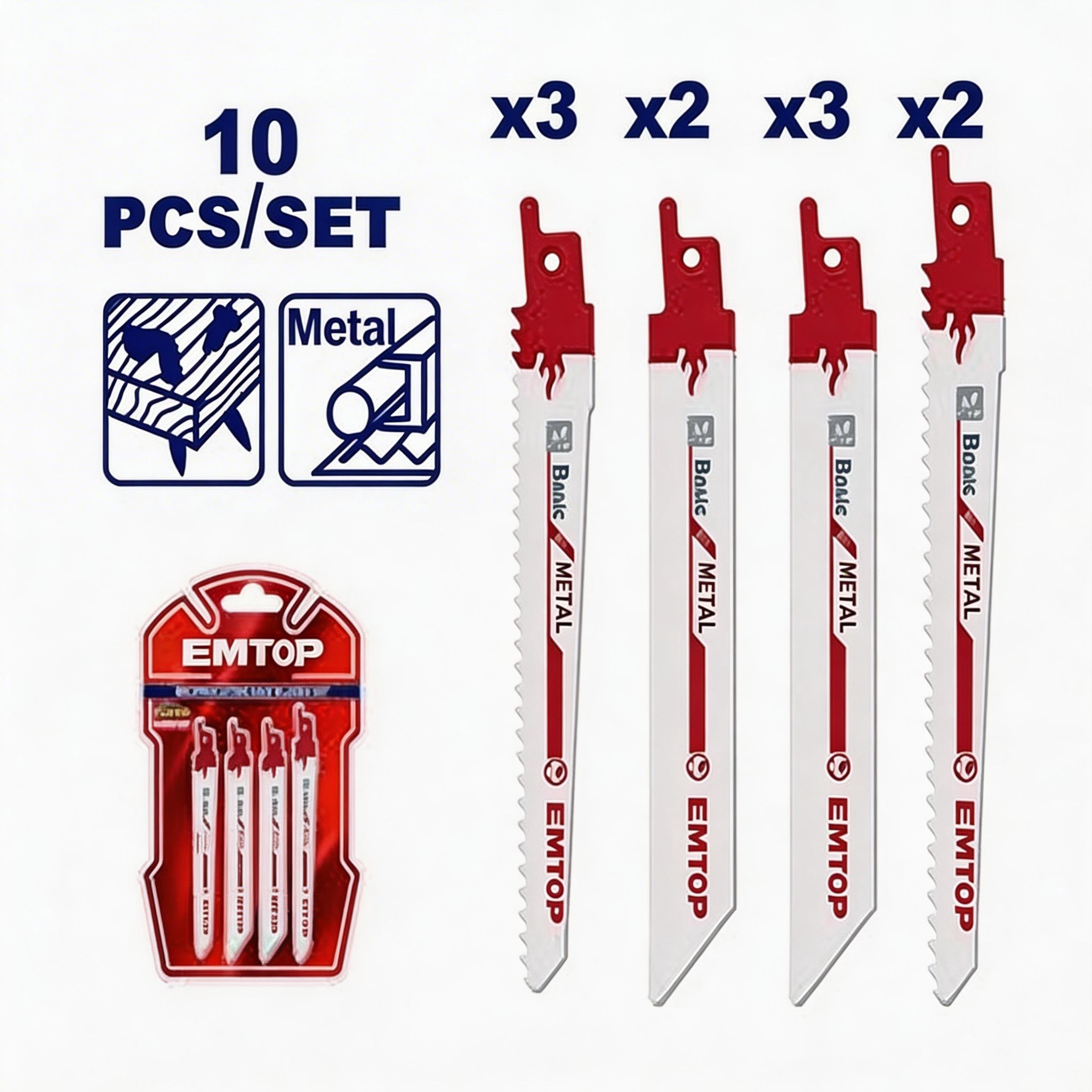 Juego de hojas para sierra reciprocante 10 piezas