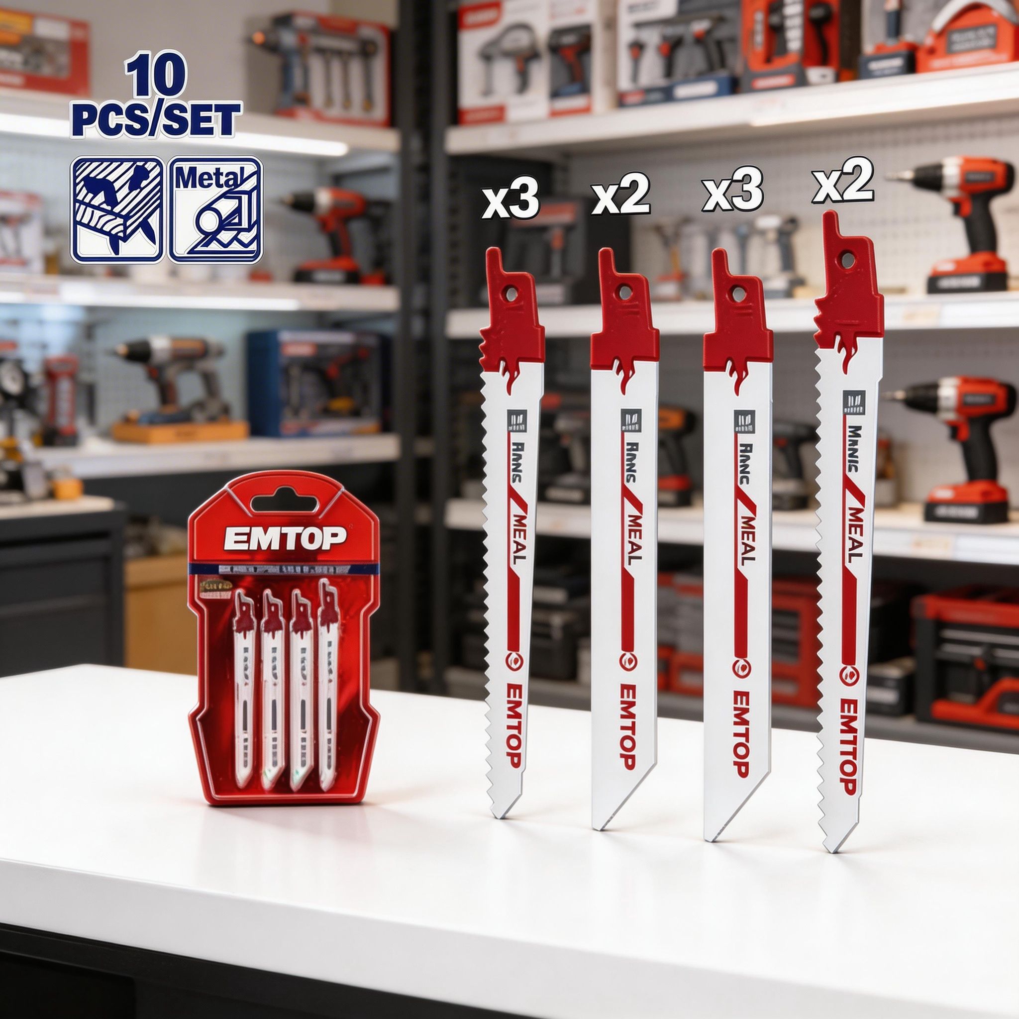 Este juego de hojas para sierra reciprocante de 10 piezas es una opción práctica y versátil para trabajos de corte en distintas aplicaciones. Está pensado para quienes necesitan contar con varias hojas en un solo paquete, facilitando el cambio según el tipo de trabajo y ayudando a mantener siempre repuestos disponibles para seguir trabajando con comodidad.