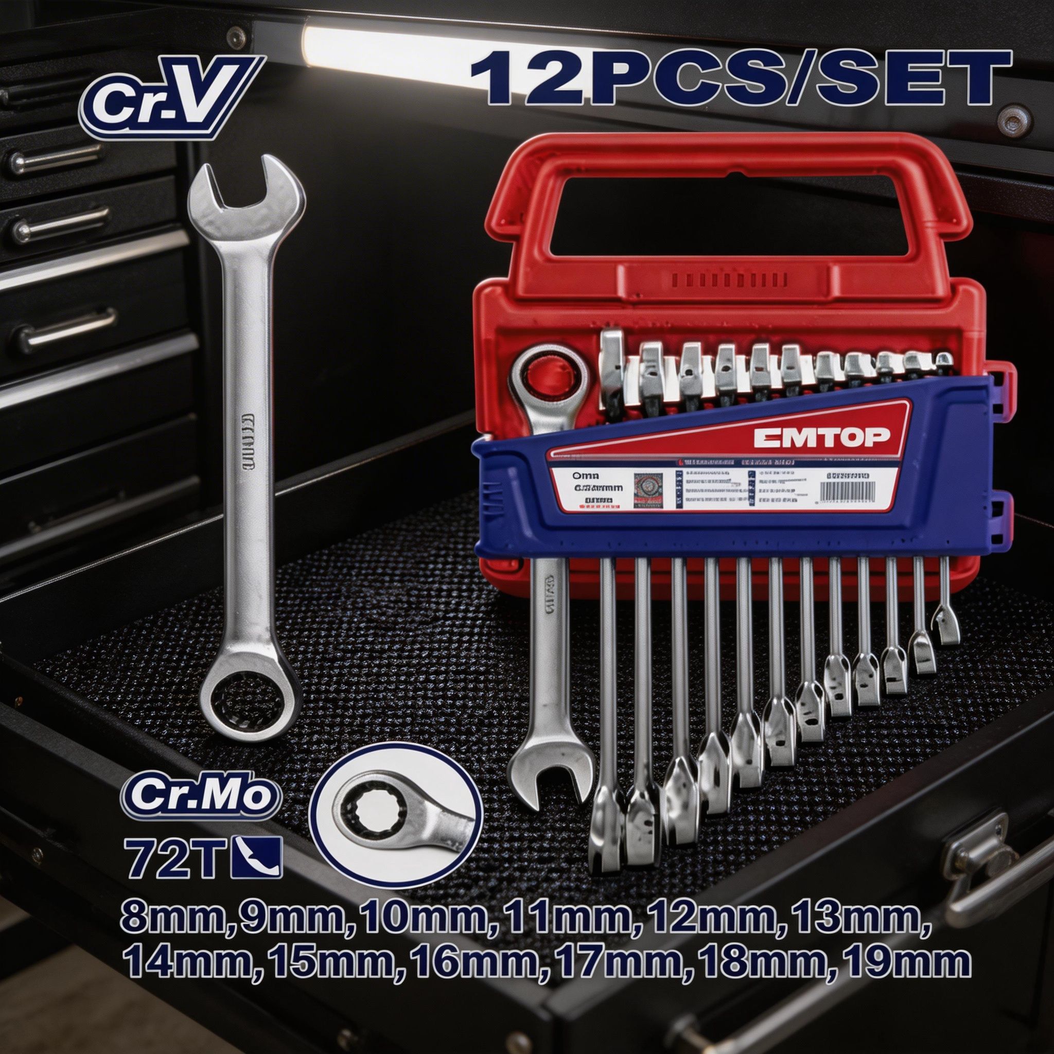 El juego de llaves de ratchet EMTOP de 12 piezas es una opción práctica, completa y funcional para trabajos de ajuste, mantenimiento mecánico, instalación y reparación en diferentes tipos de tuercas y tornillos. Este set está pensado para usuarios que buscan mayor agilidad al trabajar, ya que el sistema de ratchet permite realizar ajustes continuos sin necesidad de retirar y recolocar la llave a cada movimiento, lo que ayuda a ahorrar tiempo y mejorar la comodidad durante el trabajo.