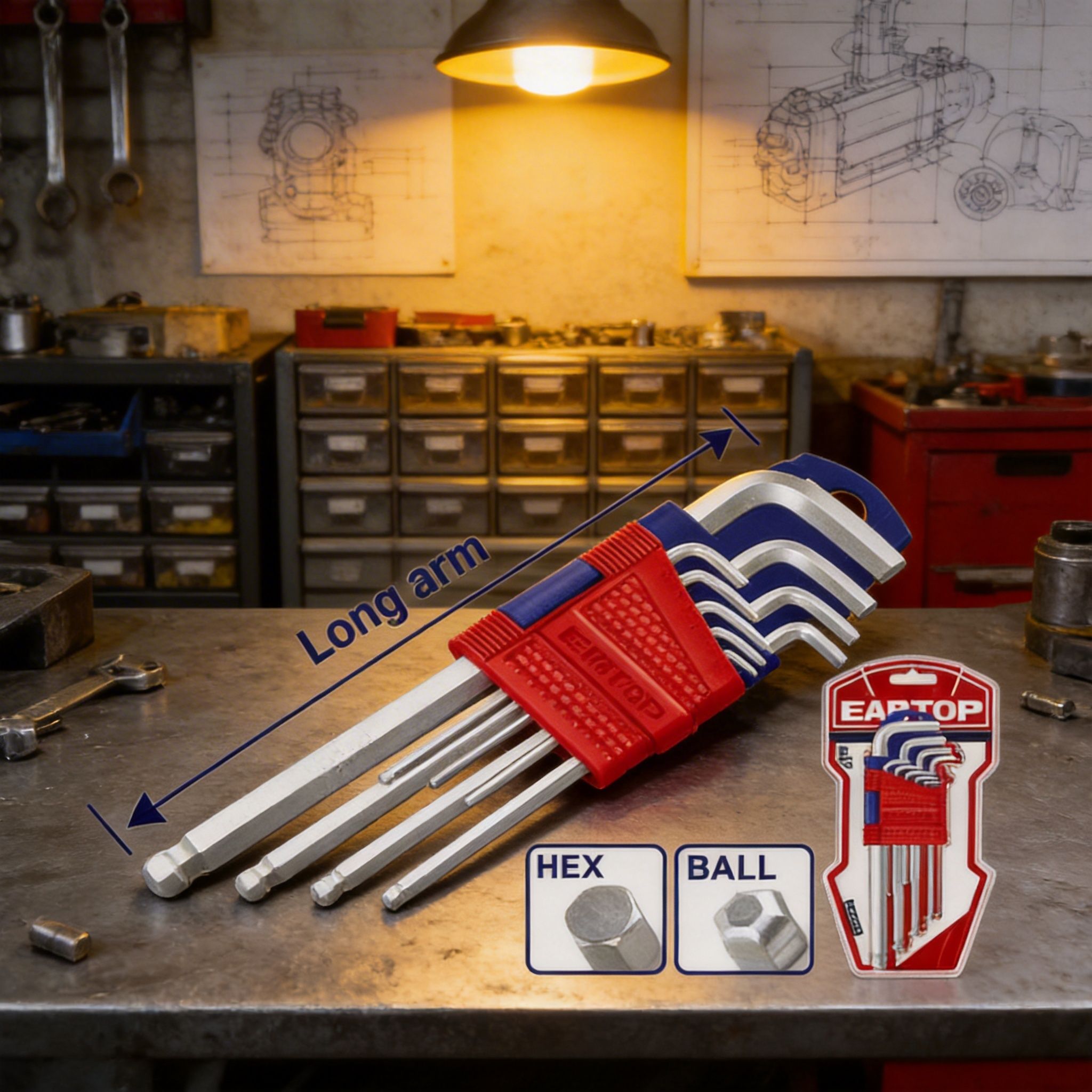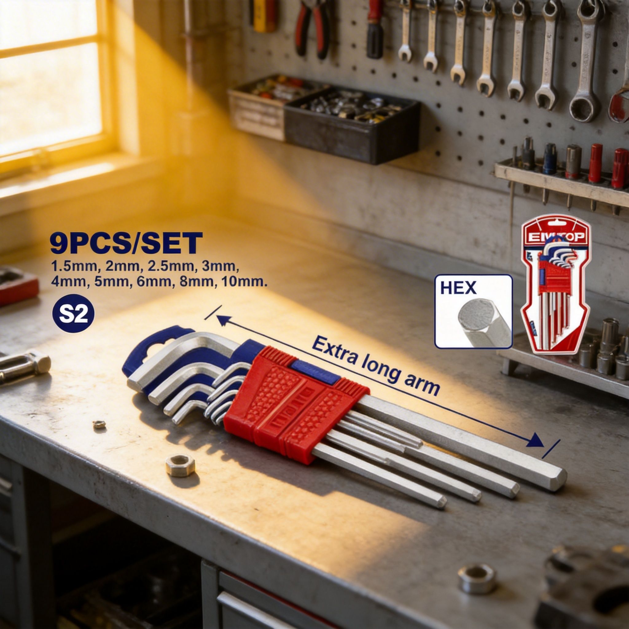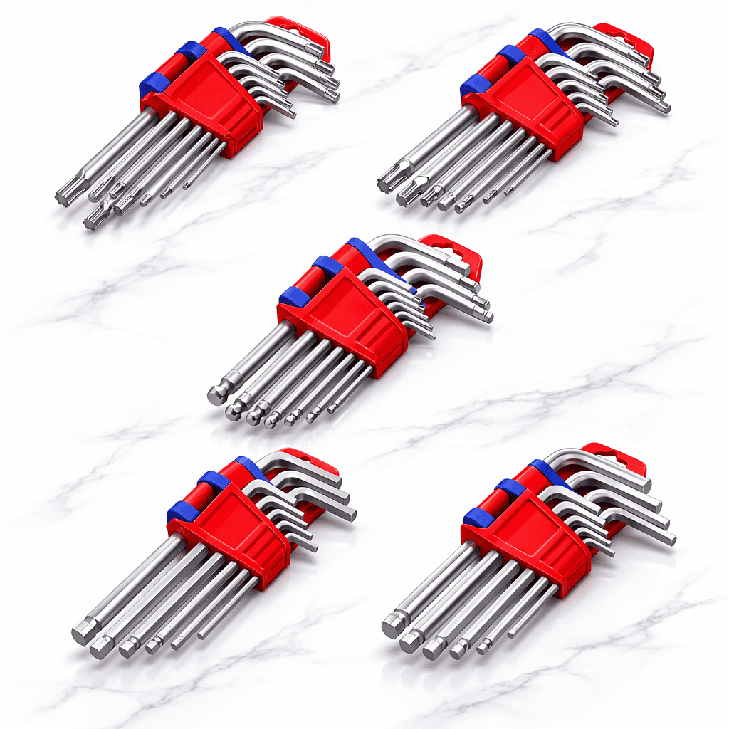 Las llaves Torx son ideales para tornillos tipo estrella, muy usados en equipos, herramientas, componentes mecánicos y aplicaciones técnicas. Las llaves hexagonales estándar son prácticas para tornillos Allen de uso general, mientras que las llaves hexagonales de bola permiten trabajar con mayor comodidad en ángulos inclinados o en espacios donde una llave recta no entra fácilmente. Gracias a su presentación de 9 piezas, cada juego ofrece varias medidas para adaptarse a diferentes necesidades de trabajo.