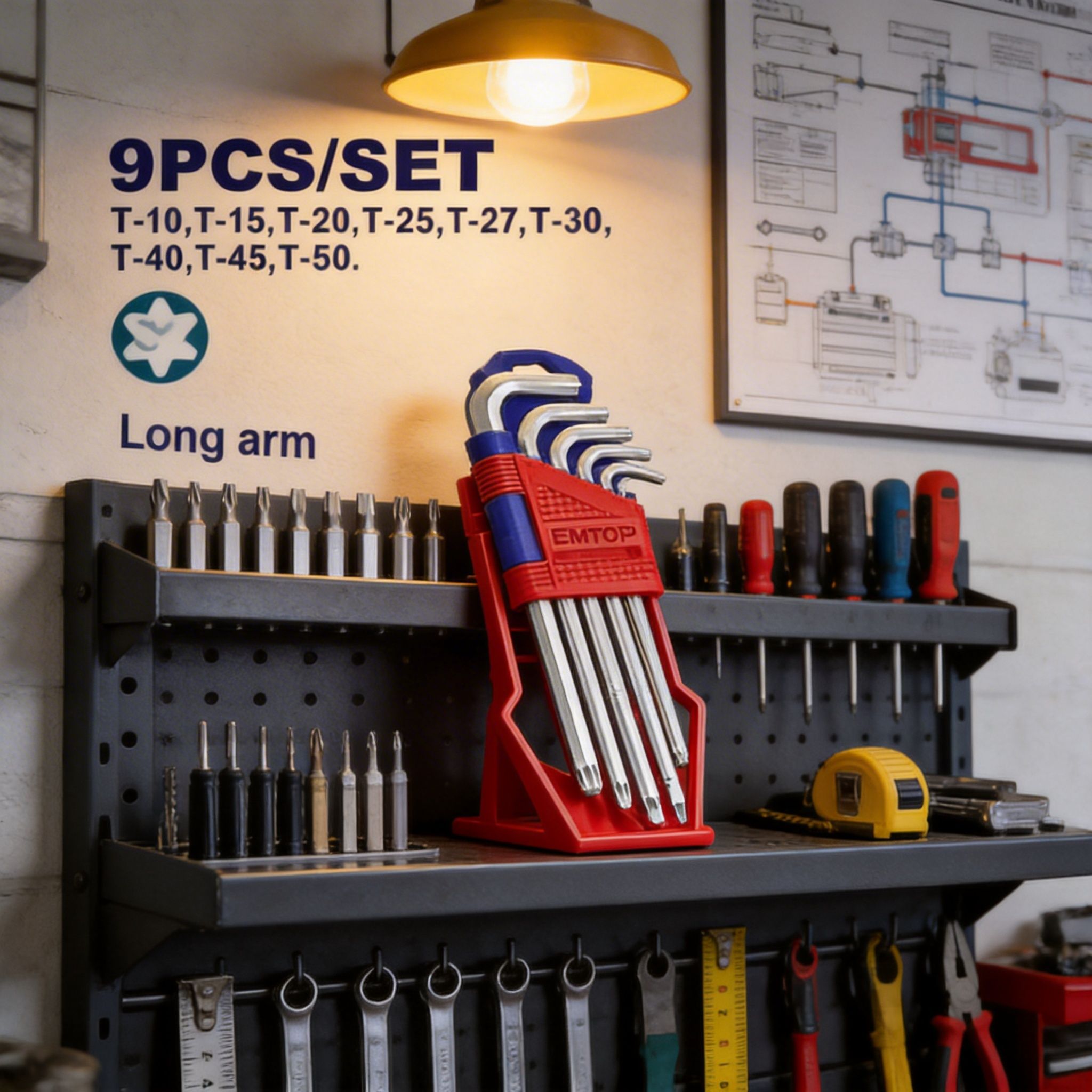 Línea de llaves EMTOP de 9 piezas ideal para trabajos de ajuste, armado, reparación y mantenimiento en tareas mecánicas, técnicas y de instalación. Este grupo incluye juegos de llave Torx, llave hexagonal de bola y llave hexagonal estándar, ofreciendo opciones prácticas para distintos tipos de tornillos y aplicaciones. Son herramientas muy útiles para talleres, mantenimiento general, armado de muebles, reparación de bicicletas, motocicletas, equipos y trabajos donde se necesita una llave confiable para ajuste preciso.