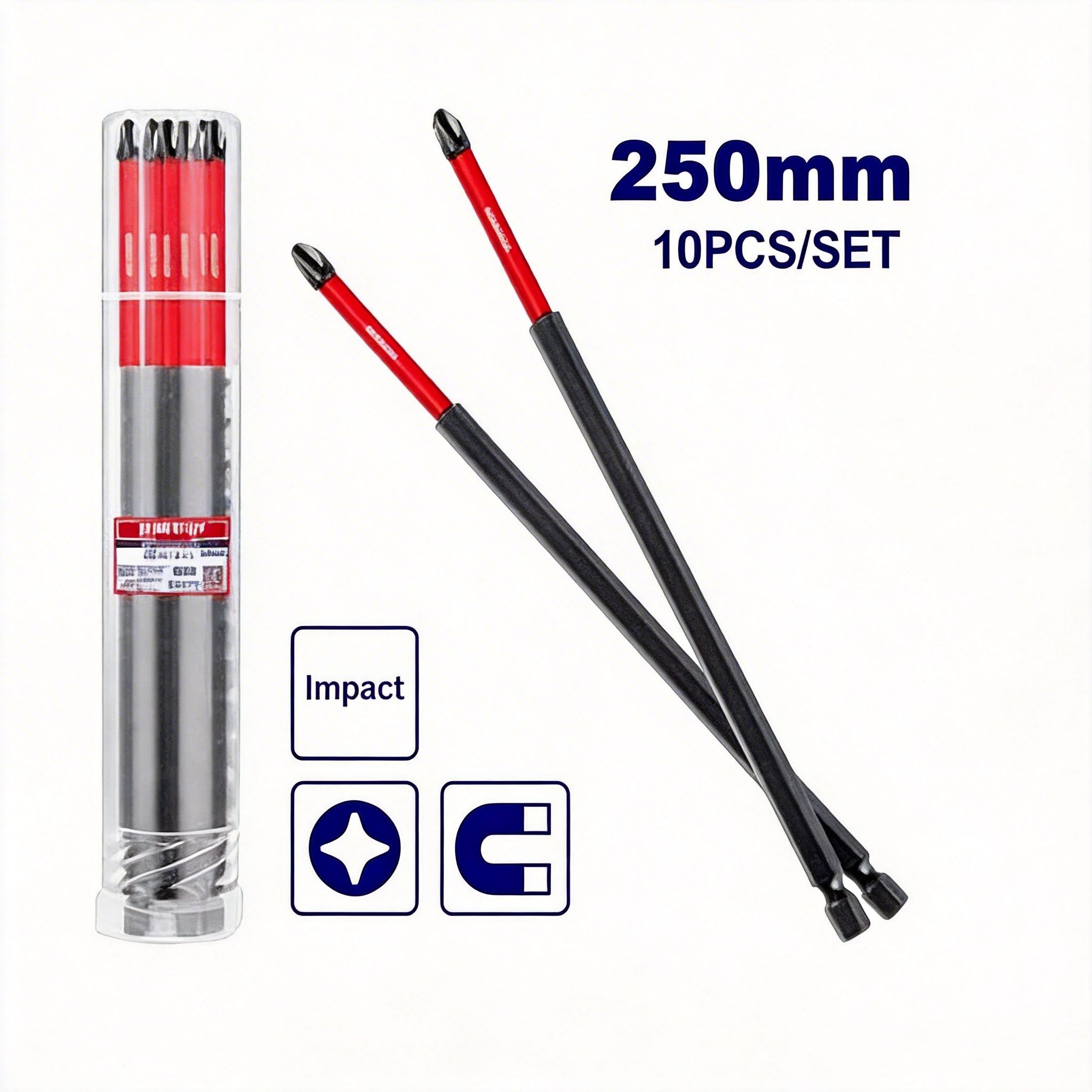 El juego de puntas para destornilladores de 250 mm es un accesorio práctico y funcional para trabajos de ajuste, instalación, reparación y mantenimiento en diferentes tipos de superficies y equipos. Está diseñado para ampliar el alcance y la comodidad al momento de trabajar con tornillos en espacios de difícil acceso, permitiendo un mejor manejo en tareas donde se necesita mayor longitud y precisión.