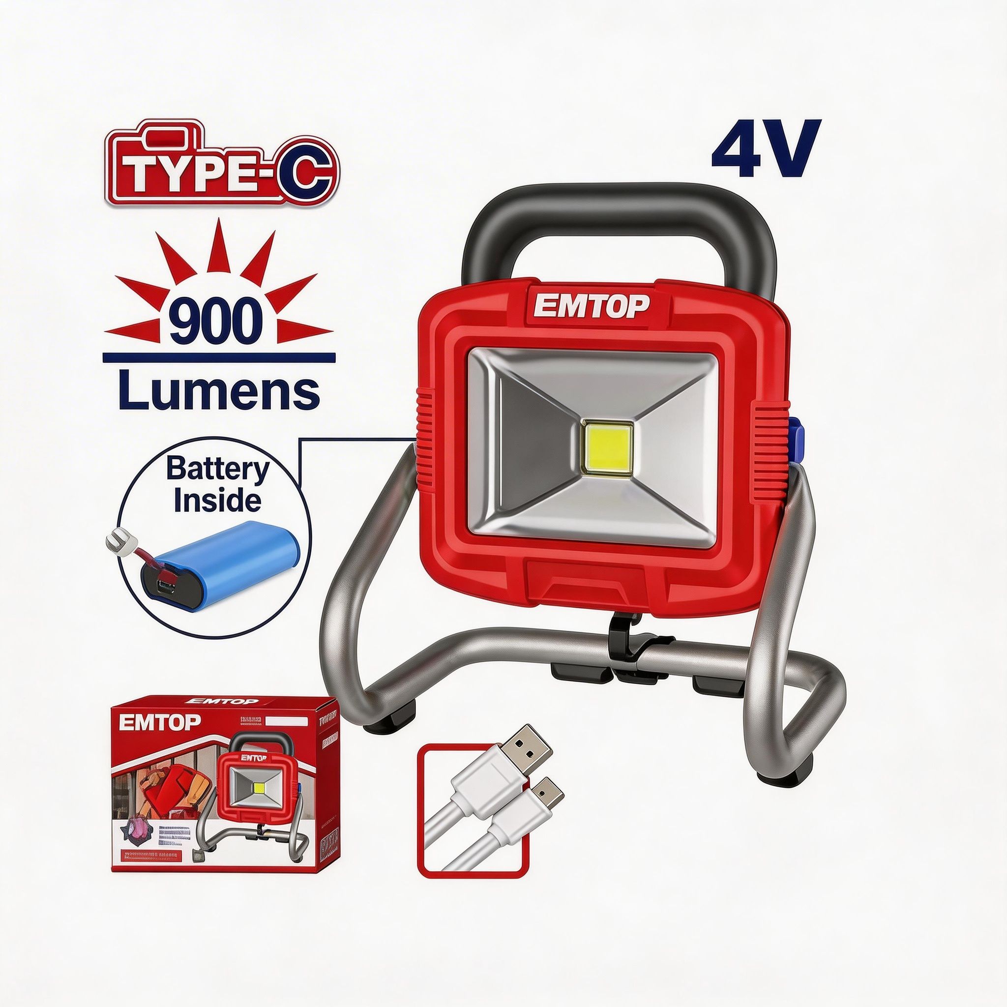 La lámpara portátil recargable EMTOP de 900 lúmenes está diseñada para brindar iluminación práctica y eficiente en diferentes entornos de trabajo, mantenimiento, emergencias y uso general. Es una opción funcional para usuarios que necesitan una fuente de luz portátil para tareas en interiores o exteriores, ayudando a mejorar la visibilidad en áreas con poca iluminación.