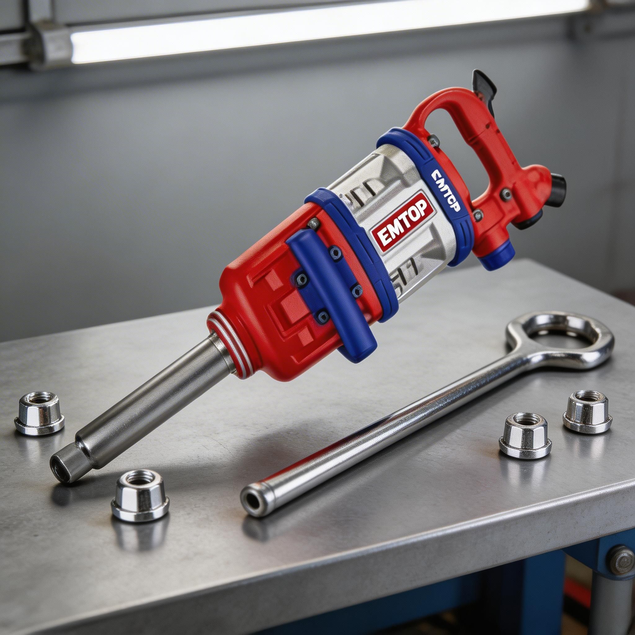 Esta llave de impacto neumática EMTOP de 1″ está diseñada para trabajos de alta exigencia en aplicaciones industriales, automotrices pesadas y mantenimiento de maquinaria. Su funcionamiento con aire comprimido permite generar una fuerza constante y potente, ideal para aflojar y ajustar pernos de gran tamaño con rapidez y eficiencia.