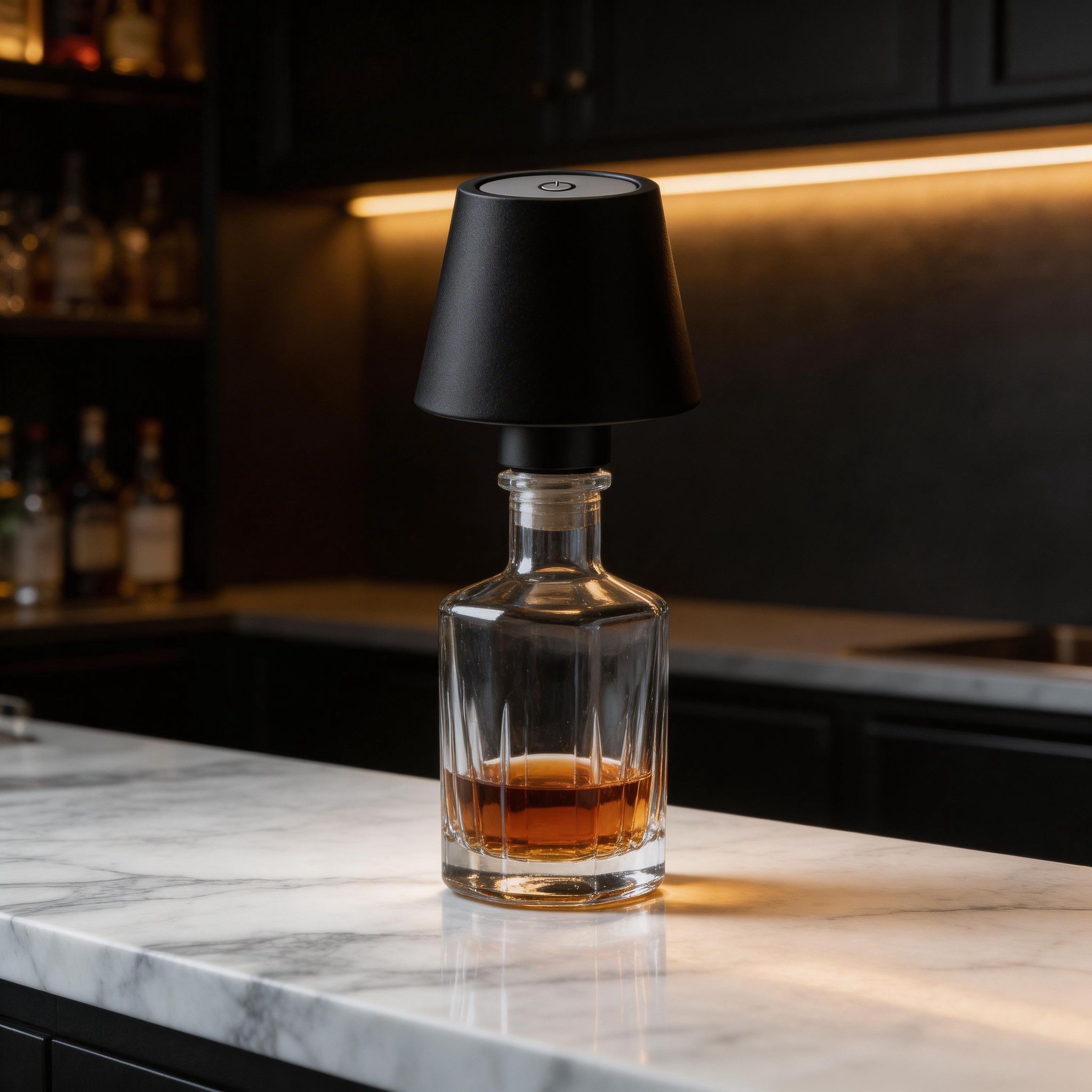 Fabricada con materiales resistentes y equipada con iluminación LED de bajo consumo, ofrece una luz agradable y eficiente. Su diseño compacto permite adaptarla fácilmente a diferentes tipos de botellas, brindando versatilidad en su uso.