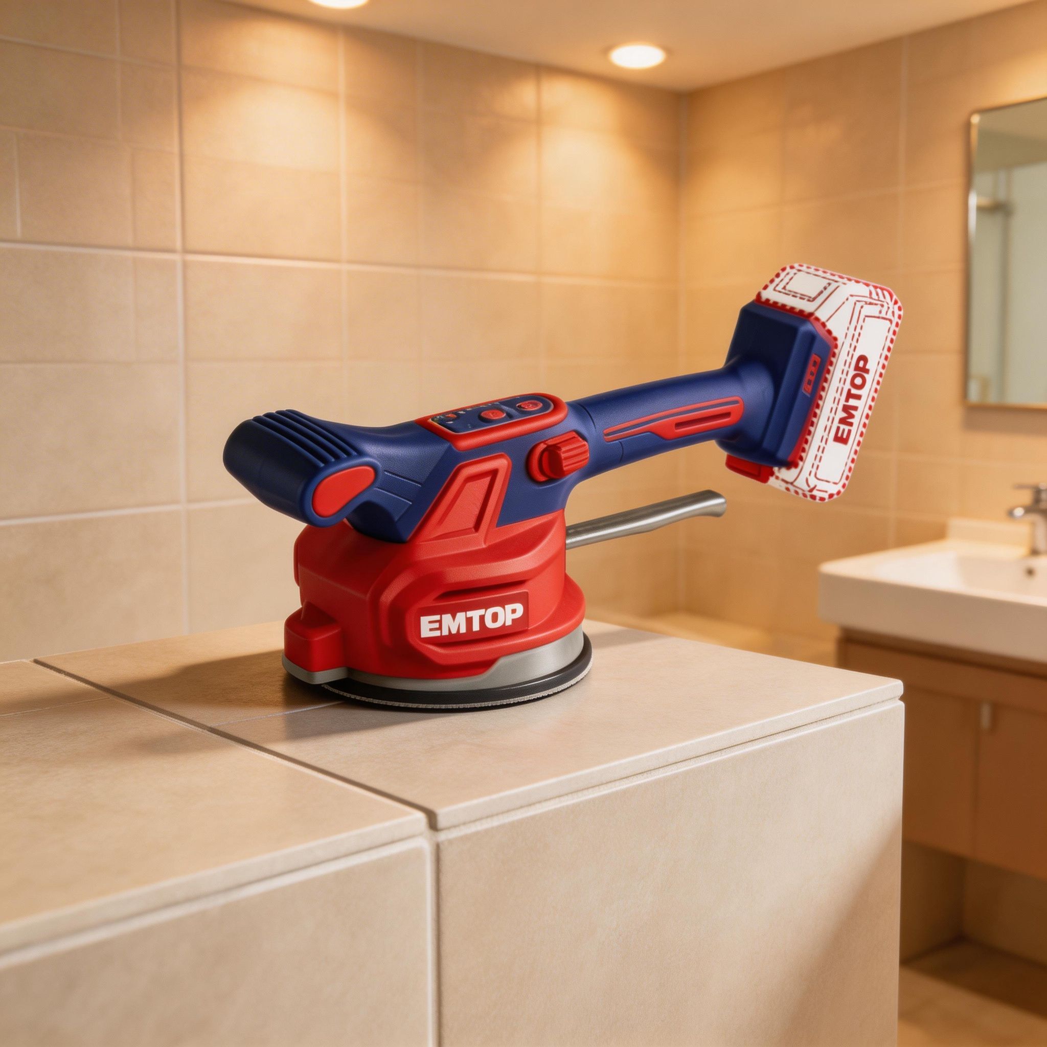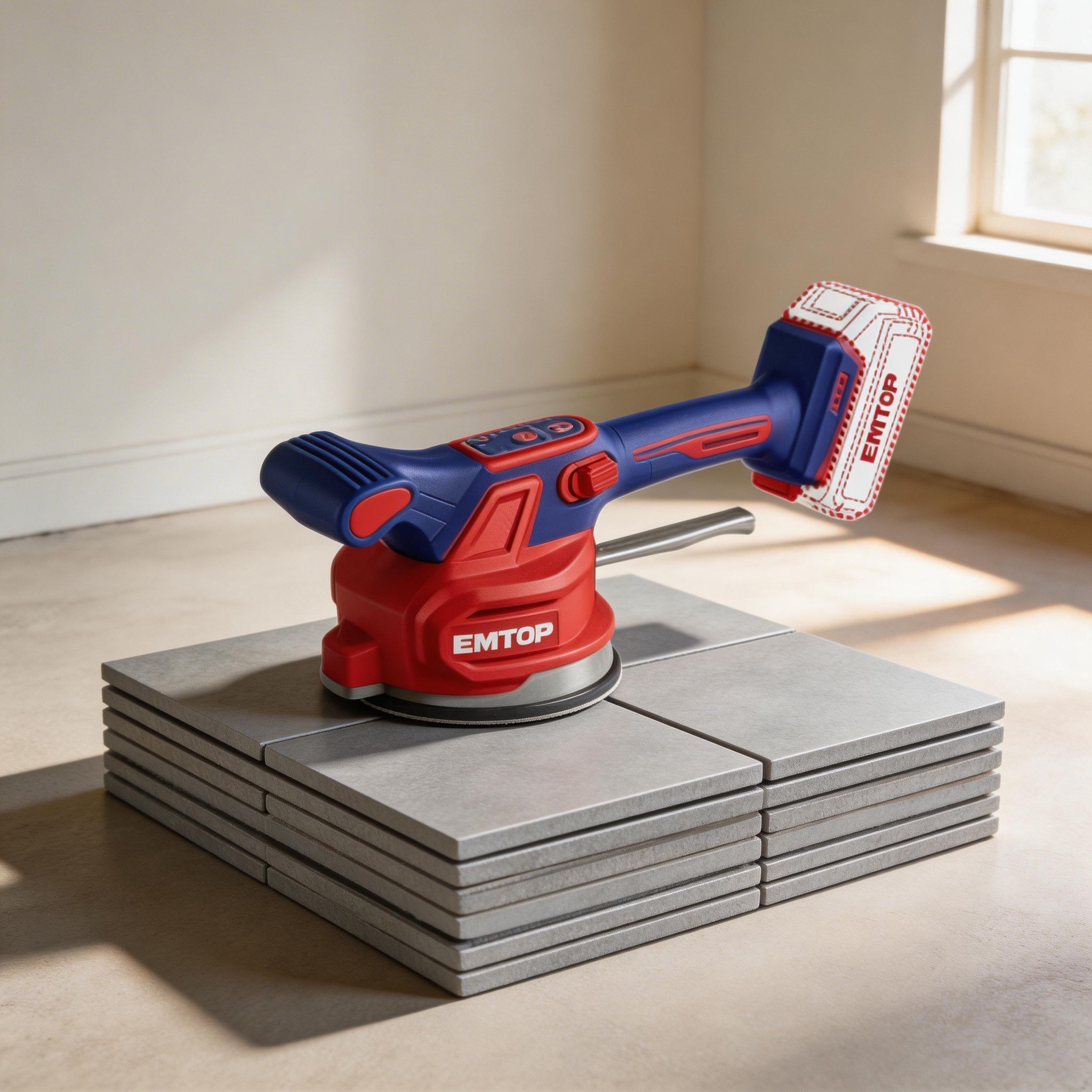 Esta máquina vibradora inalámbrica EMTOP está diseñada para facilitar la instalación de pisos, especialmente en materiales como cerámica, porcelanato y revestimientos similares. Su funcionamiento ayuda a eliminar burbujas de aire y mejorar la adherencia del material, logrando un acabado más uniforme, firme y profesional en cada aplicación.