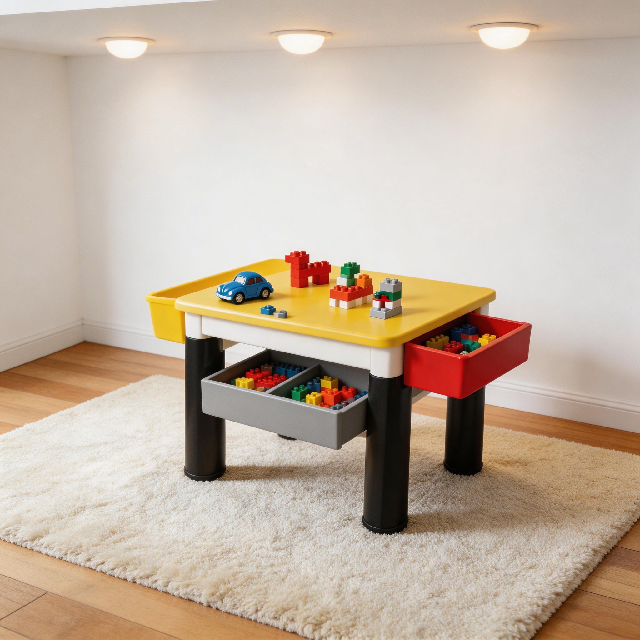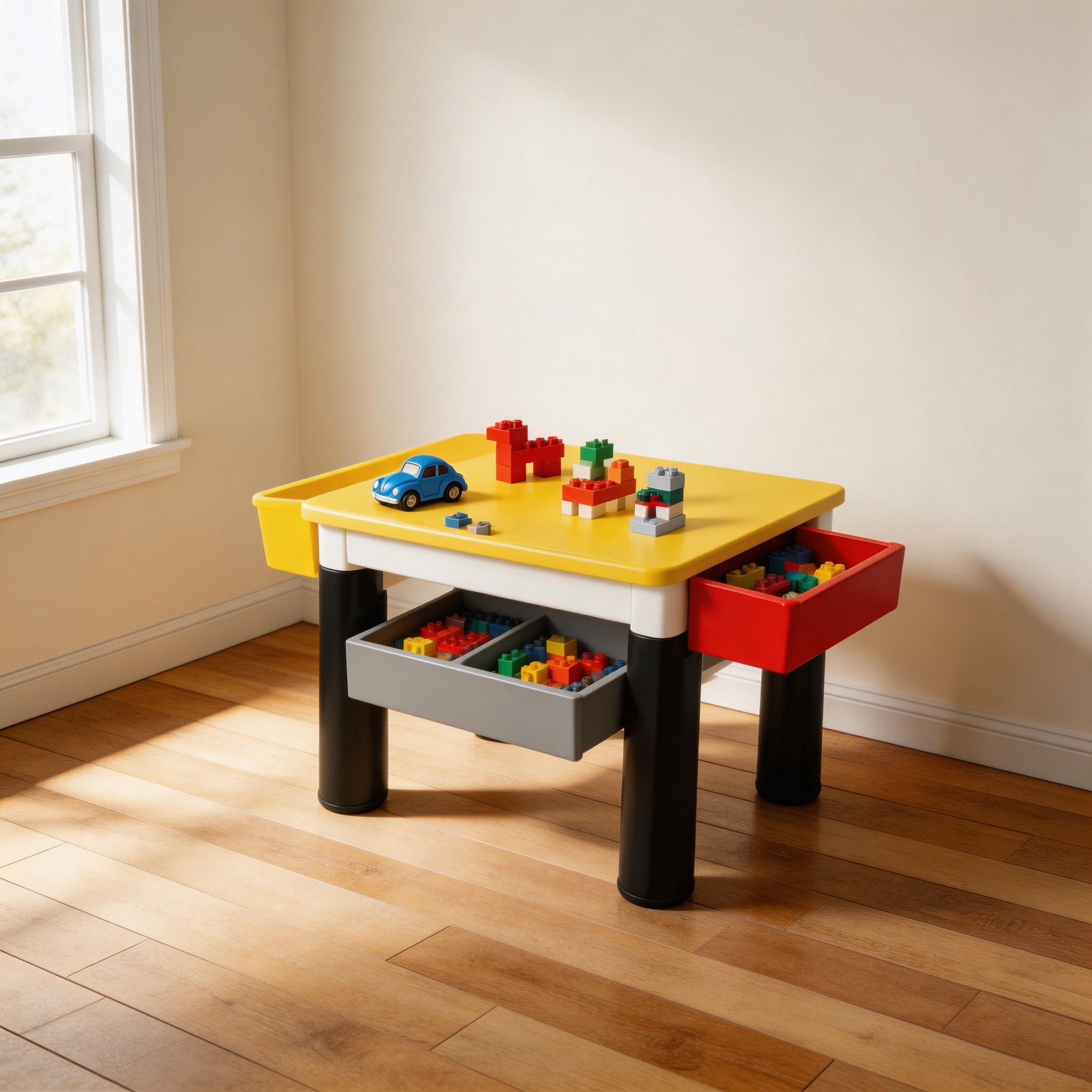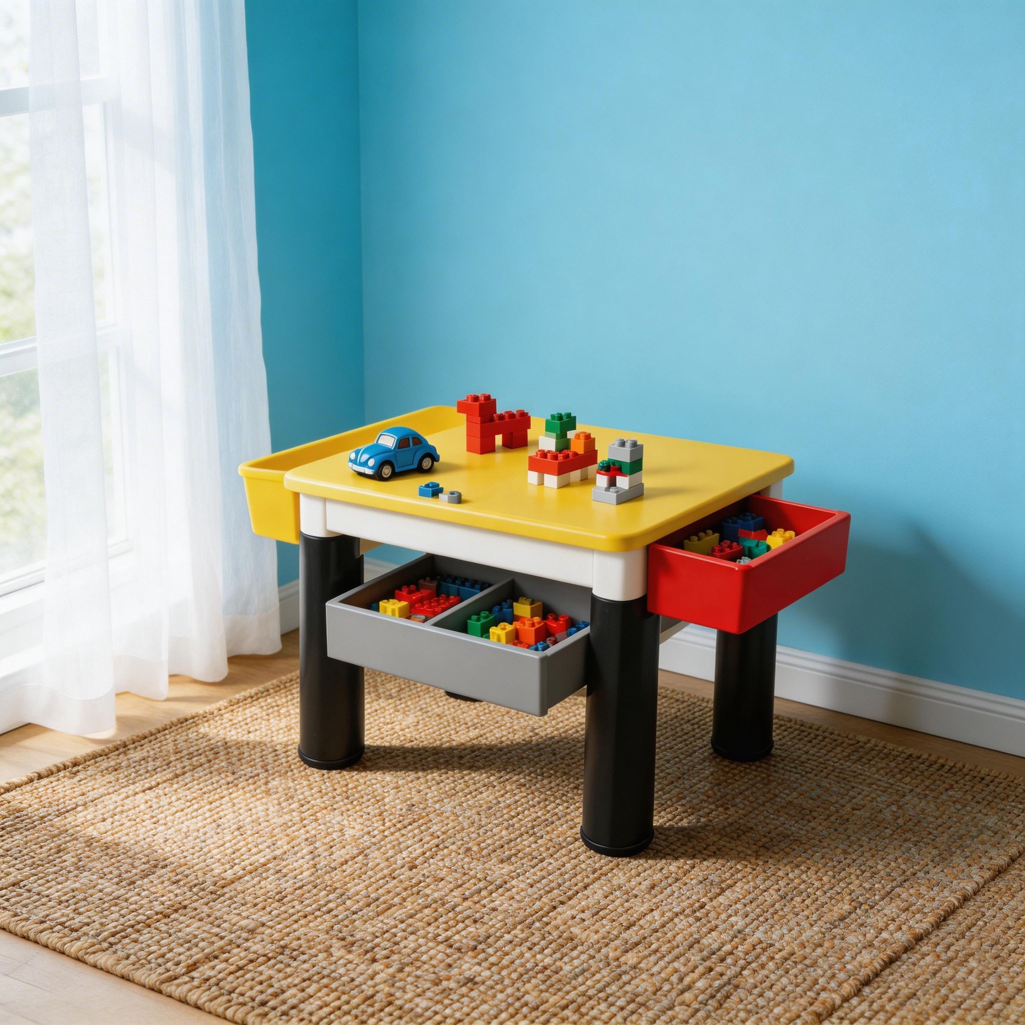 Fabricada con materiales resistentes y seguros, esta mesa está diseñada para un uso prolongado y cómodo para los pequeños. Ayuda a mejorar la coordinación mano-ojo, la motricidad fina y el pensamiento lógico, promoviendo el desarrollo cognitivo mientras los niños construyen y exploran.