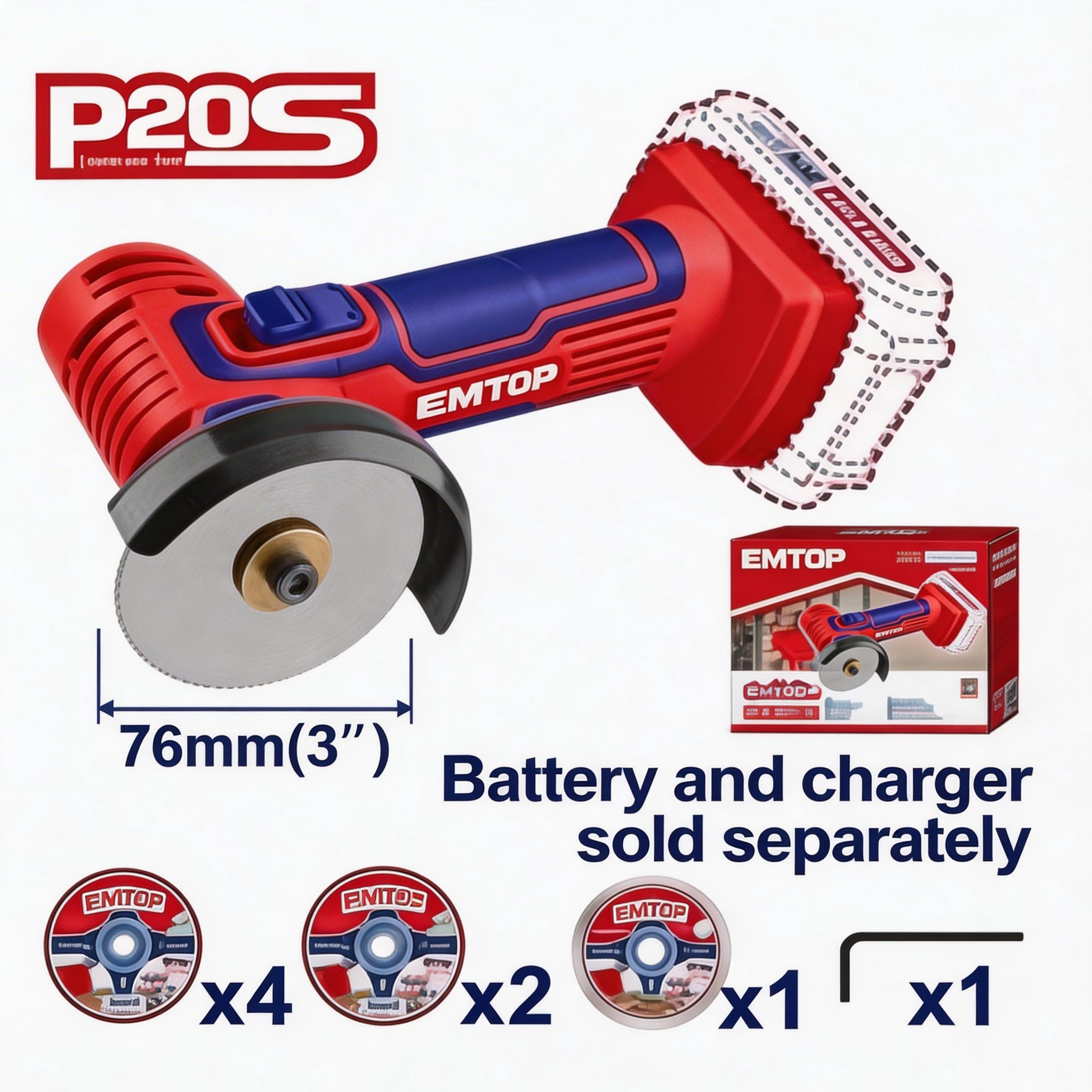 Esta mini cortadora inalámbrica EMTOP de 76 mm (3″) está diseñada para realizar cortes rápidos y precisos en diferentes materiales como metal, plástico y madera, siendo ideal para trabajos de detalle, instalación y mantenimiento. Su tamaño compacto permite mayor control en cortes pequeños y en áreas de difícil acceso.