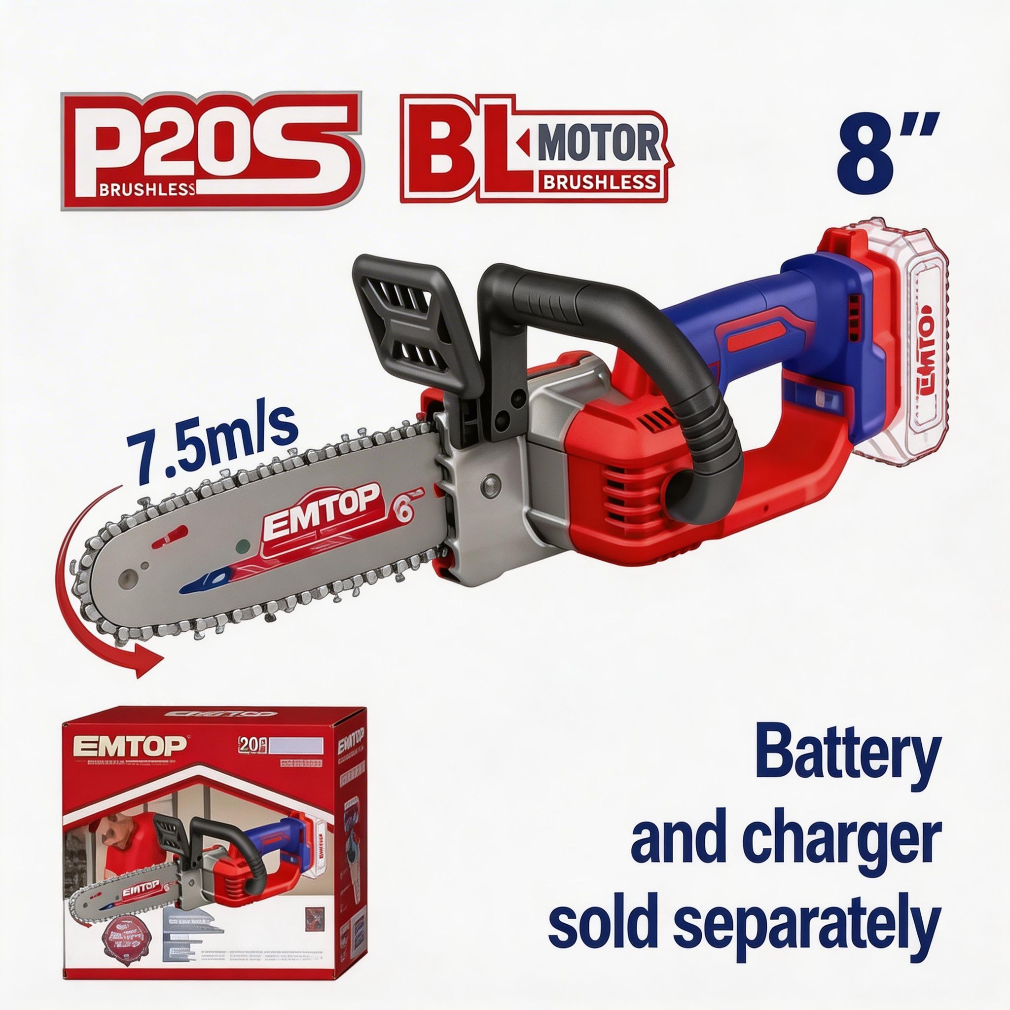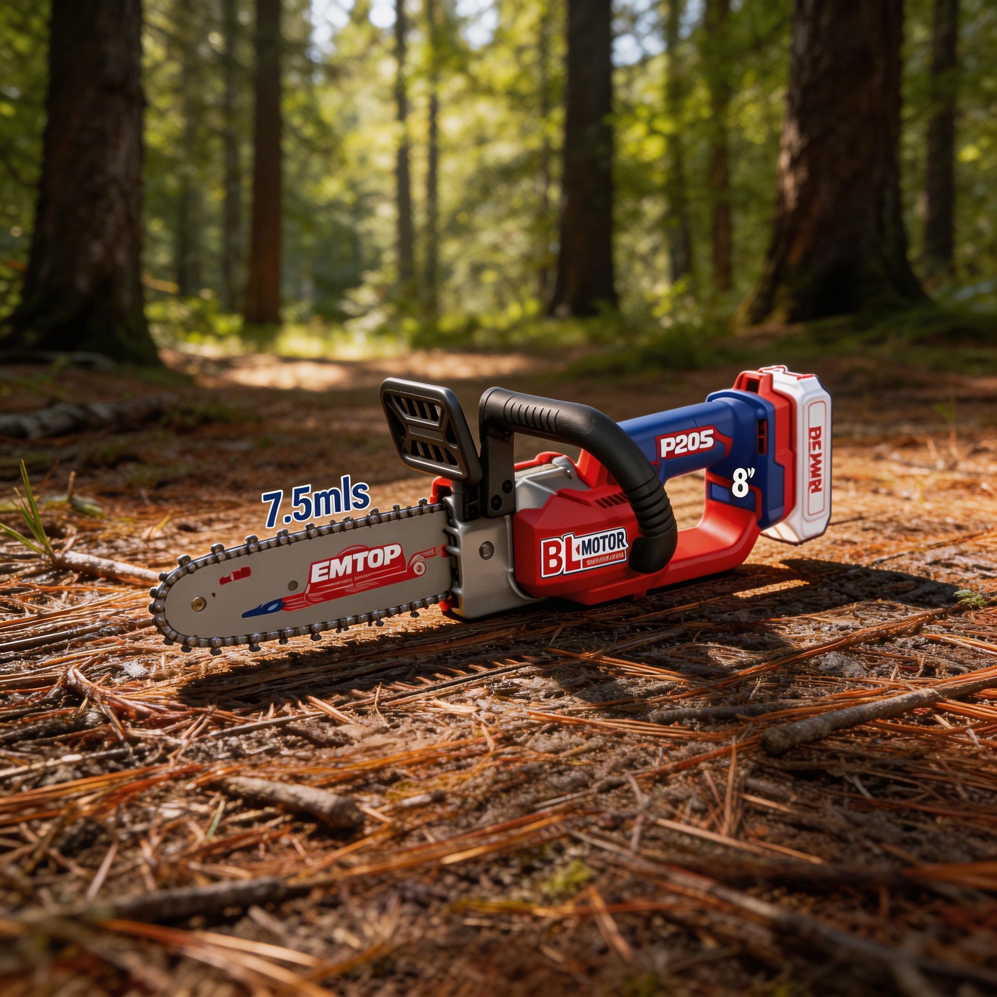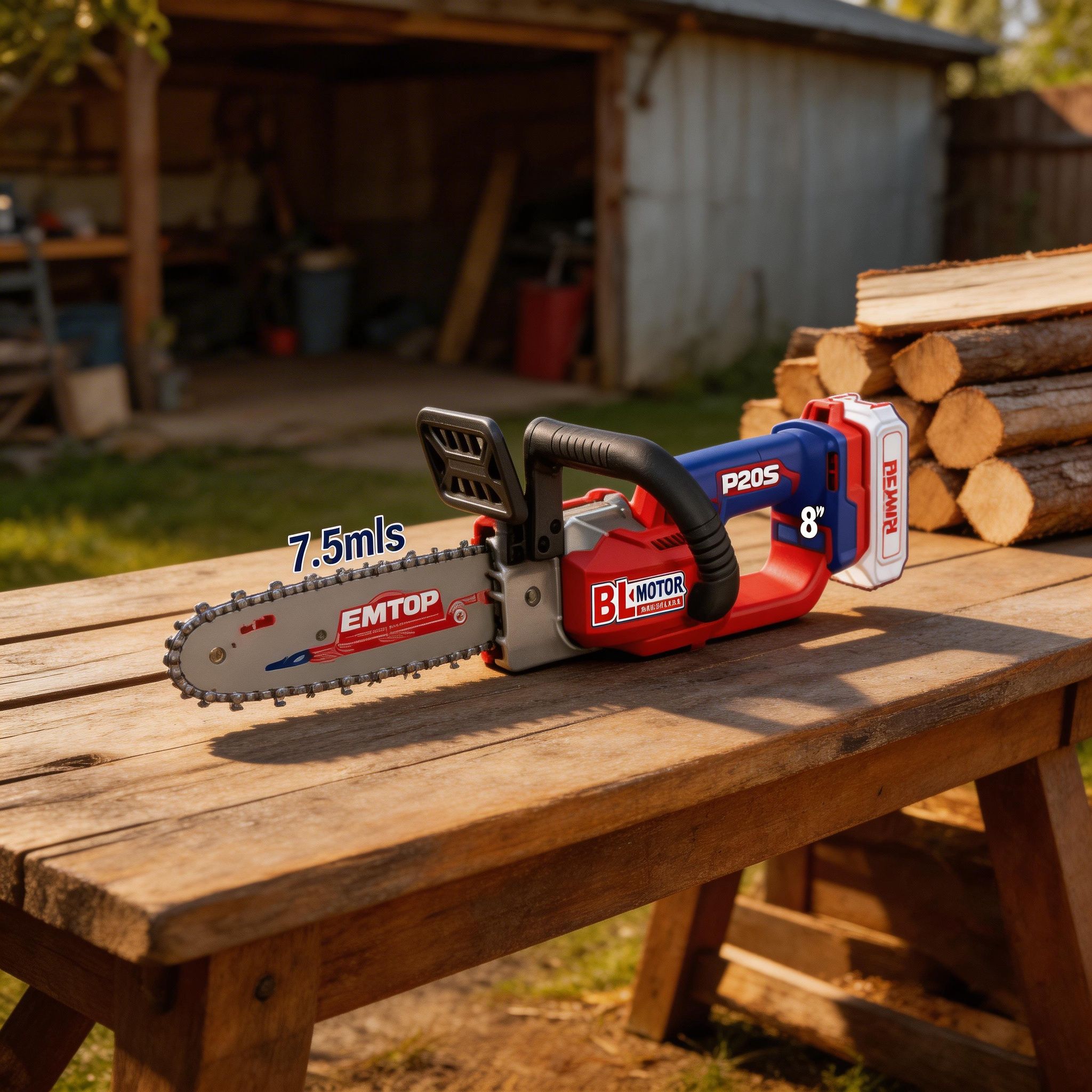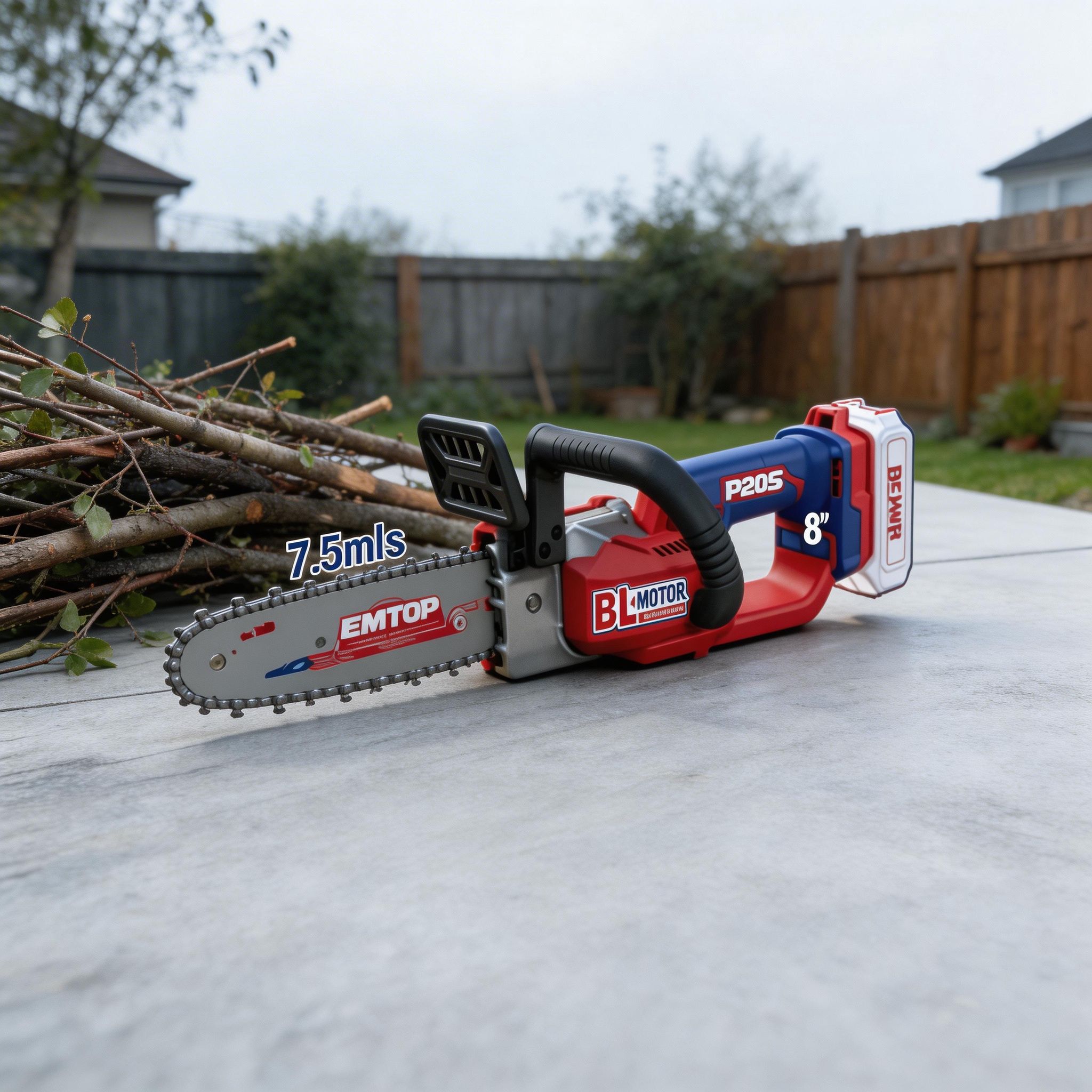 Esta mini motosierra inalámbrica EMTOP está diseñada para trabajos de poda ligera, corte de ramas y mantenimiento de jardines, ofreciendo una solución práctica y fácil de manejar en espacios exteriores. Su tamaño compacto permite mayor precisión en cortes pequeños, siendo ideal para trabajos detallados.