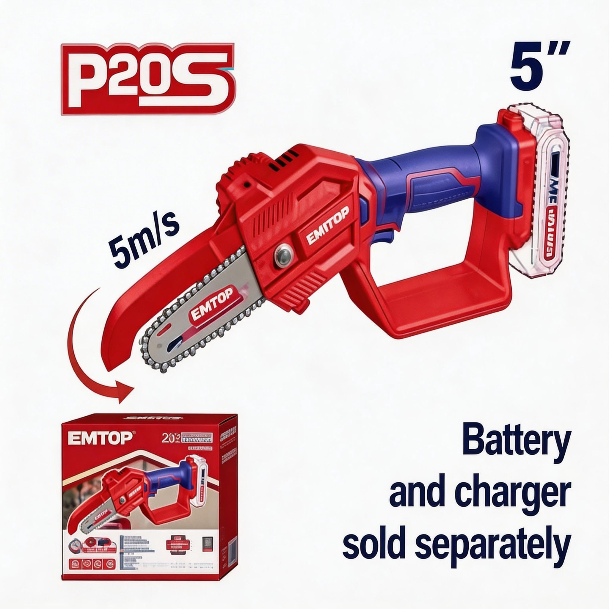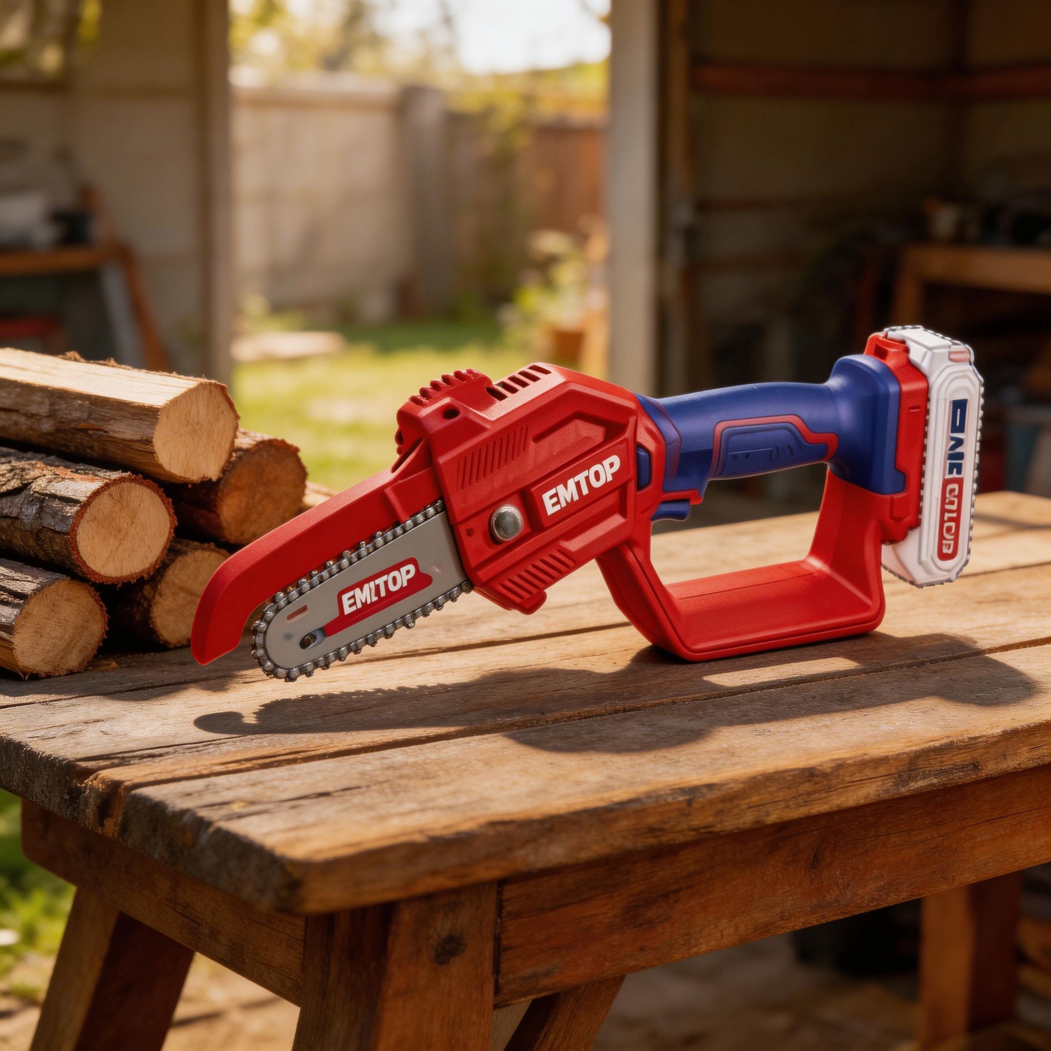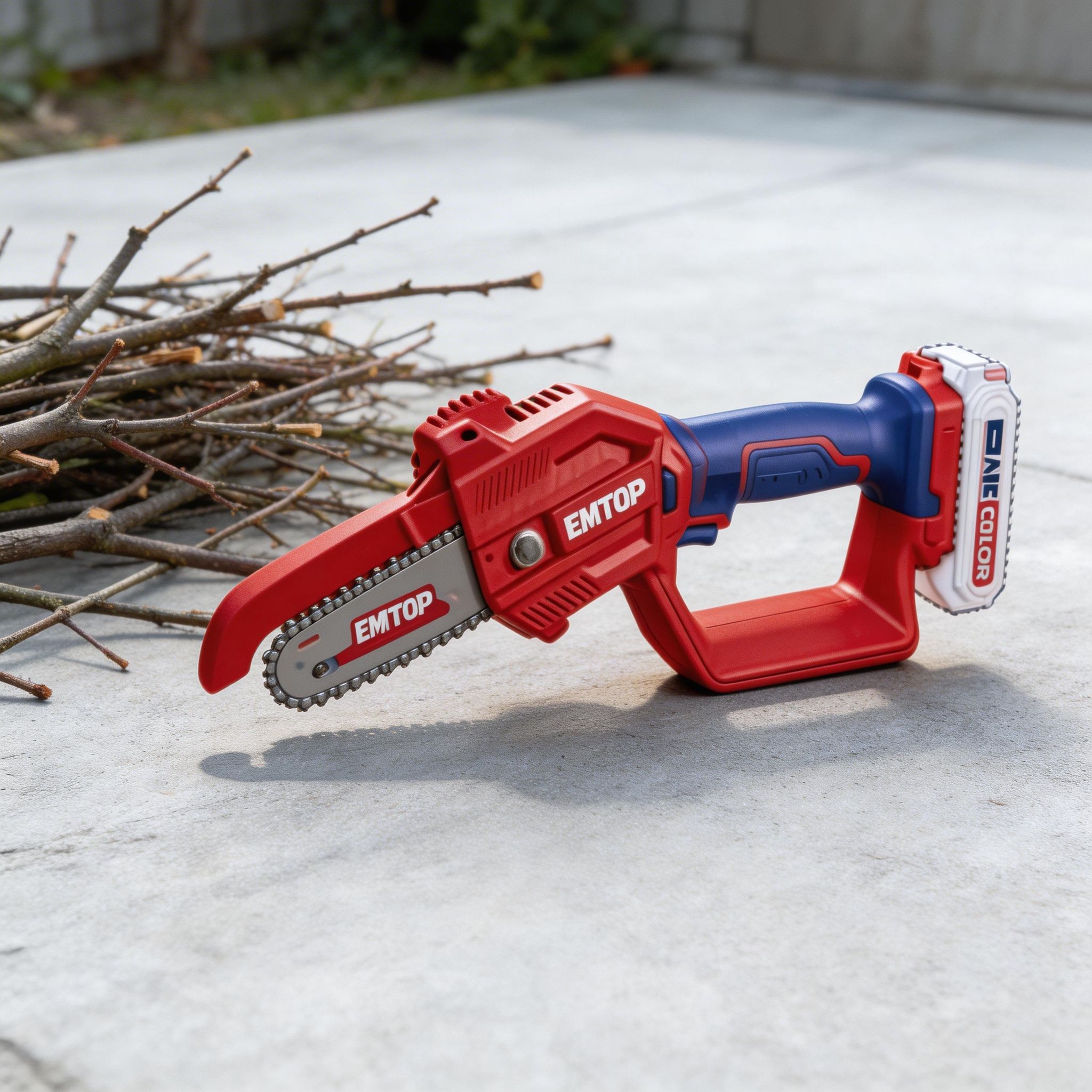 Esta mini sierra podadora inalámbrica EMTOP de 5 pulgadas está diseñada para trabajos de poda ligera, corte de ramas y mantenimiento de jardines, ofreciendo una solución práctica para tareas de corte en exteriores. Su tamaño compacto permite mayor precisión y mejor control, siendo ideal para trabajos detallados en ramas pequeñas y medianas.