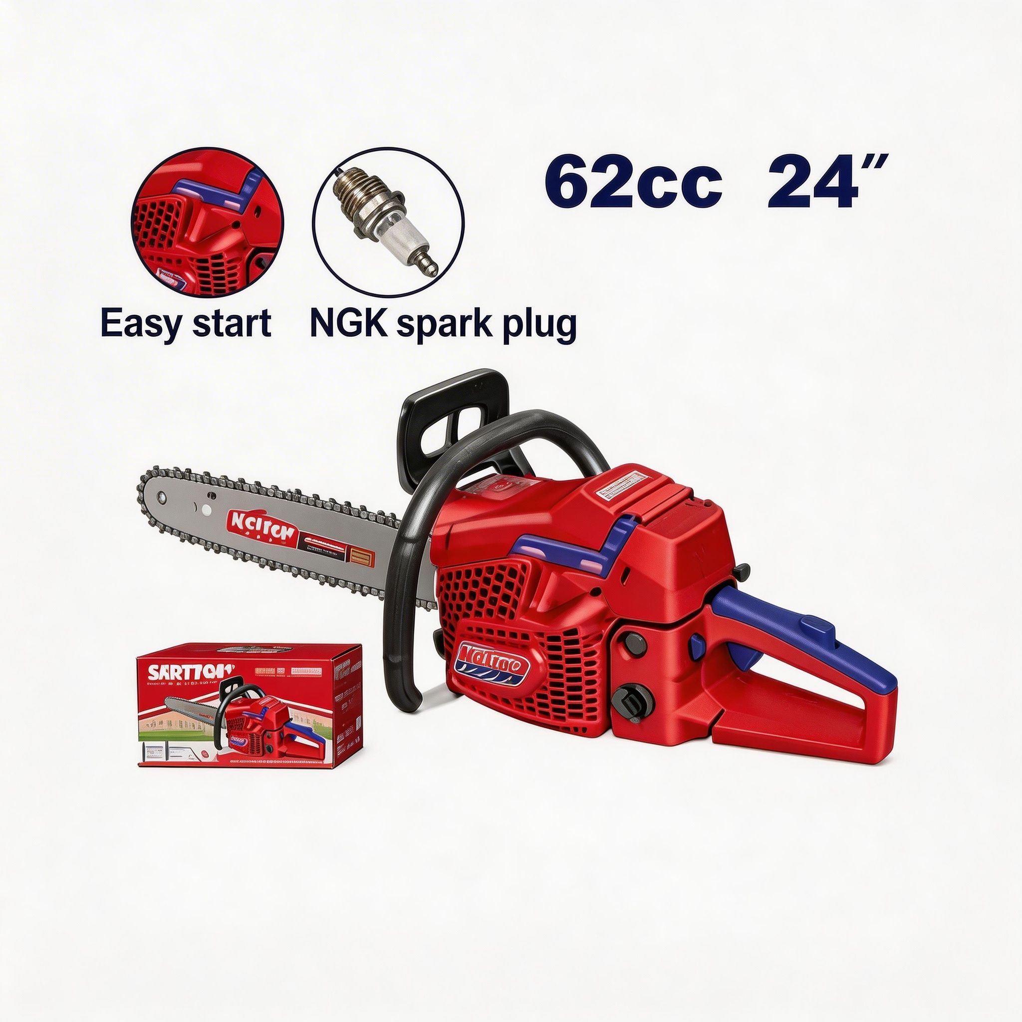 Es una alternativa útil para quienes buscan una herramienta resistente, potente y preparada para trabajo en exteriores. Por su formato a gasolina y su medida de 24″, resulta ideal para complementar labores de poda, corte de leña y mantenimiento de terrenos, ofreciendo rendimiento, movilidad y practicidad en una sola herramienta.