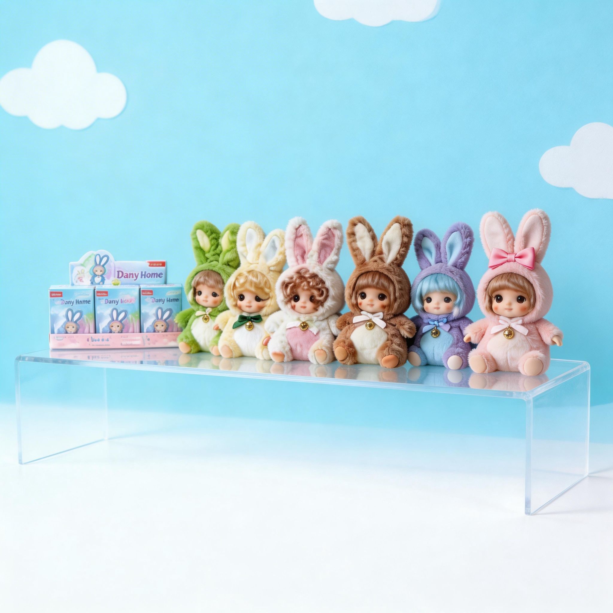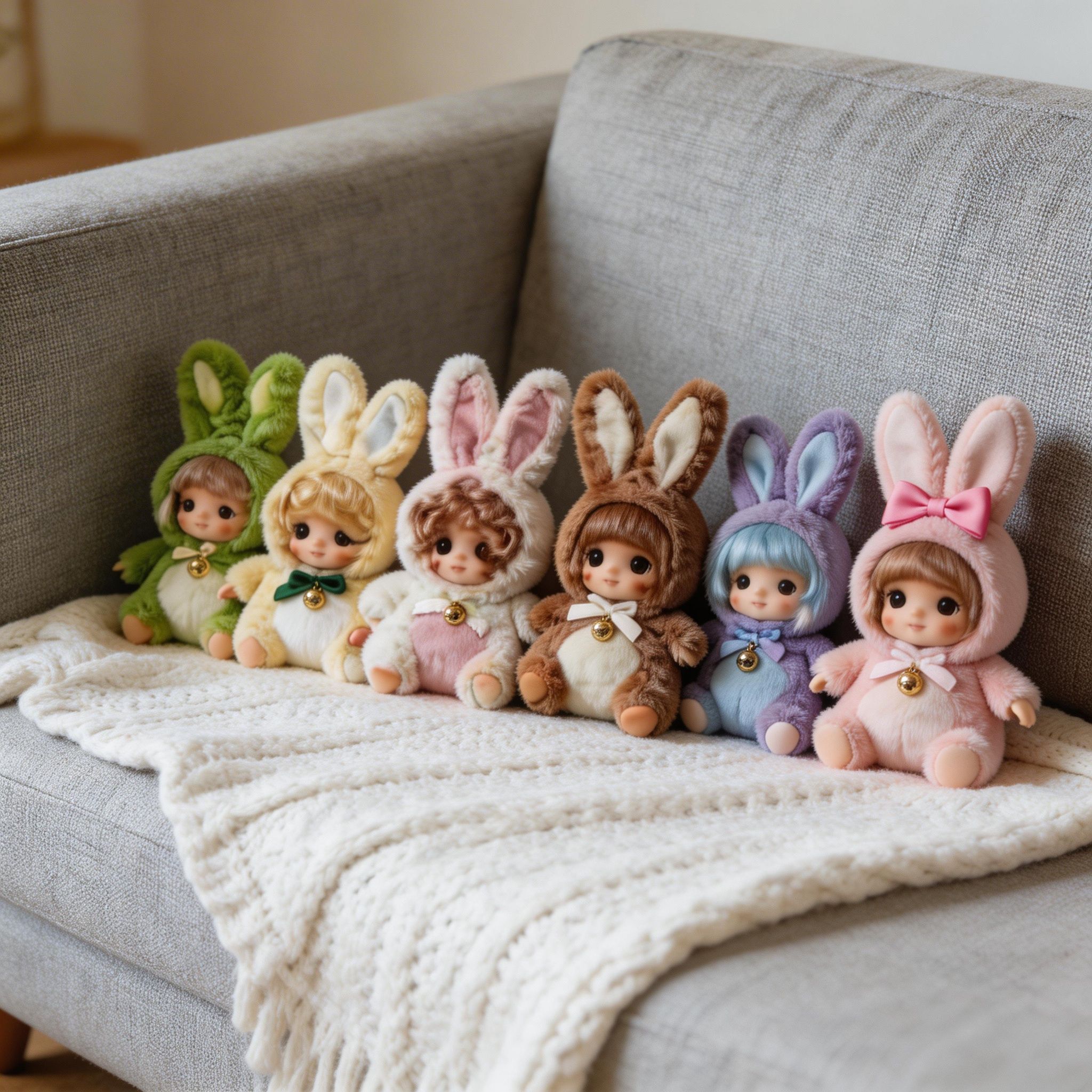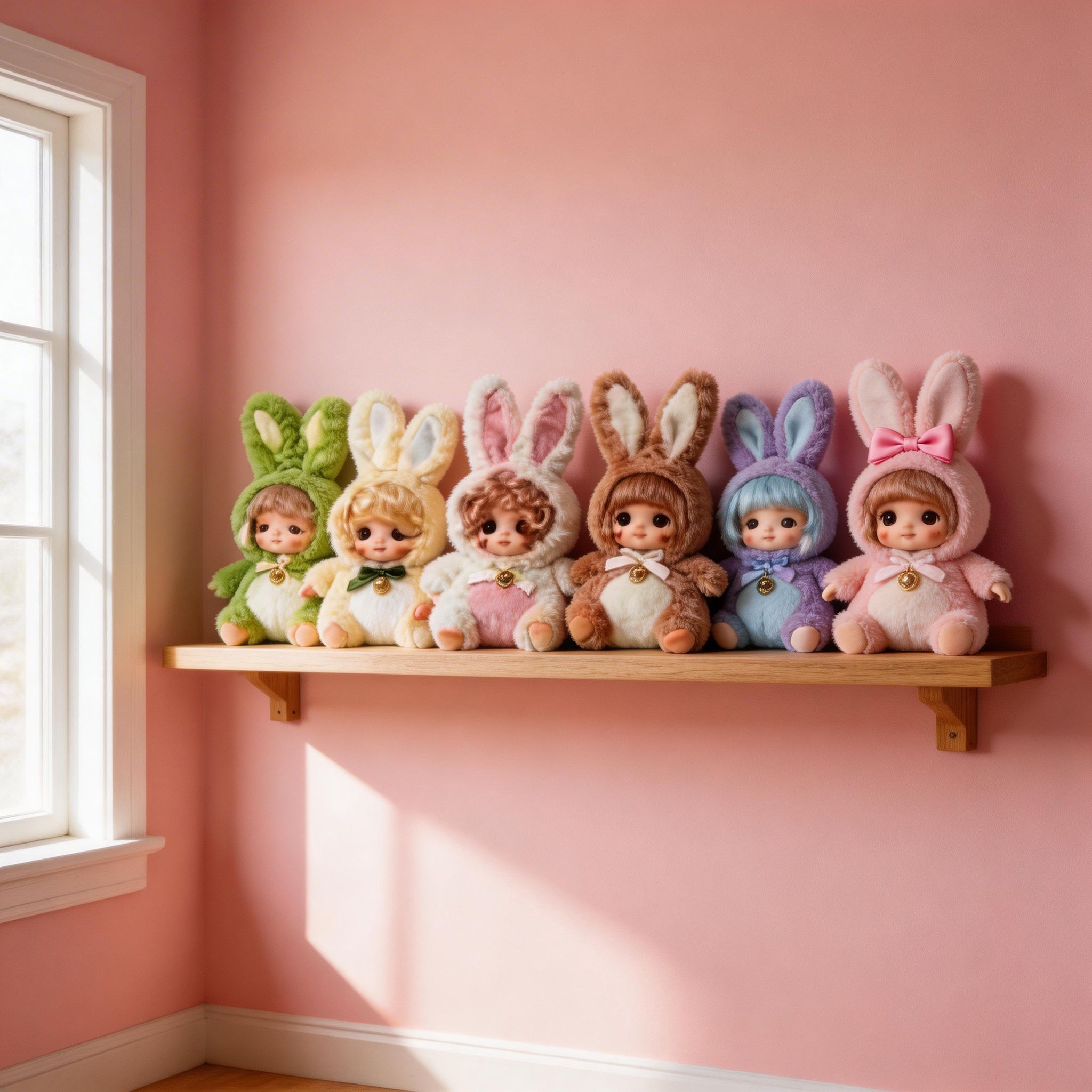Cuenta con un diseño adorable en forma de conejita, con colores llamativos y detalles suaves que la hacen perfecta para jugar y coleccionar. Su tamaño mediano permite un manejo cómodo, ideal para acompañar momentos de juego, imaginación y creación de historias.