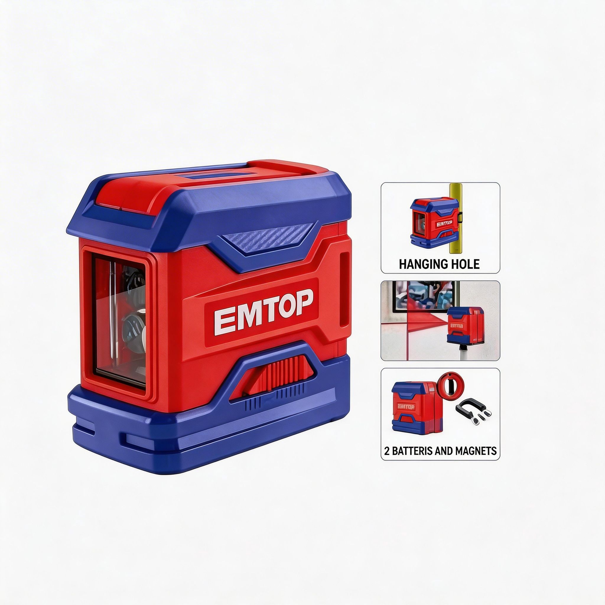 El nivel láser autonivelante compacto EMTOP está diseñado para facilitar trabajos de medición, alineación y nivelación en tareas de instalación, construcción, mantenimiento y acabados. Es una herramienta práctica para usuarios que buscan mayor precisión al marcar líneas de referencia en paredes, pisos y otras superficies, ayudando a mejorar la exactitud en distintos proyectos de trabajo.