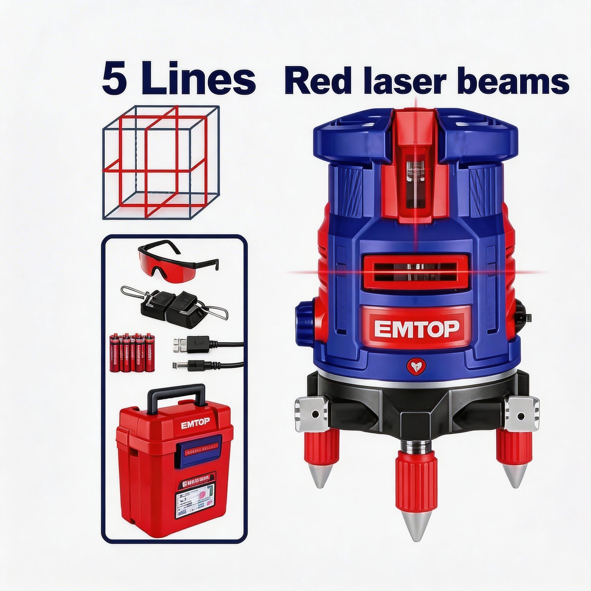 El nivel láser autonivelante EMTOP de 5 líneas está diseñado para facilitar trabajos de medición, alineación y nivelación en tareas de instalación, construcción, mantenimiento y acabados. Es una herramienta práctica para usuarios que buscan mayor precisión al marcar líneas de referencia en paredes, pisos y otras superficies, ayudando a mejorar la exactitud en distintos proyectos de trabajo.