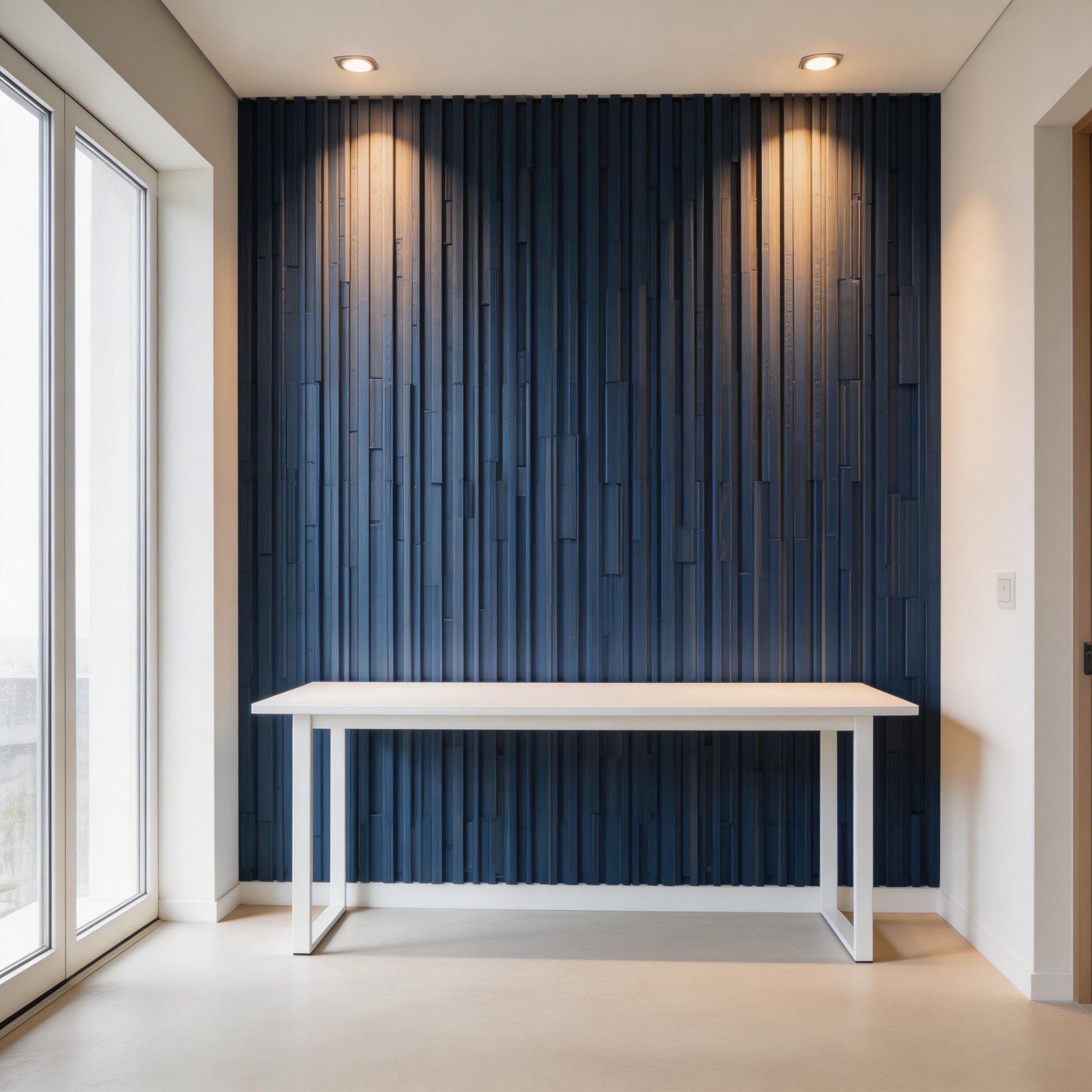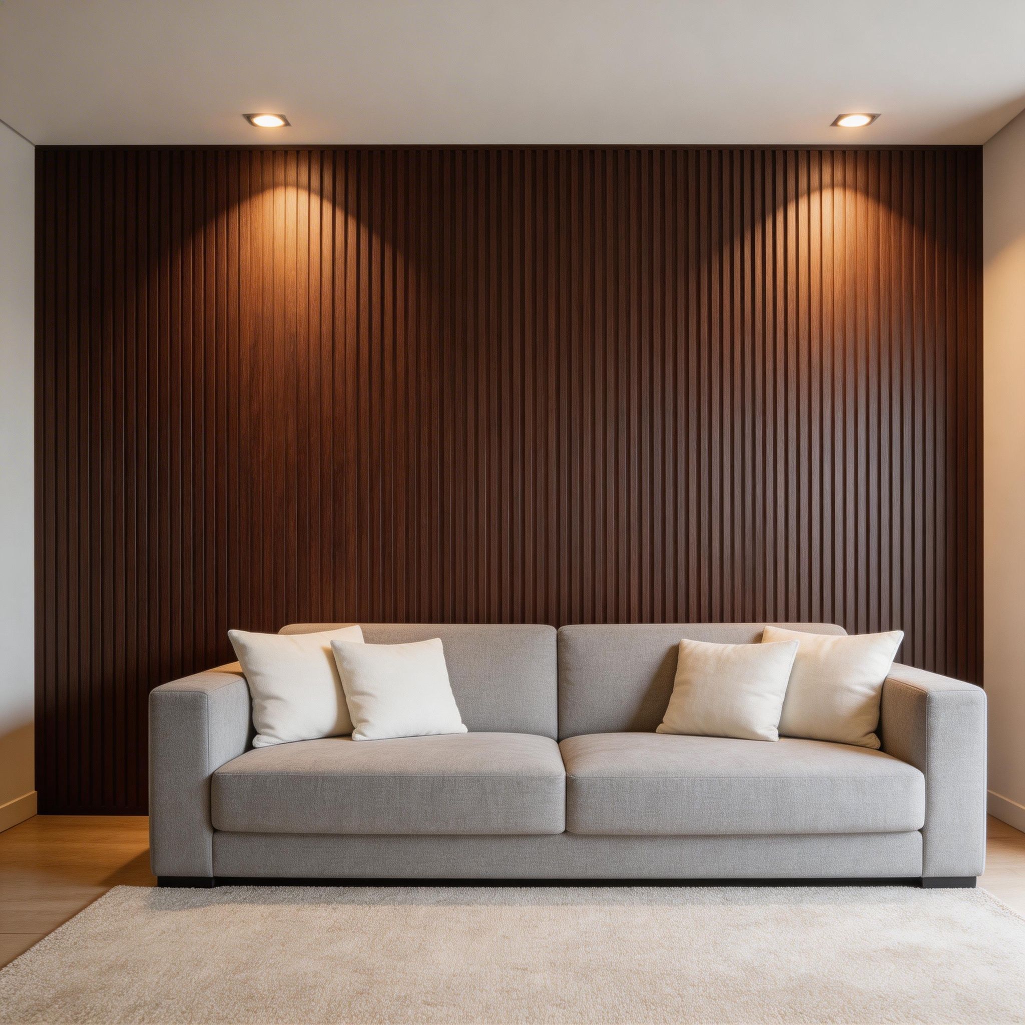Fabricados en material WPC, combinan resistencia, durabilidad y protección contra la humedad. No se deforman fácilmente y requieren poco mantenimiento, siendo una excelente alternativa a la madera tradicional, especialmente en ambientes interiores.