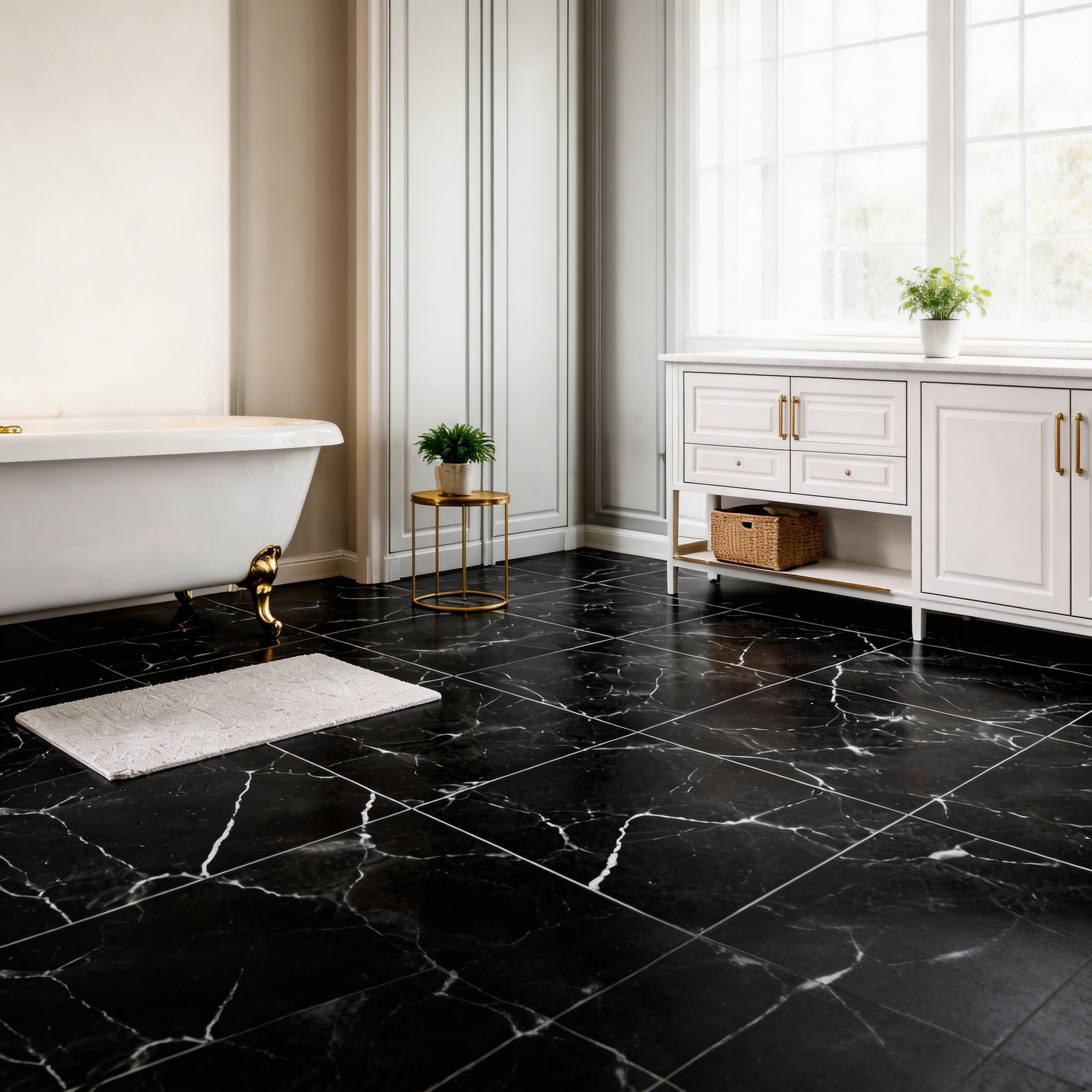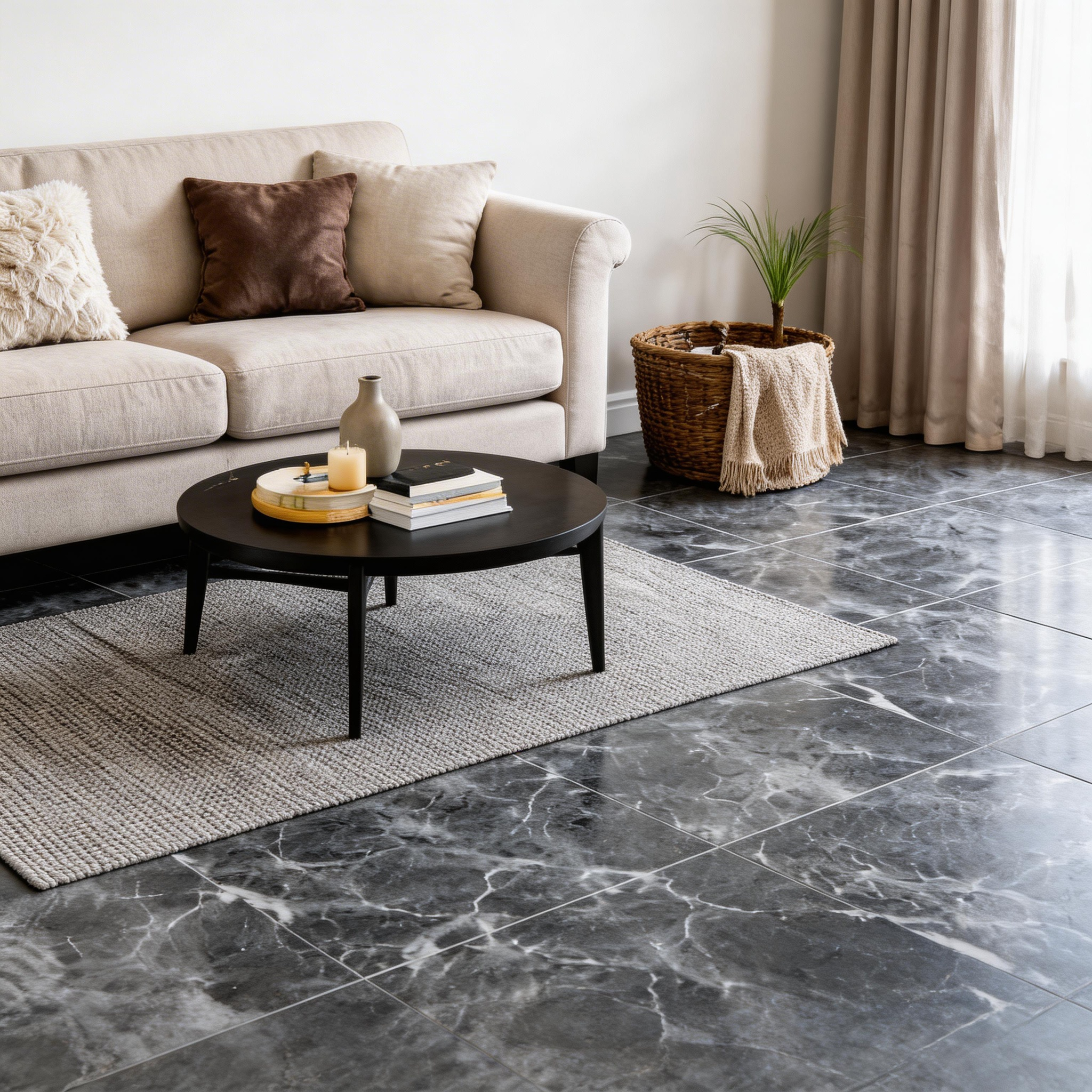 Piso PVC autoadhesivo de 457 x 457 mm, una opción práctica, moderna y funcional para renovar tus espacios de forma rápida y sencilla. Su formato cuadrado permite crear ambientes con una apariencia limpia, decorativa y contemporánea, ideal para diferentes áreas del hogar, oficina o negocio. Disponible en diseño negro mármol, aporta un estilo elegante, sobrio y sofisticado que combina muy bien con ambientes modernos y decorativos.
