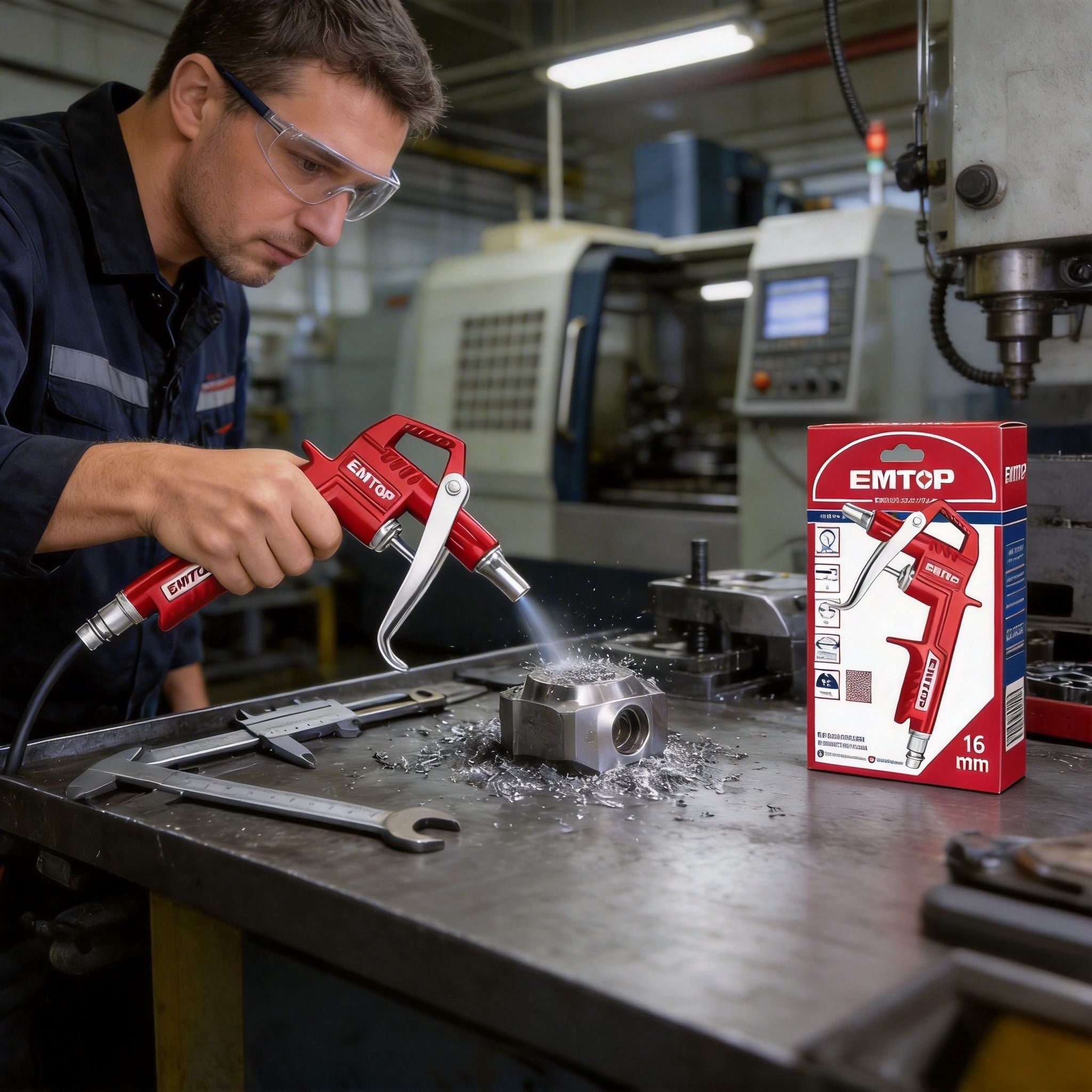 Su diseño permite dirigir el flujo de aire de manera controlada, facilitando el uso en talleres, áreas de mantenimiento, espacios de instalación y trabajos generales donde el aire a presión ayuda a mantener limpias las superficies y los componentes. Es una herramienta útil tanto para tareas domésticas como para usos más frecuentes en ambientes de trabajo.
