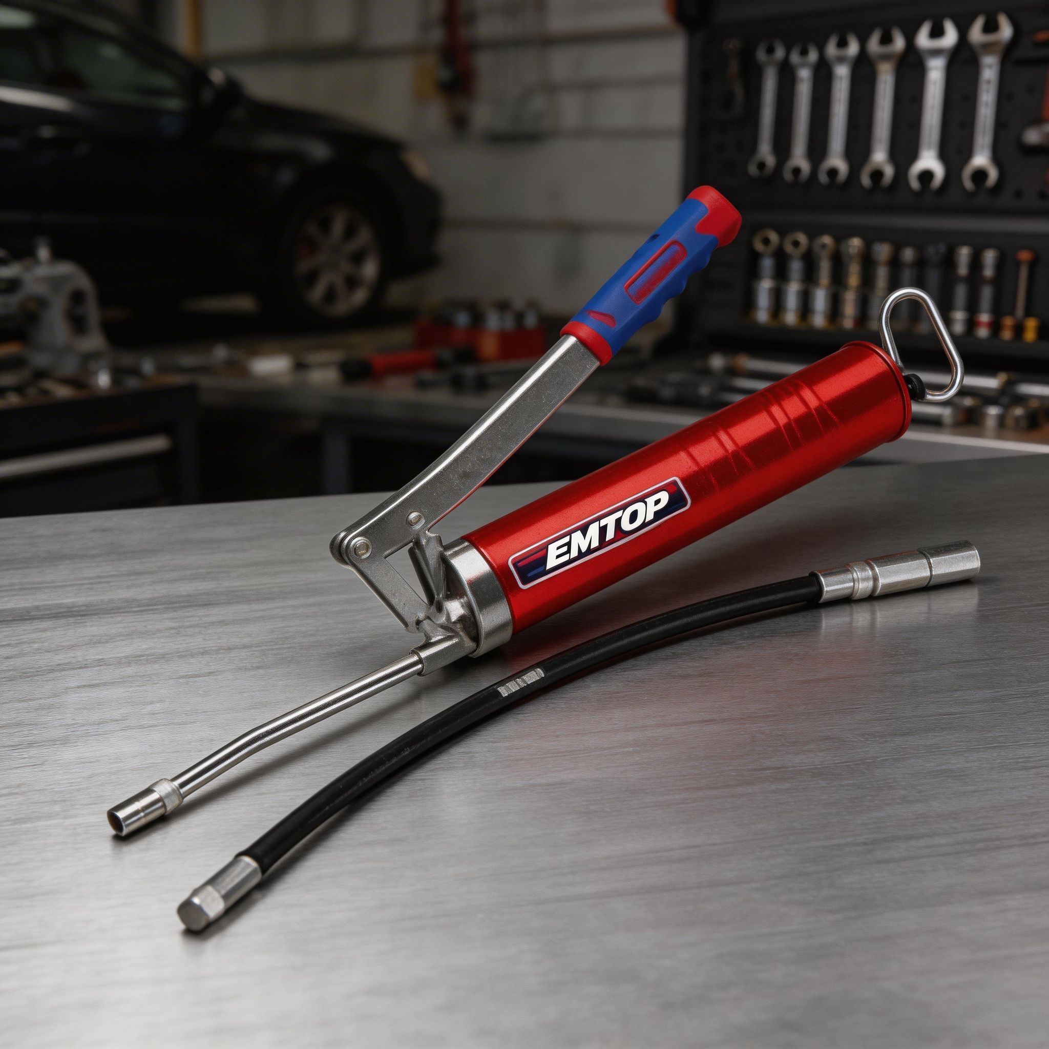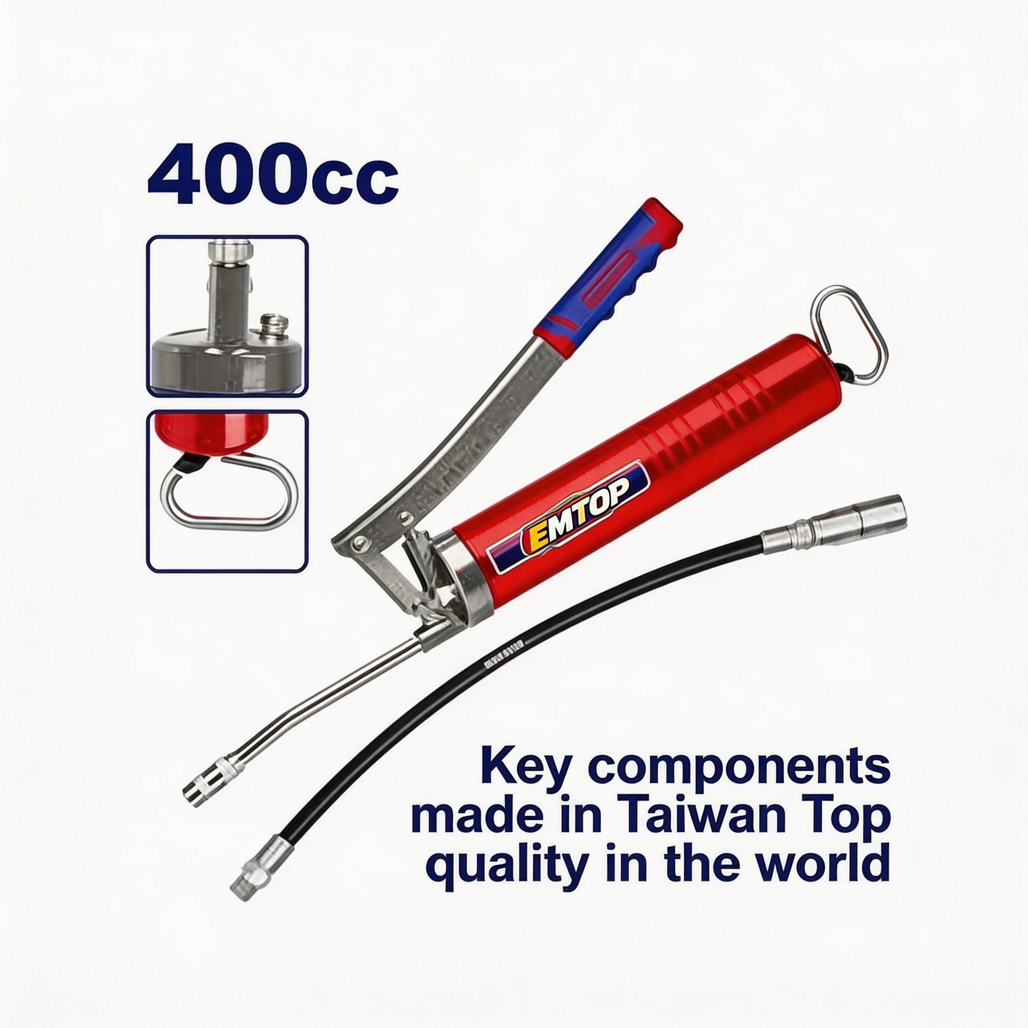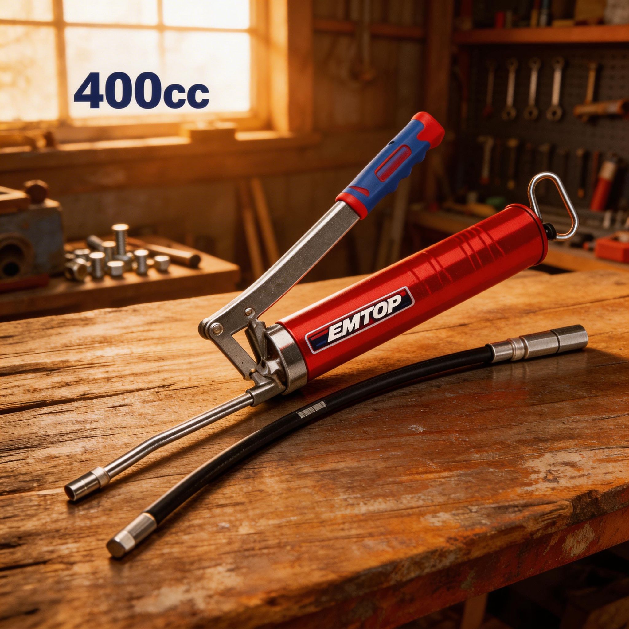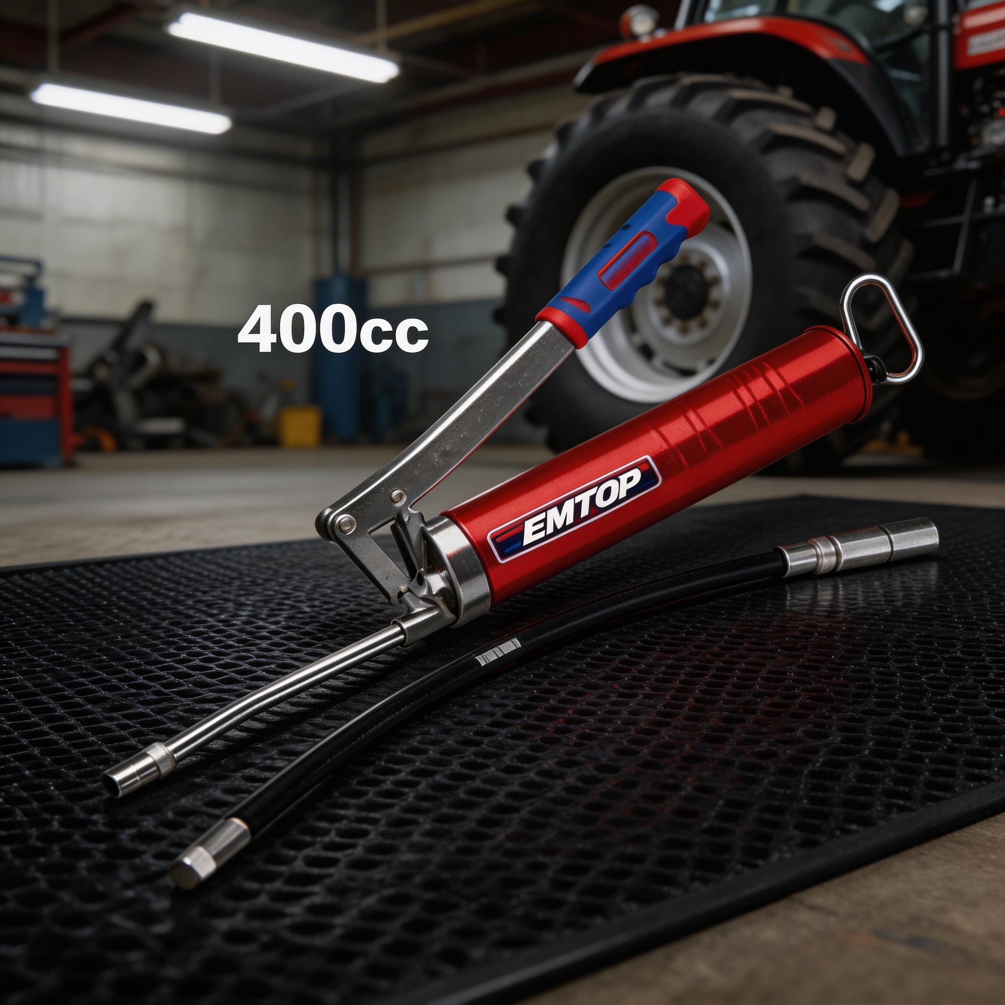 La pistola de engrase EMTOP de 400 cc es una herramienta práctica y resistente, diseñada para aplicar grasa de manera controlada en trabajos de mantenimiento mecánico, automotriz, industrial y de uso general en taller. Es ideal para lubricar piezas móviles, rodamientos, ejes, articulaciones y distintos componentes que necesitan una aplicación precisa de grasa para mejorar su funcionamiento y prolongar su vida útil.