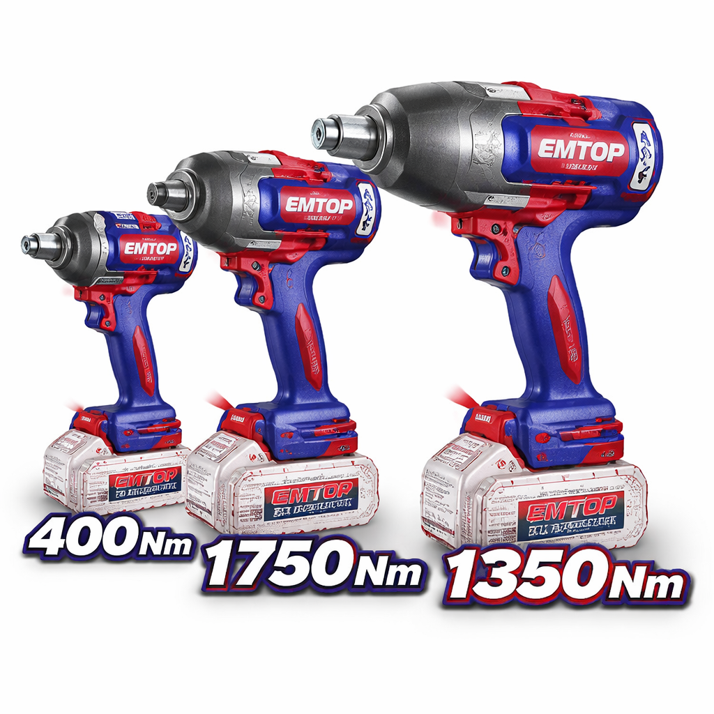 Esta línea de llaves de impacto inalámbricas EMTOP está diseñada para trabajos de alto esfuerzo en aplicaciones automotrices, mecánicas e industriales, ofreciendo potencia, movilidad y un rendimiento confiable para aflojar y ajustar pernos con mayor rapidez. Su diseño inalámbrico permite trabajar con más libertad en diferentes espacios sin depender de cables, lo que mejora la comodidad en tareas exigentes.