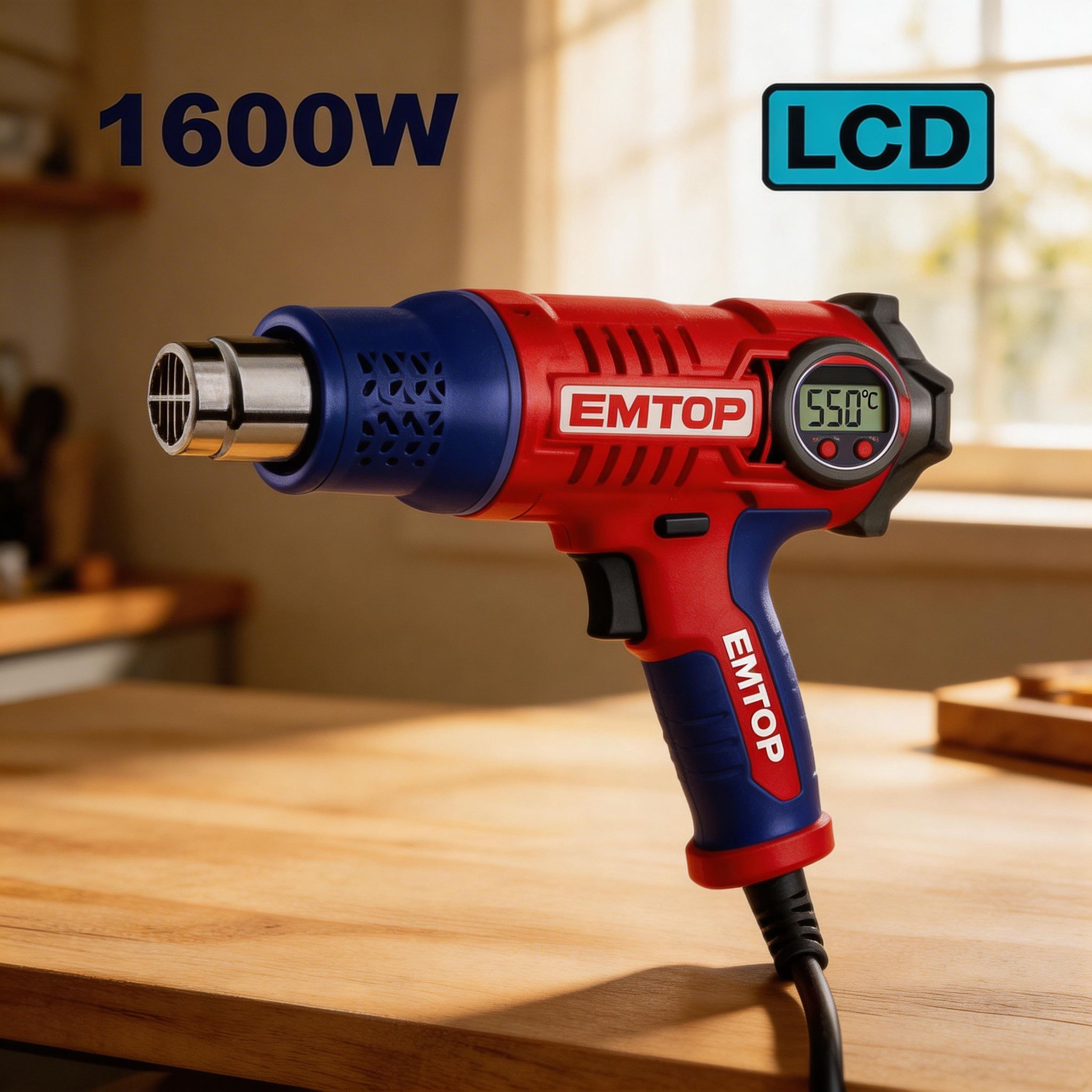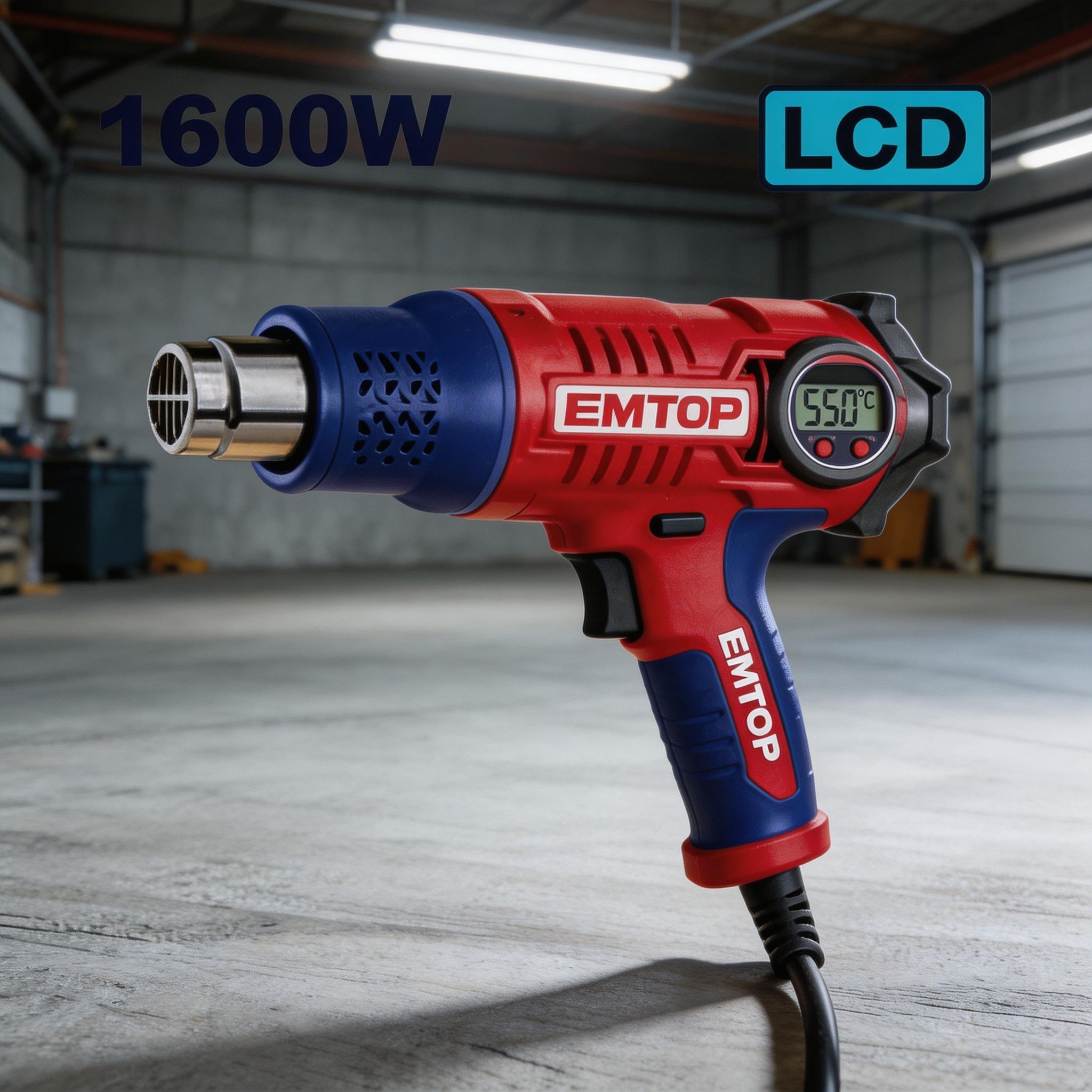 Las pistolas de calor EMTOP de 1600W están diseñadas para trabajos de aplicación de calor en tareas de mantenimiento, instalación, reparación y uso general, siendo una opción práctica para procesos donde se requiere aire caliente de forma controlada. Esta línea incluye una versión con accesorios y otra con pantalla LCD, permitiendo elegir la presentación más conveniente según el tipo de trabajo y la preferencia del usuario.