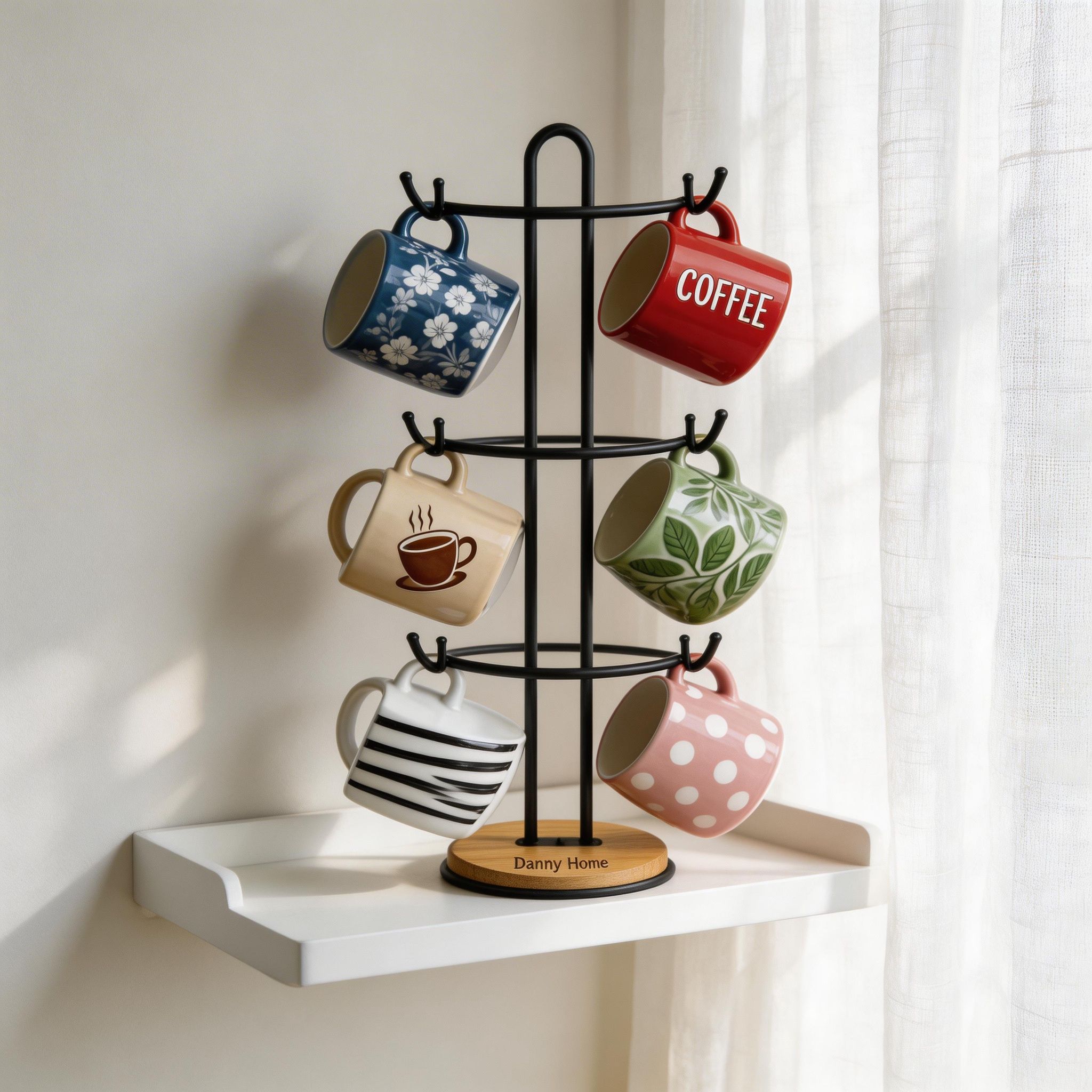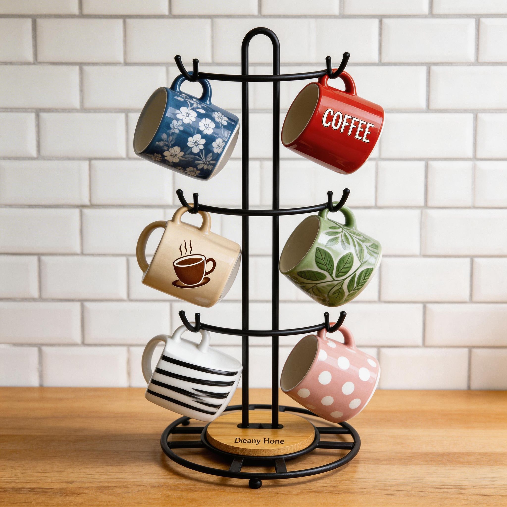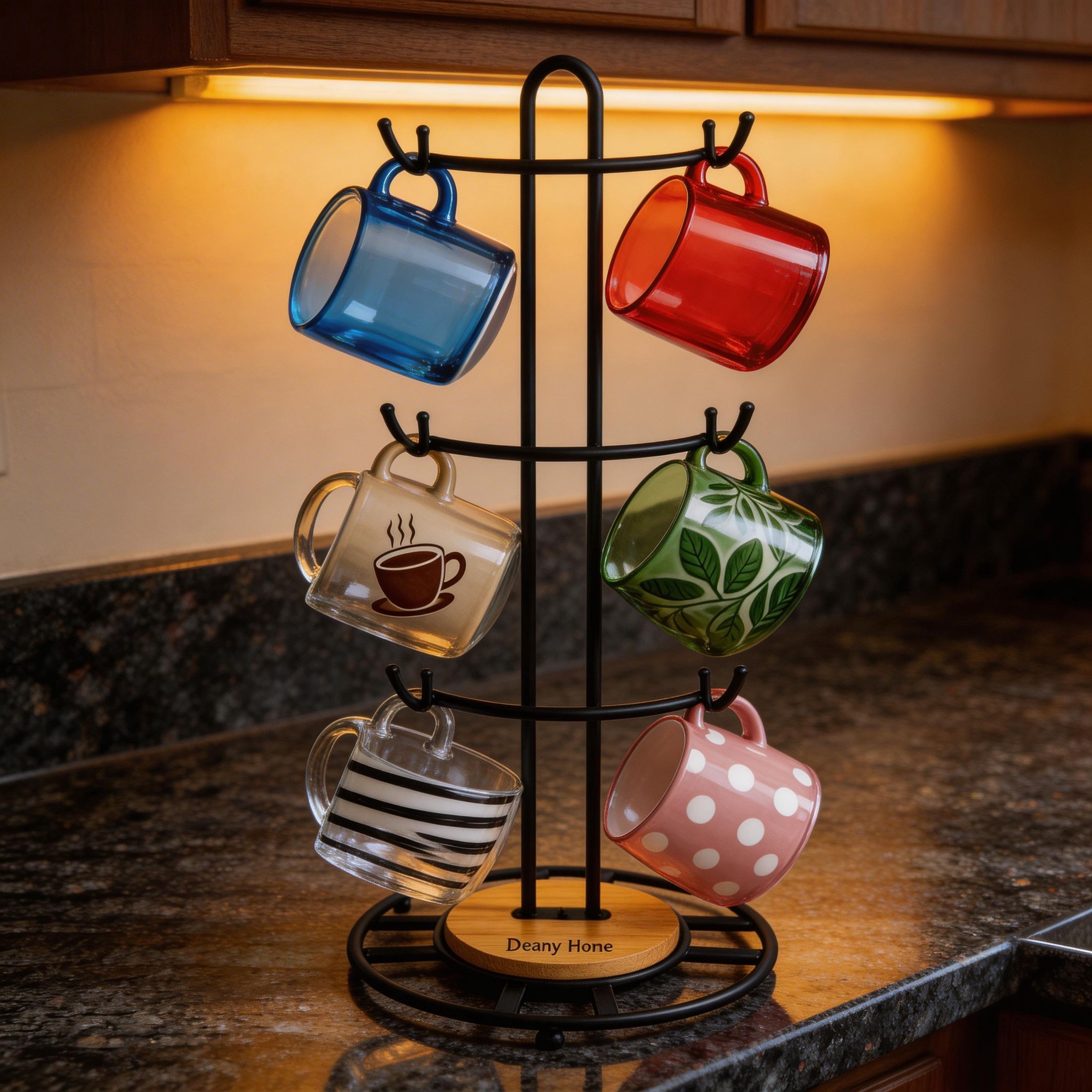 Este porta tazas es ideal para organizar y exhibir tazas de manera práctica en la cocina o comedor, ayudando a mantener el orden y optimizar el espacio. Su diseño funcional permite colgar varias tazas de forma segura y accesible, aportando un estilo decorativo al mismo tiempo.