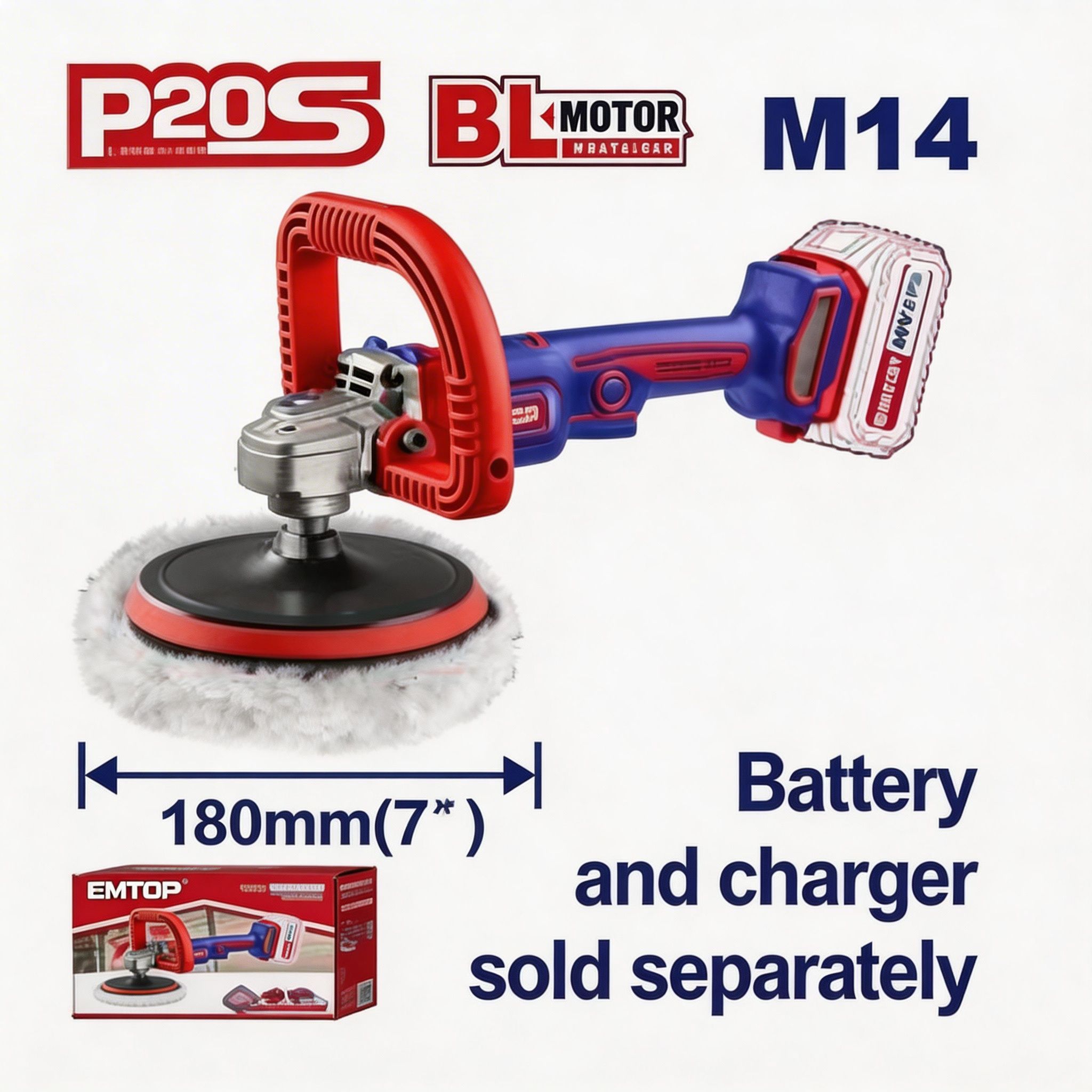 Esta pulidora inalámbrica EMTOP de 180 mm (7″) está diseñada para trabajos de pulido, abrillantado y acabado en superficies como pintura automotriz, metal y otros materiales. Su tamaño de disco permite cubrir áreas más amplias, logrando resultados más uniformes y profesionales en menos tiempo.