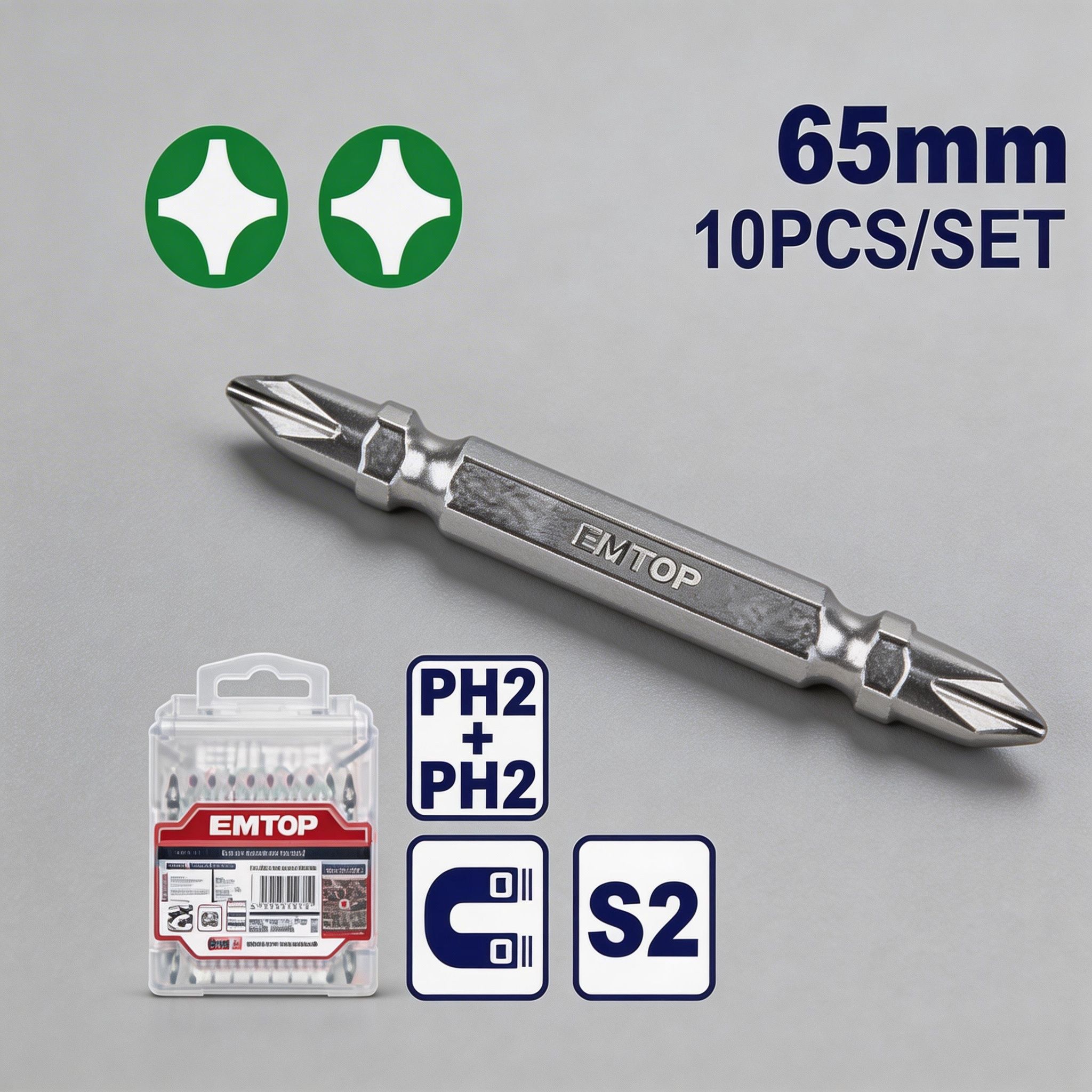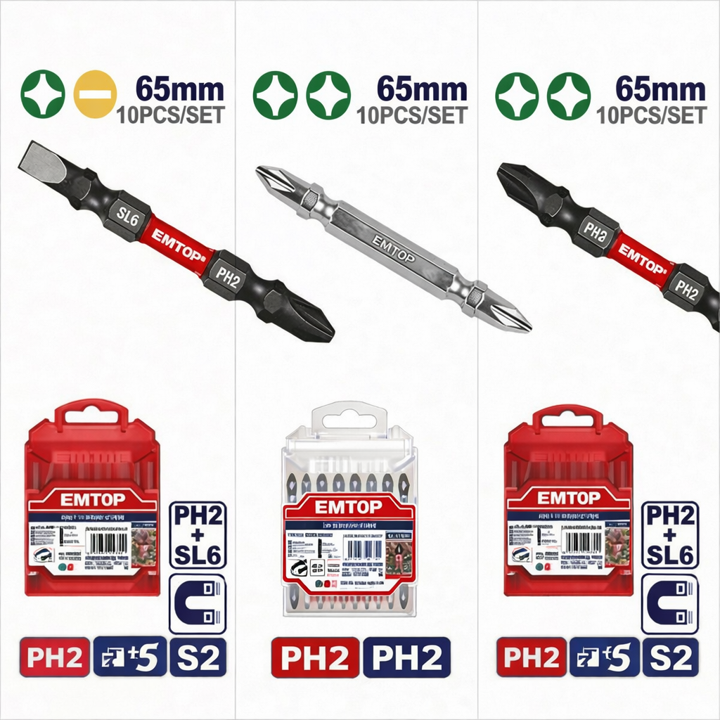 Las puntas para destornilladores EMTOP de 65 mm son una opción práctica para trabajos de ajuste, armado, instalación y mantenimiento en diferentes tipos de tornillos. Su diseño permite un mejor acople y un manejo más cómodo en tareas de uso frecuente, siendo un accesorio útil tanto para herramientas manuales como para destornilladores eléctricos o de impacto según el modelo.