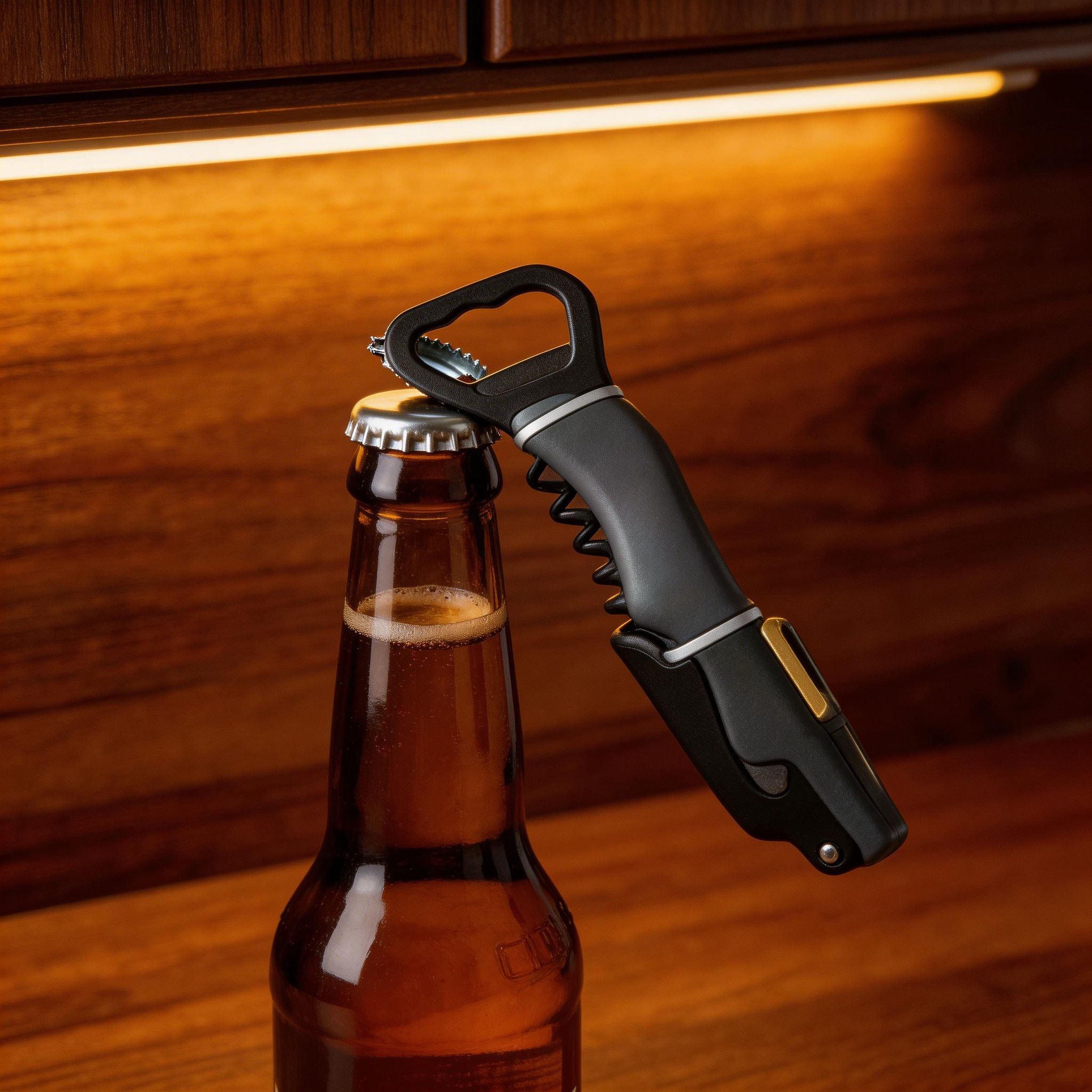 Fabricado con materiales resistentes, este abrebotellas garantiza durabilidad y un uso cómodo en el día a día. Su tamaño compacto facilita su almacenamiento y transporte, siendo perfecto para tenerlo siempre a mano cuando lo necesites.