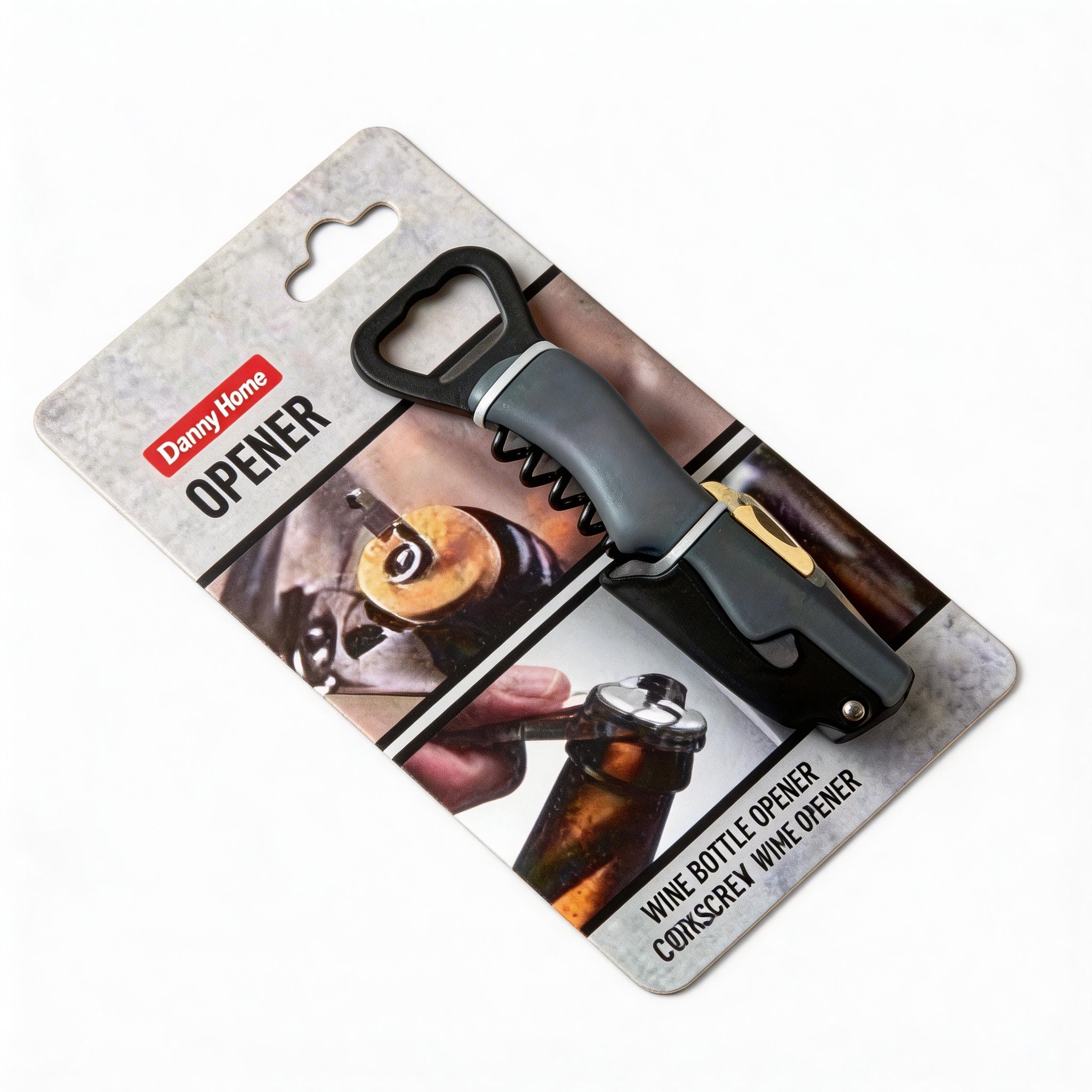 Con un diseño práctico y versátil, este sacacorchos se adapta a diferentes tipos de botellas, ofreciendo eficiencia y comodidad. Es ideal tanto para uso personal como para complementar cualquier espacio de cocina o entretenimiento.
