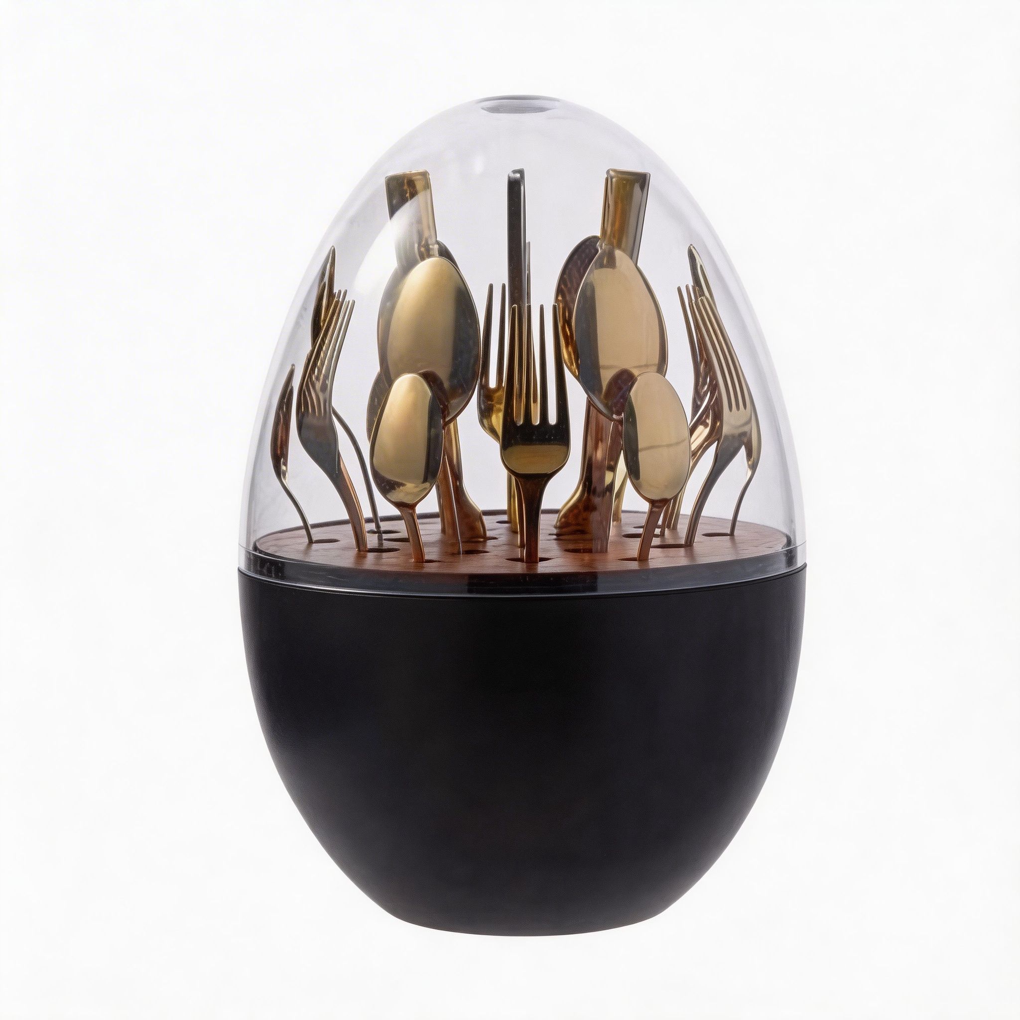 Este set de cubiertos de 24 piezas en color dorado es ideal para darle un toque elegante y moderno a la mesa en el hogar o en ocasiones especiales. Su diseño sofisticado lo convierte en una excelente opción para comidas familiares, reuniones o celebraciones.